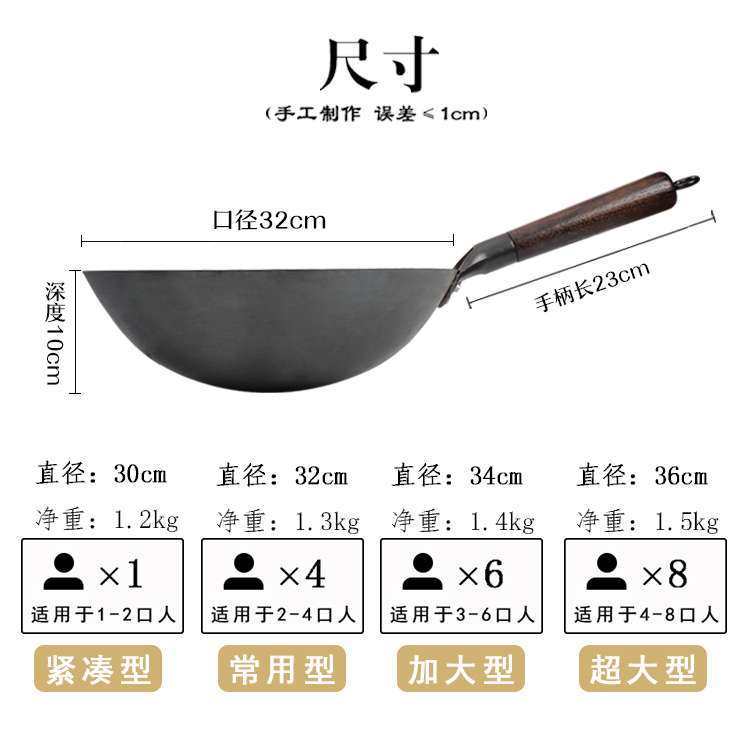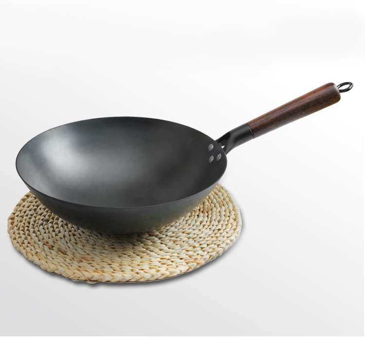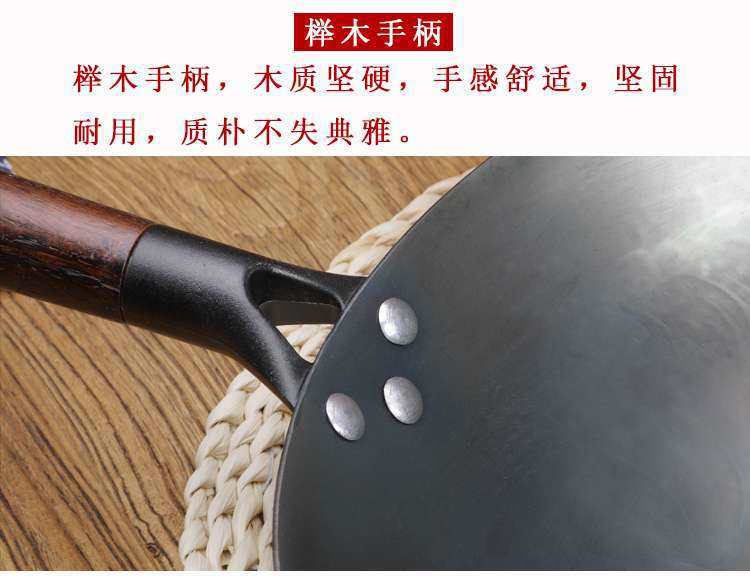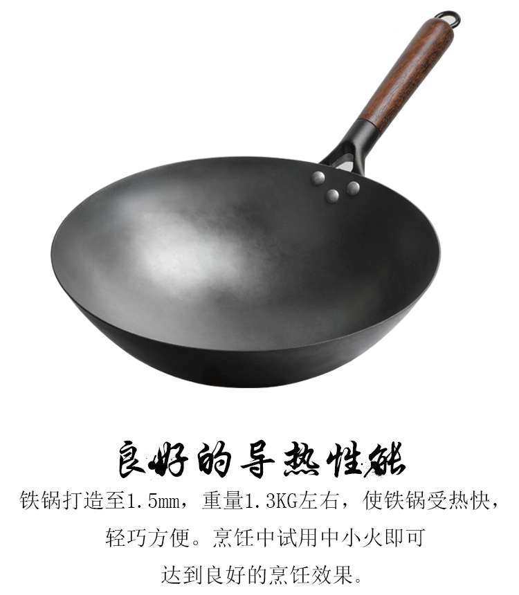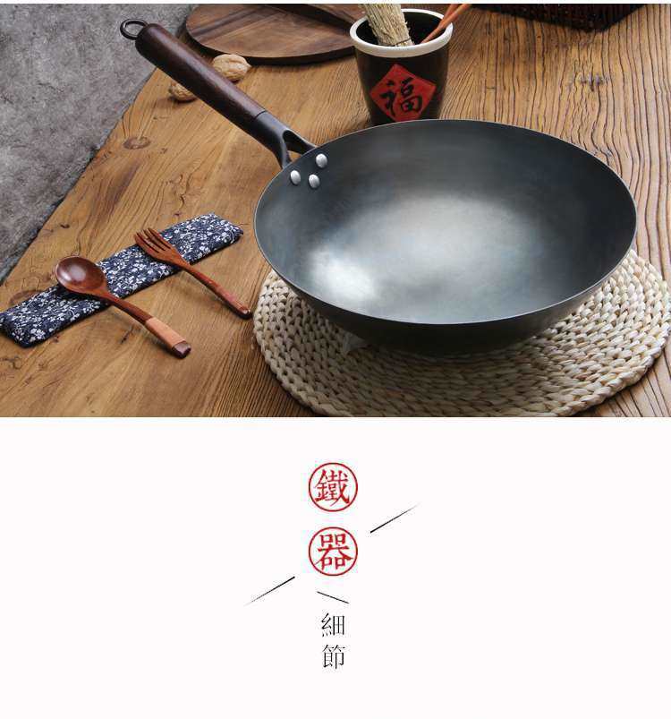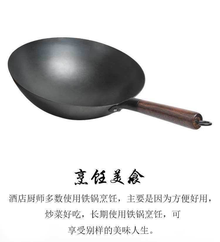 Compra Olla de hierro Zhangqiu hecha a mano, al por mayor, con fondo redondo grueso y cuchara grande, wok antiadherente antiguo sin revestimiento para estufa de gas doméstica. al por mayor en Joom.pro