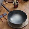 Olla de hierro Zhangqiu hecha a mano, al por mayor, con fondo redondo grueso y cuchara grande, wok antiadherente antiguo sin revestimiento para estufa de gas doméstica.