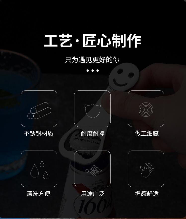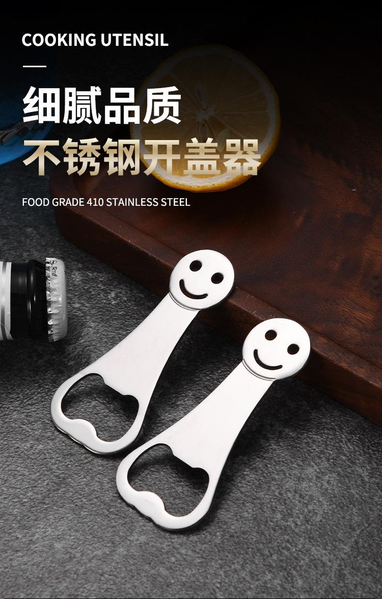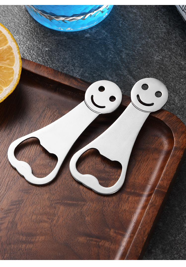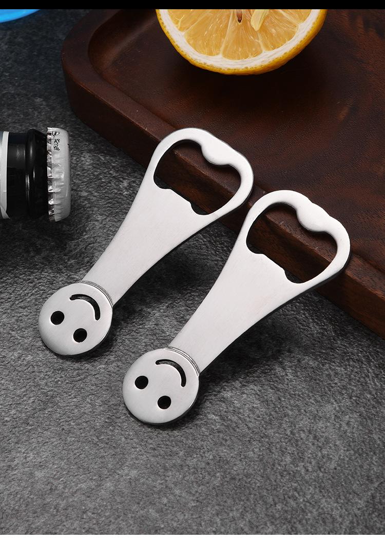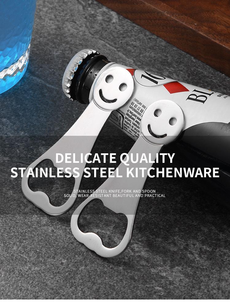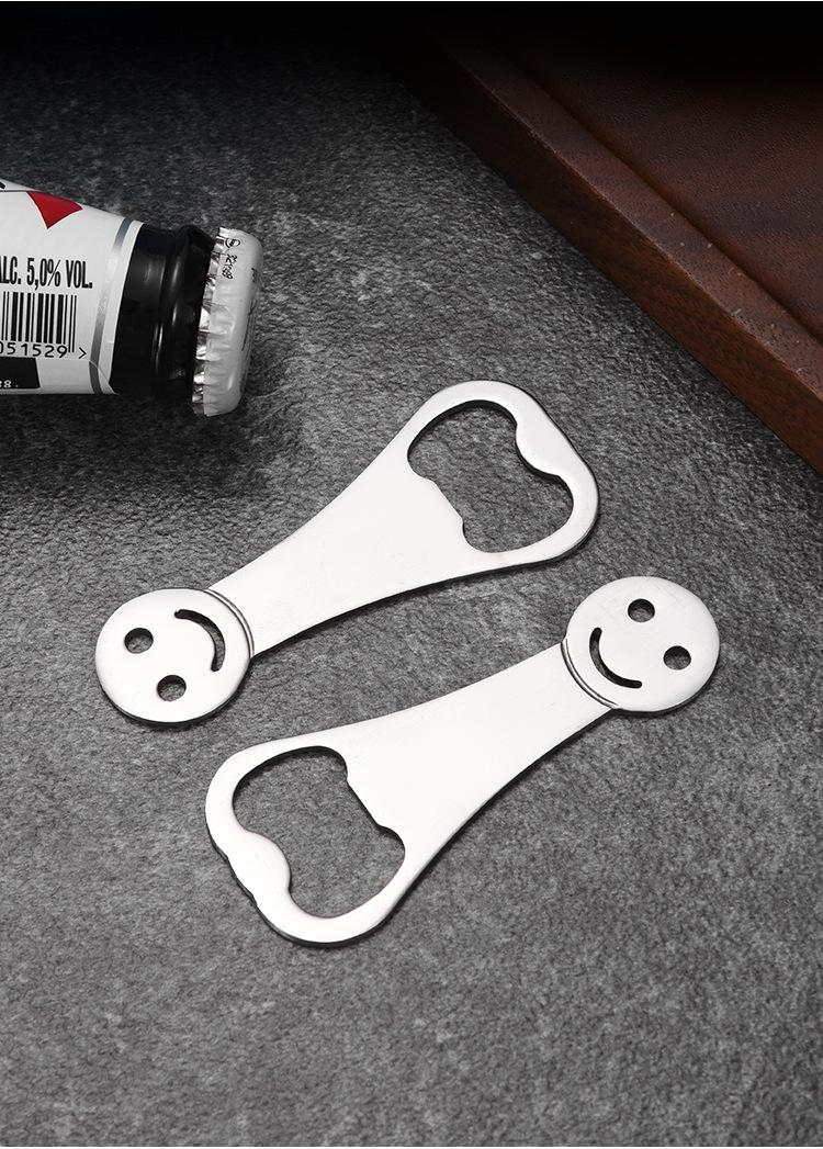 Abridor de botellas de cerveza de acero inoxidable con dibujos animados, venta al por mayor, abridor de botellas de bebidas, abridor de botellas plano y simple con logotipo láser.