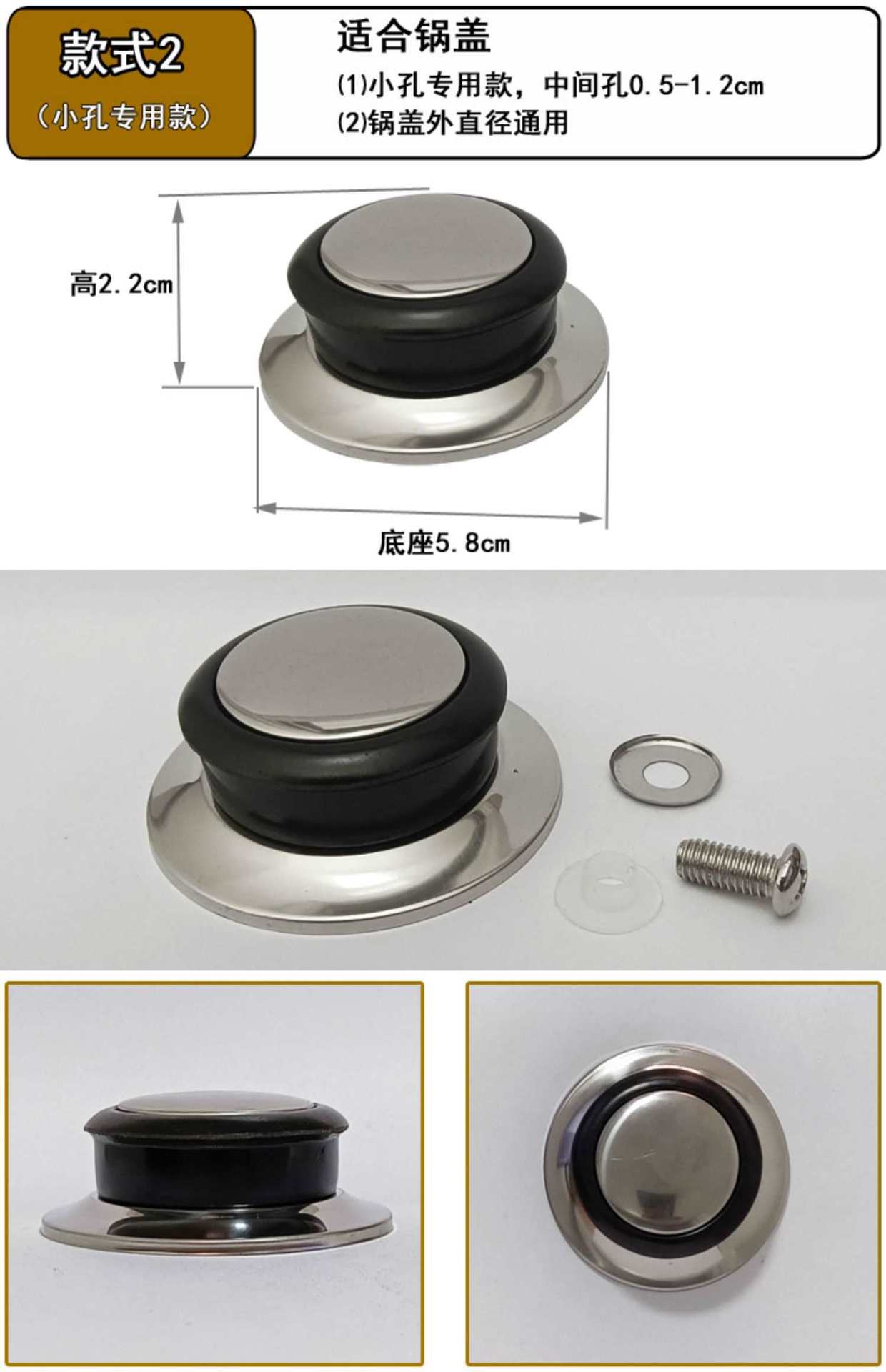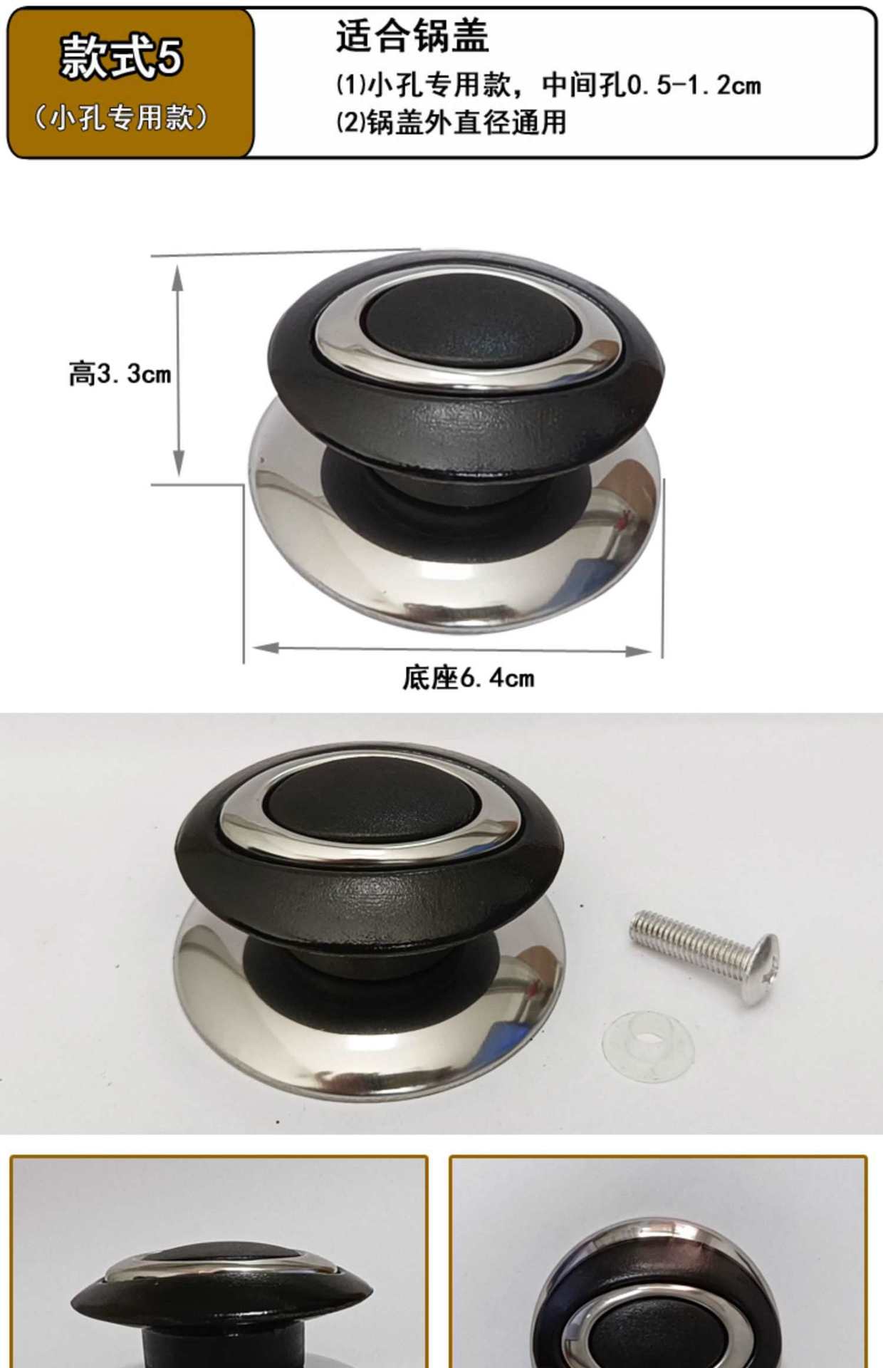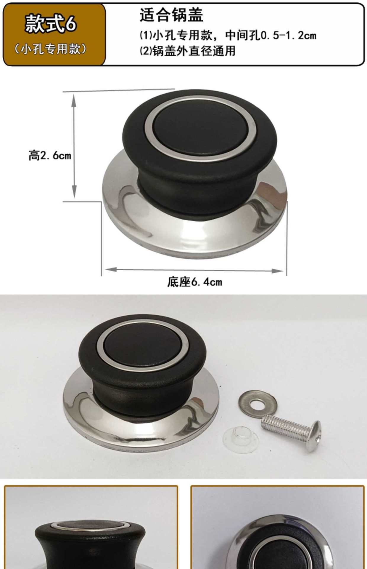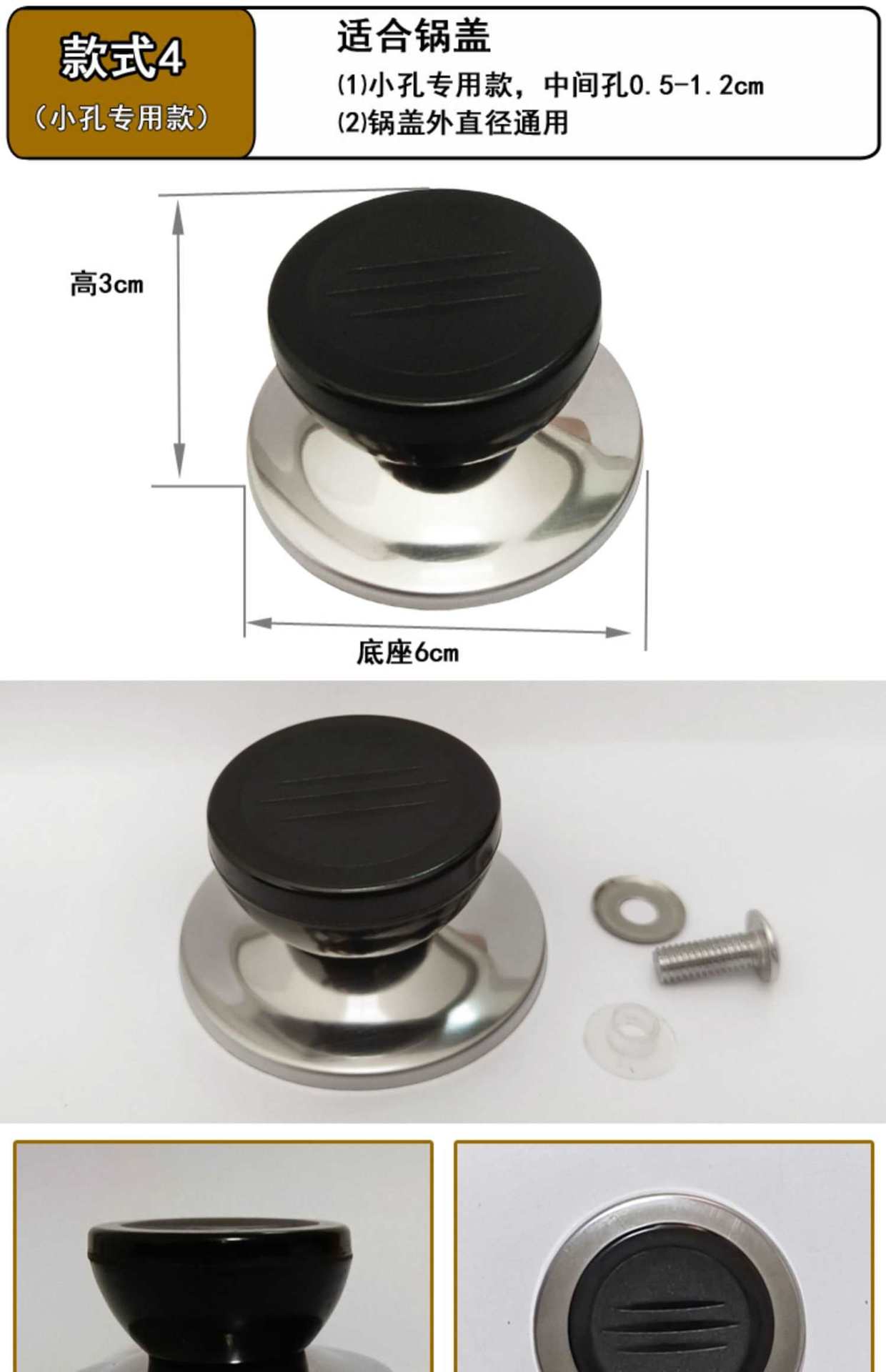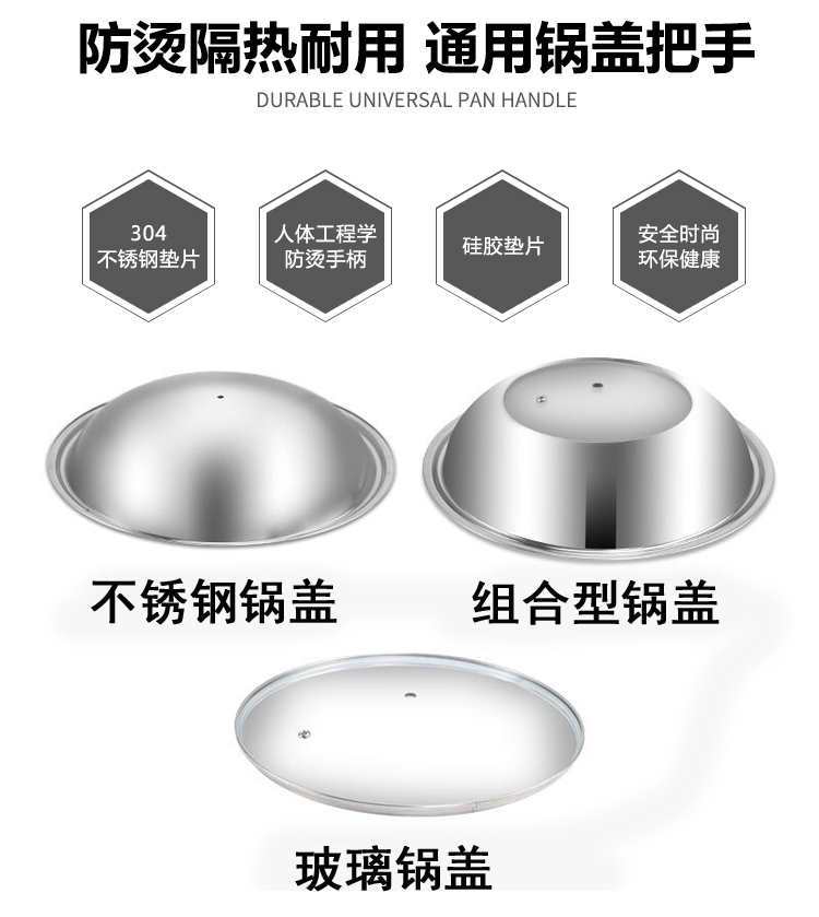 Soporte Universal Antiescaldado Asa Tapa de Olla Perilla Superior Accesorios Asa Acero Inoxidable Tapa de Olla de Vidrio Tapa Superior Grande