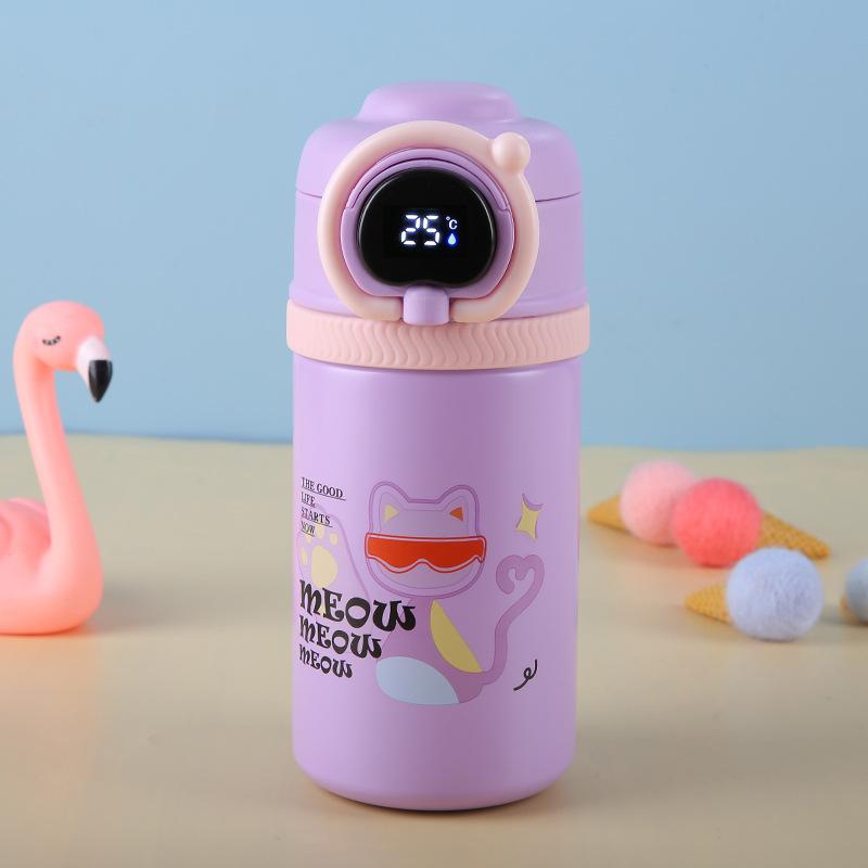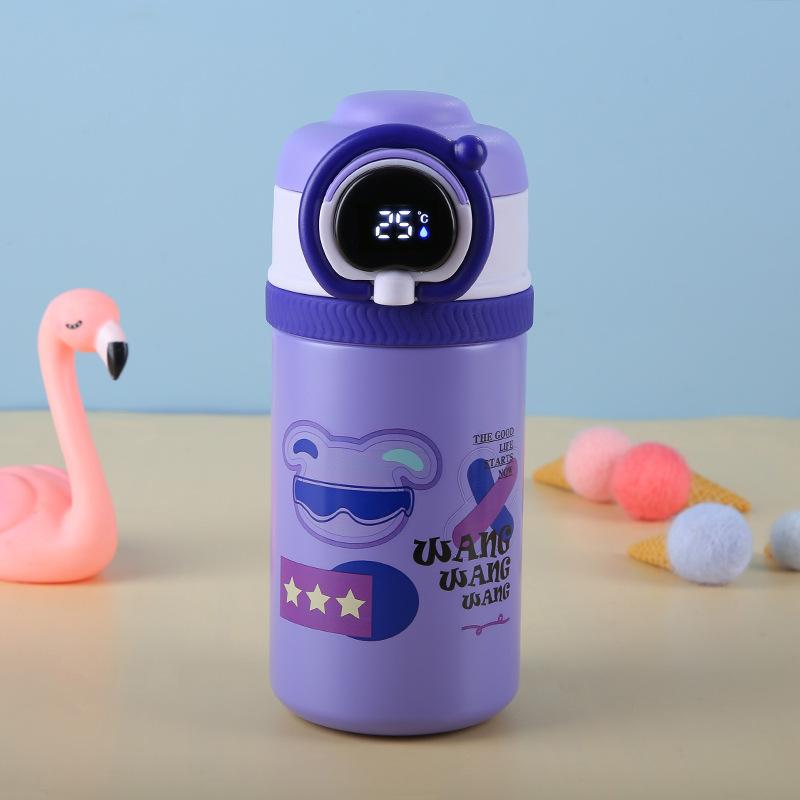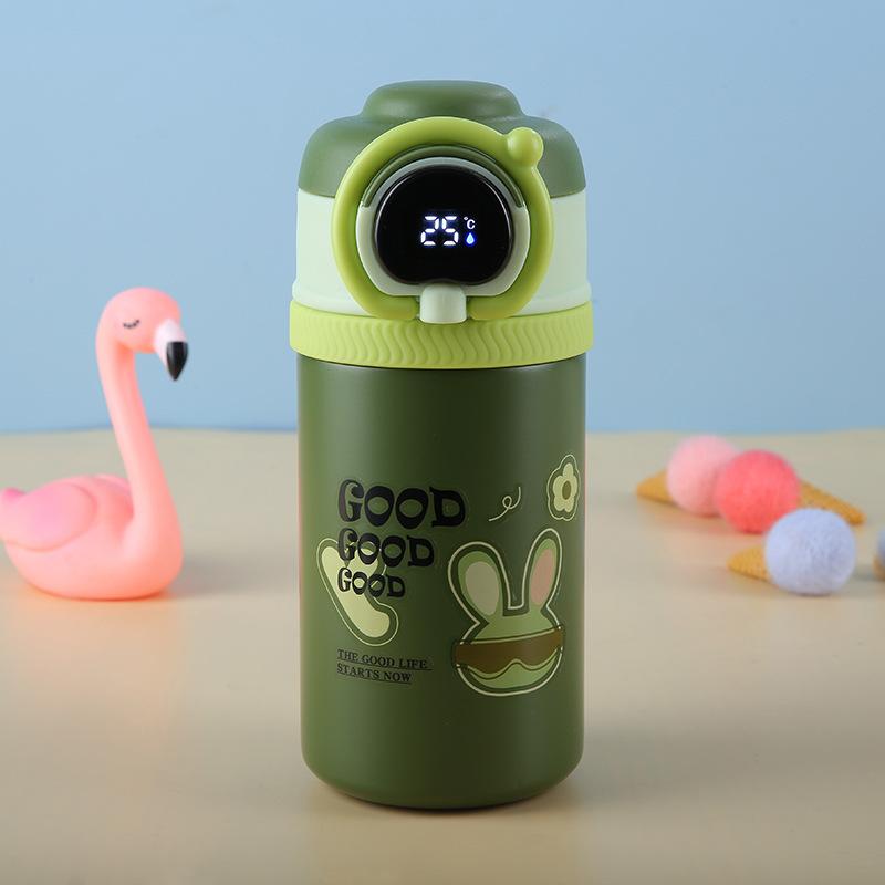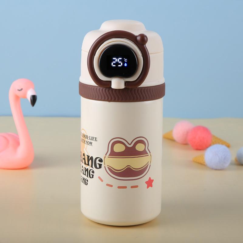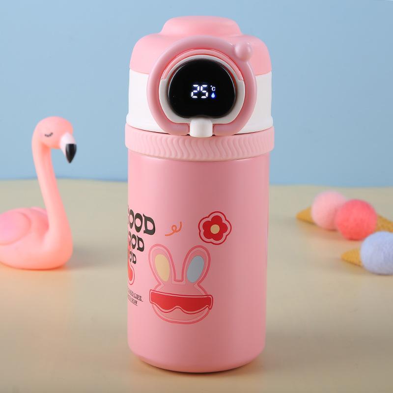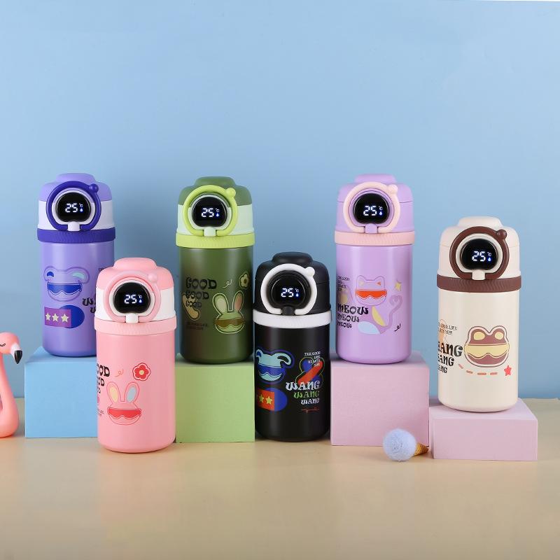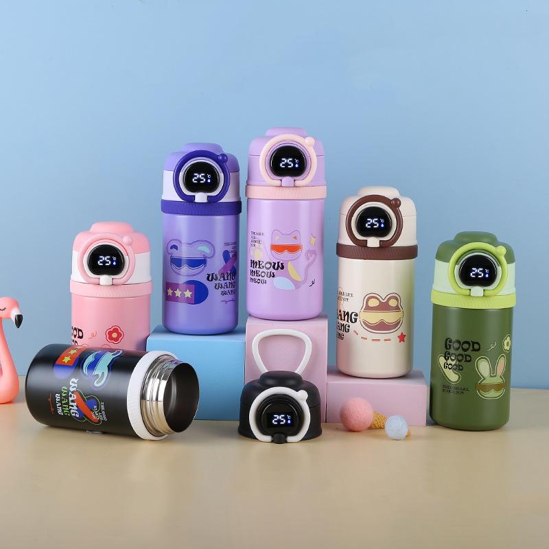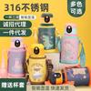 Termo inteligente de acero inoxidable 316 de dibujos animados, taza para estudiantes y niños, con alto valor de color, taza con tapa abatible, portátil con asa de elevación y ventosa
