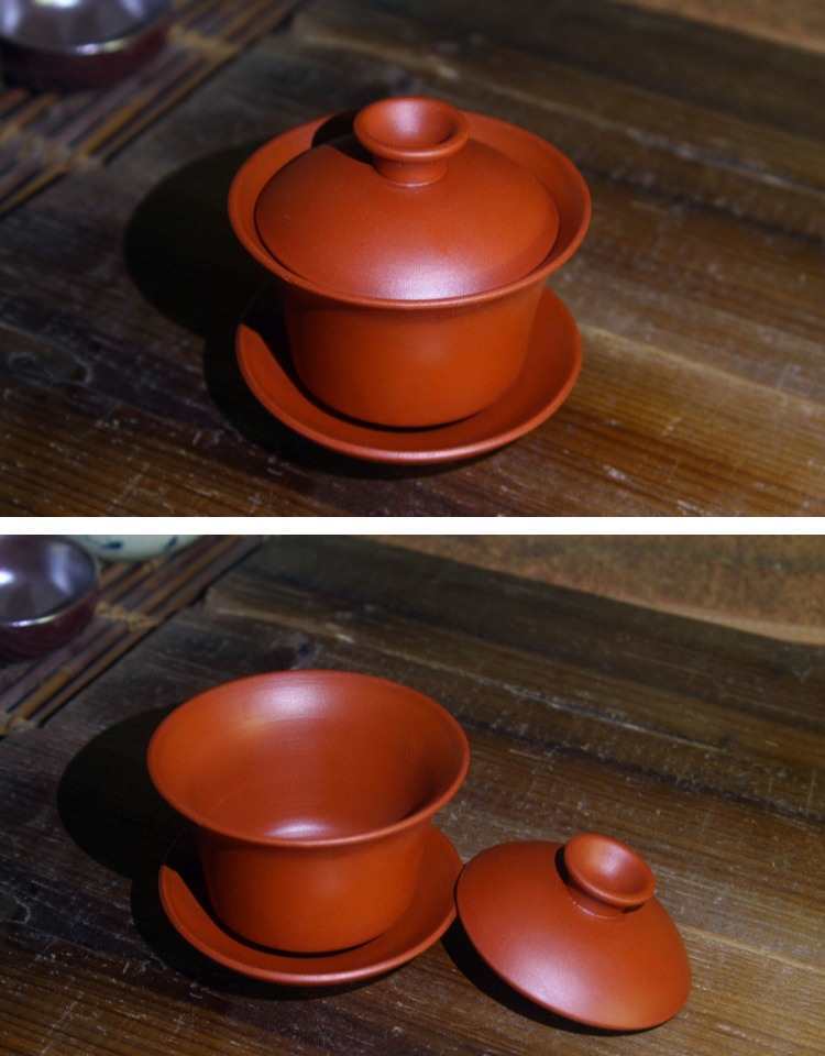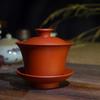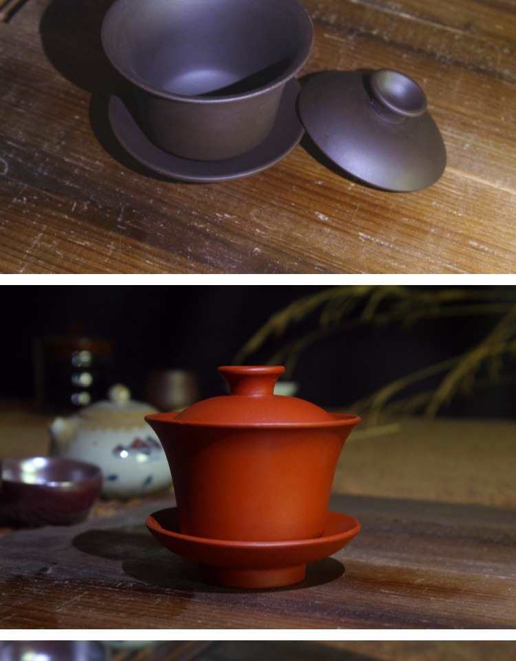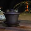 Juego de té kung fu de tazón de arena púrpura al por mayor, tazón de té para el hogar, taza de té de tres tazones, traje grande de cerámica con tapa, para preparar té