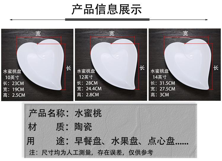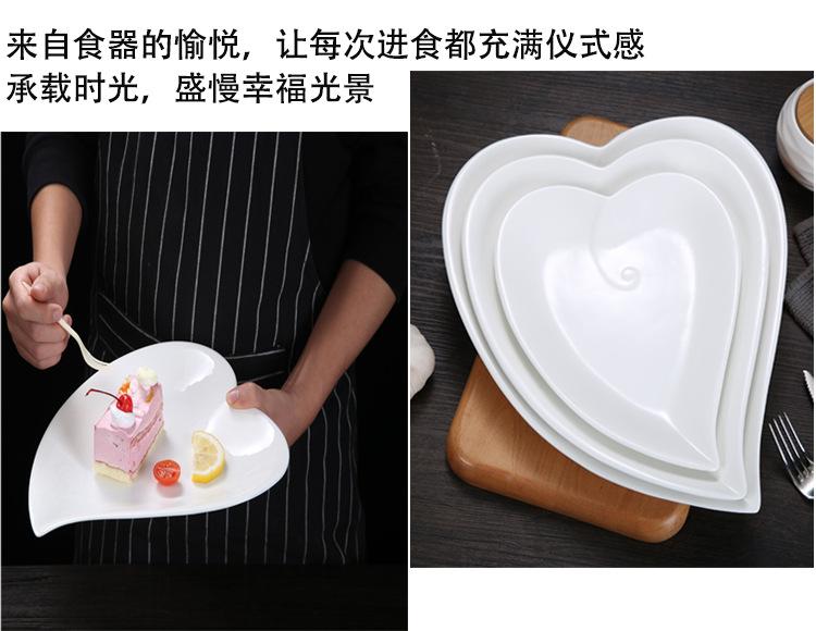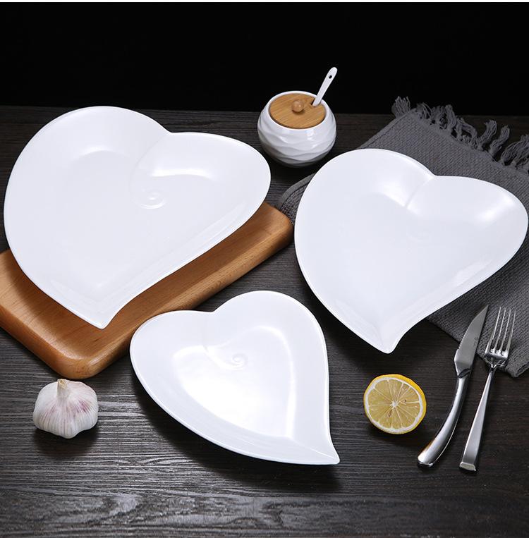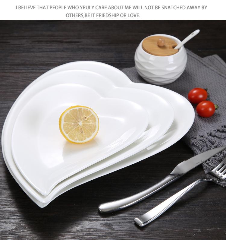 Plato de cerámica, plato de comida occidental, hogar creativo, en forma de corazón, blanco puro, vajilla para ensalada, hotel irregular