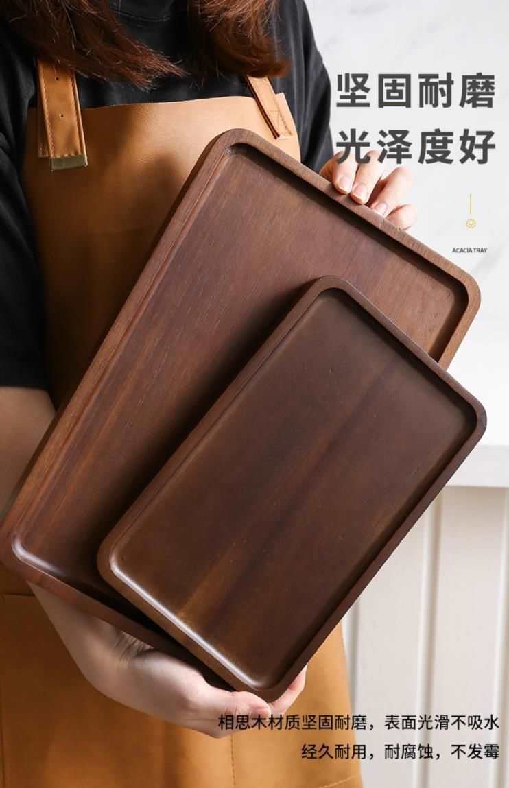 Compra Bandeja Rectangular de Madera Maciza de Acacia para el Hogar Estilo Japonés Soporte de Madera para Tazas Vaso para Agua Taza de Té Plato Plato para Almacenamiento Soporte para Plato de Cena al por mayor en Joom.pro