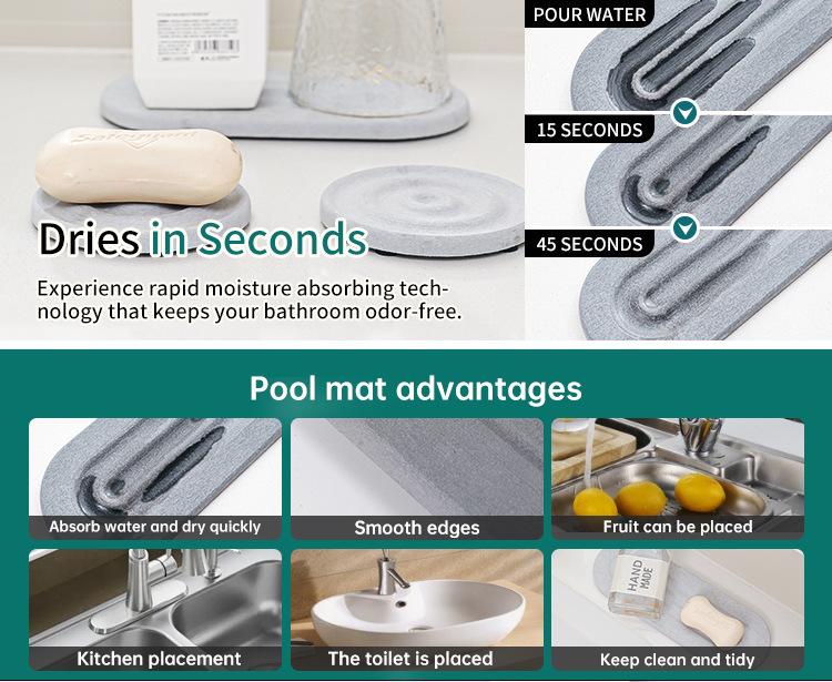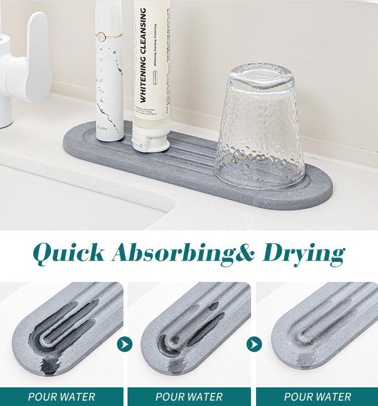 Nueva alfombrilla absorbente para encimera de baño transfronteriza, alfombrilla de cocina de secado instantáneo, grifo de lavabo, bandeja de piedra de secado rápido