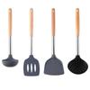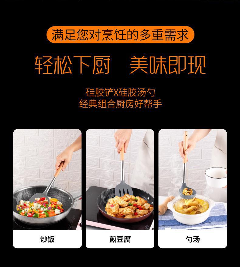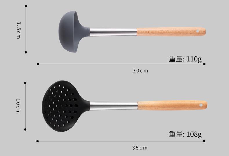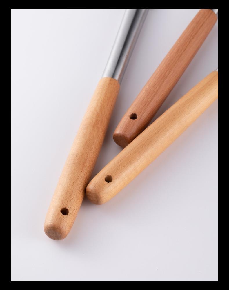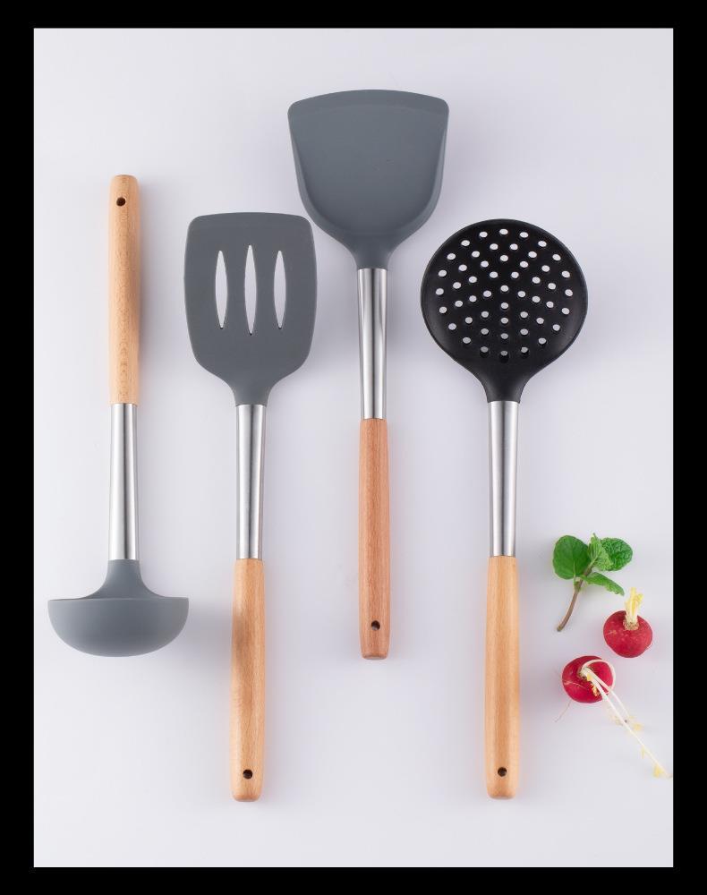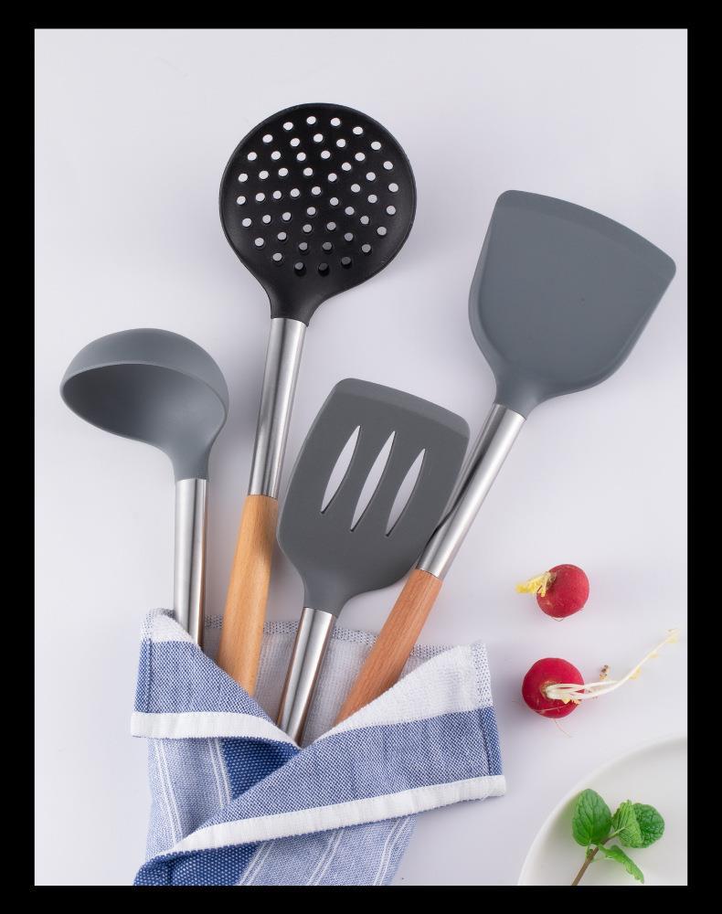 Mango de Madera Mango de Tubo de Acero Inoxidable Pala de Silicona Hogar Sartén Antiadherente Cuchara Especial para Saltear Cuchara para Sopa Colador Juego de Utensilios de Cocina de Silicona
