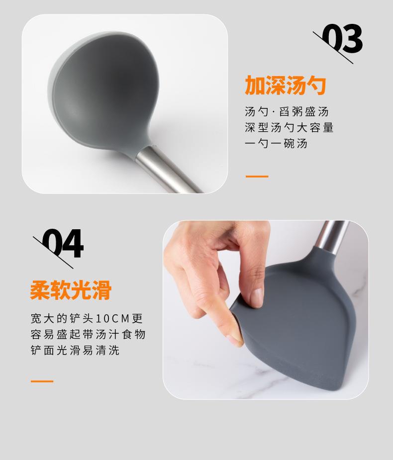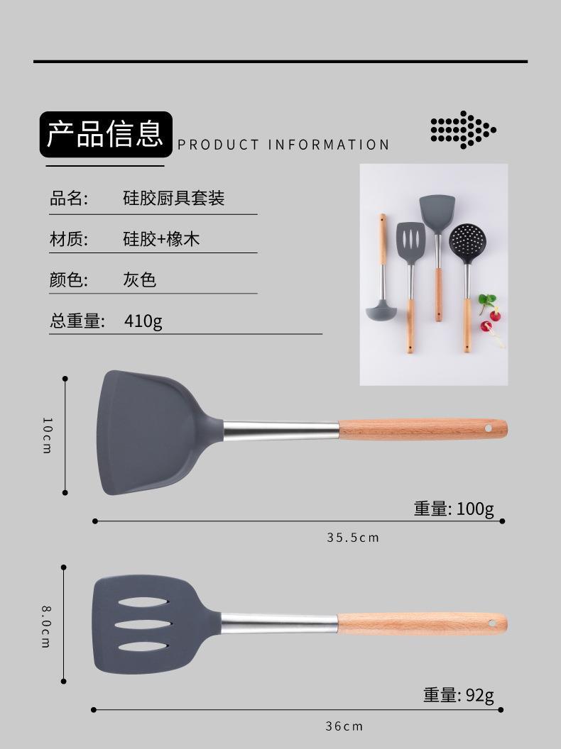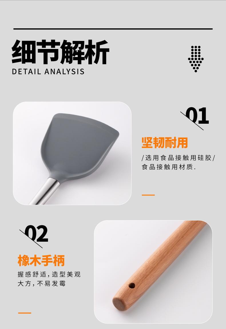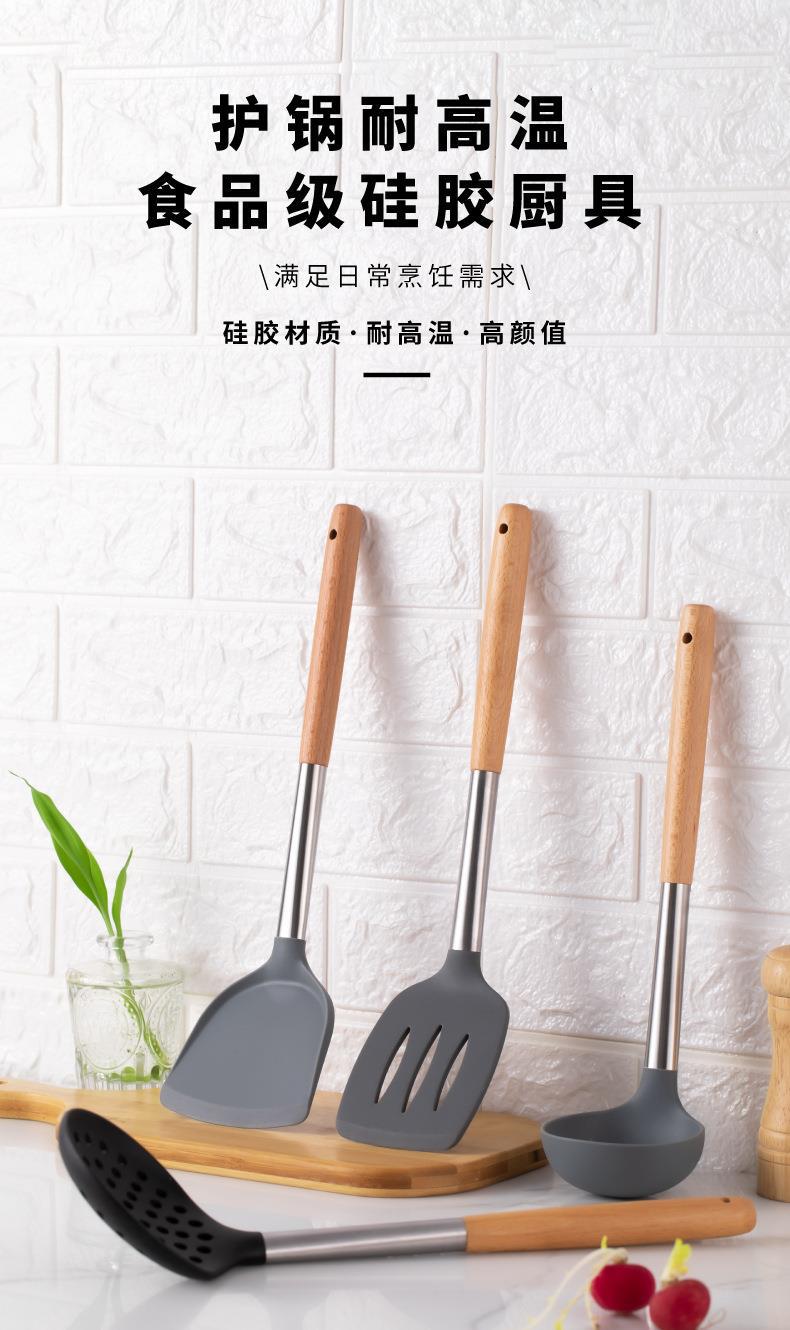 Mango de Madera Mango de Tubo de Acero Inoxidable Pala de Silicona Hogar Sartén Antiadherente Cuchara Especial para Saltear Cuchara para Sopa Colador Juego de Utensilios de Cocina de Silicona