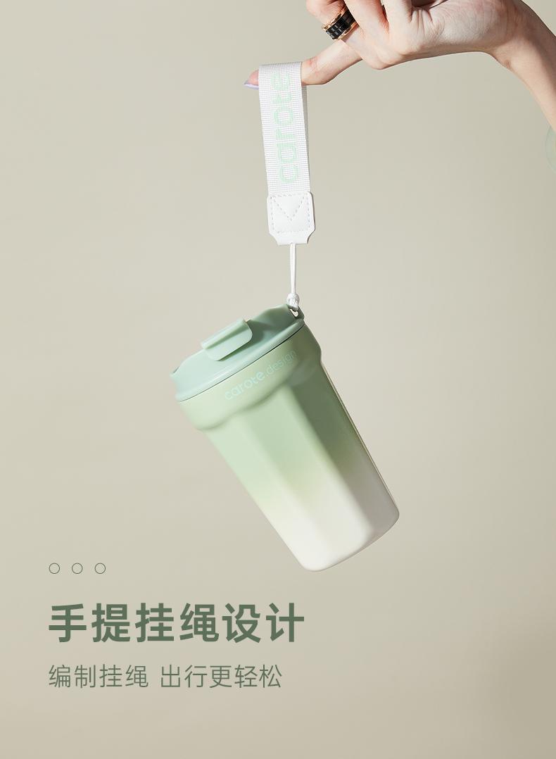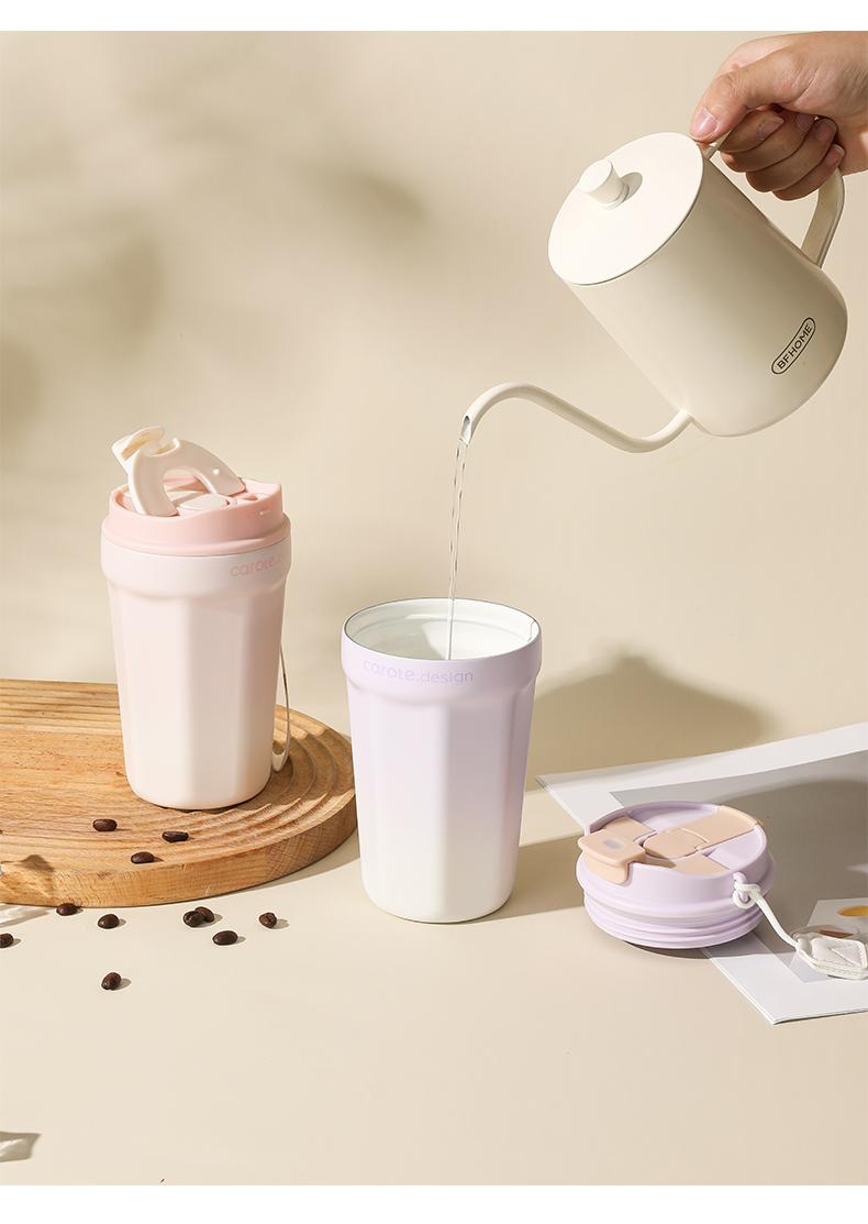 Taza de zanahoria con revestimiento de cerámica, taza de café portátil con pajita, taza de acero inoxidable para mujeres y hombres.