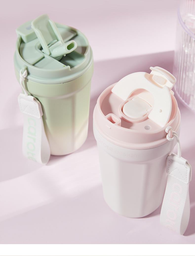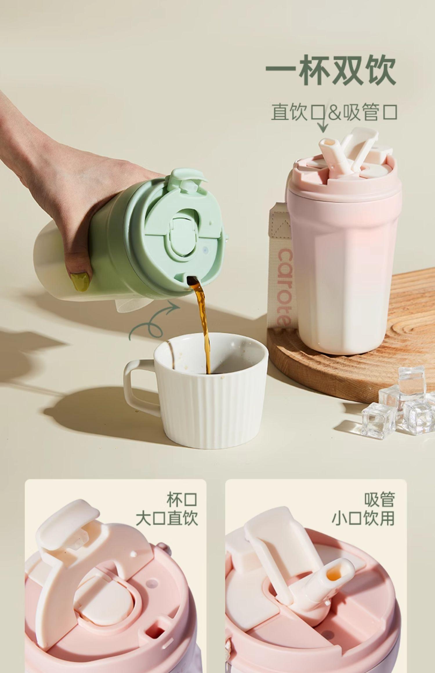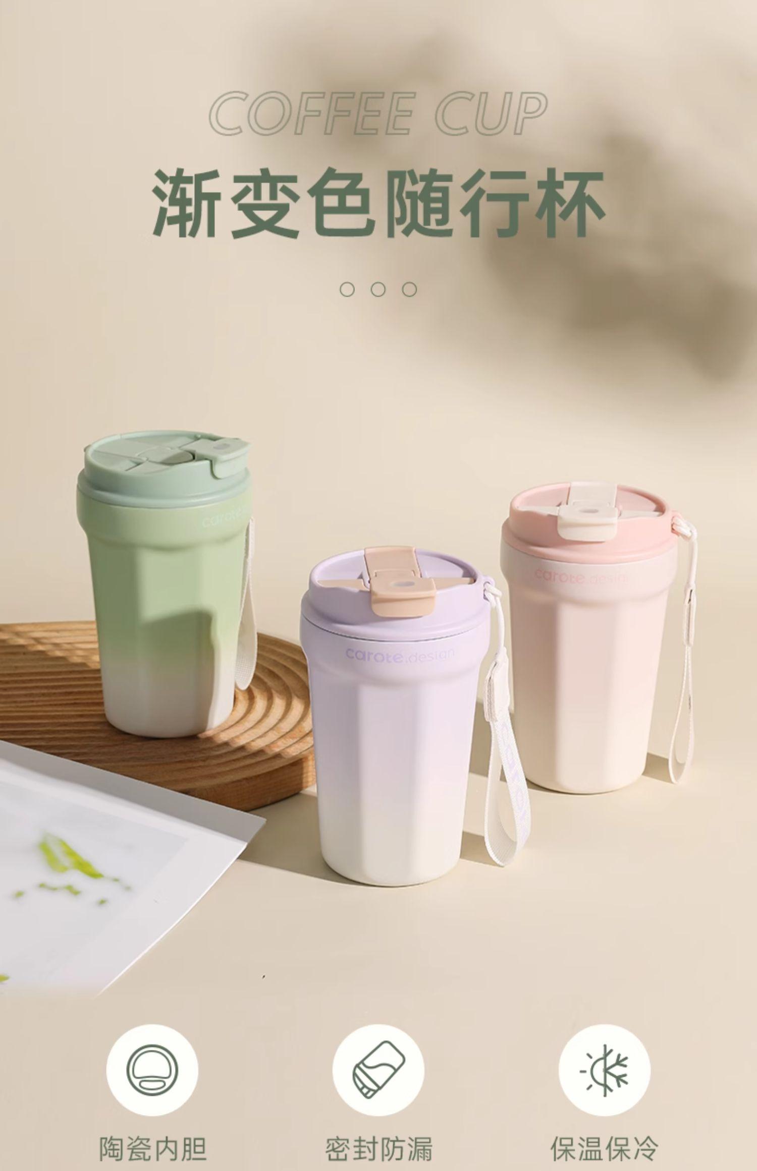 Compra Taza de zanahoria con revestimiento de cerámica, taza de café portátil con pajita, taza de acero inoxidable para mujeres y hombres. al por mayor en Joom.pro