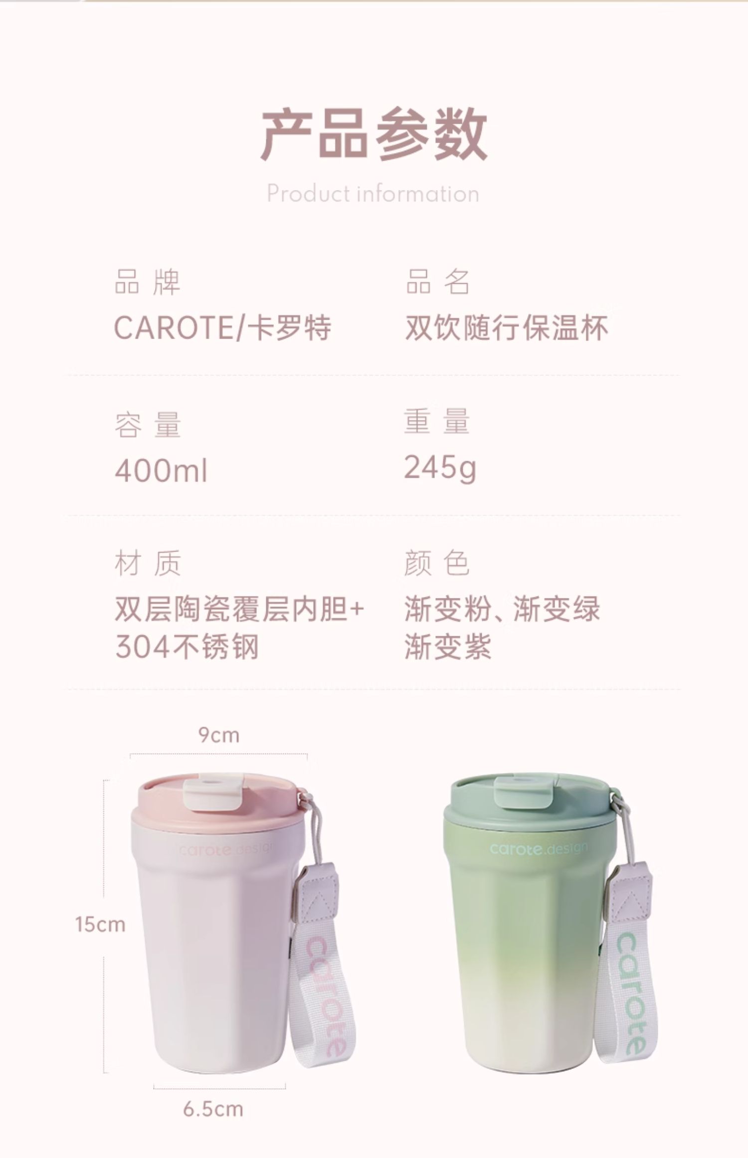 Gradient green-400ml direct drink & straw [ceramic liner], Gradient purple-400ml direct drink & straw [ceramic...