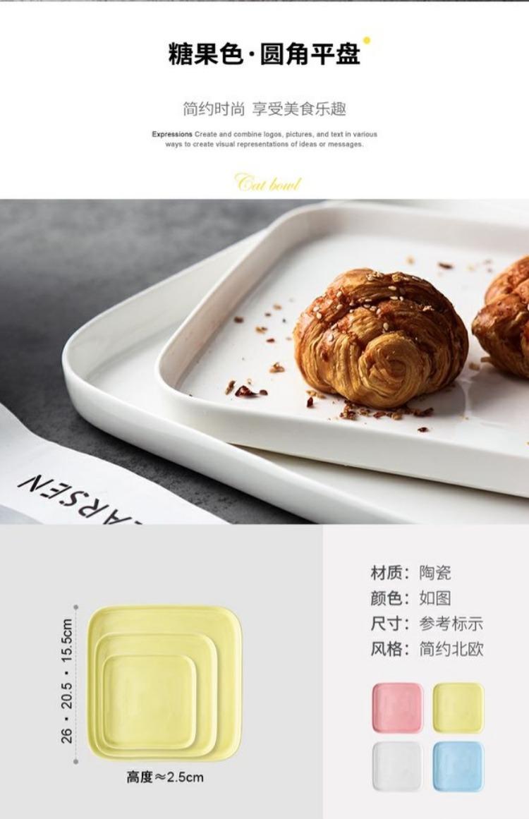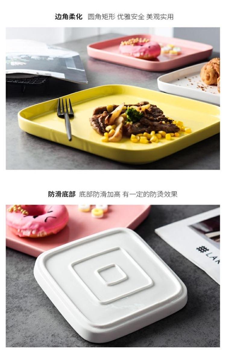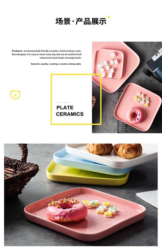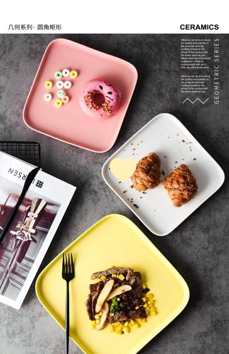 Plato de cerámica creativo y sencillo para el hogar, plato de comida occidental, bandeja para carne, vajilla nórdica, plato de desayuno cuadrado y plano.