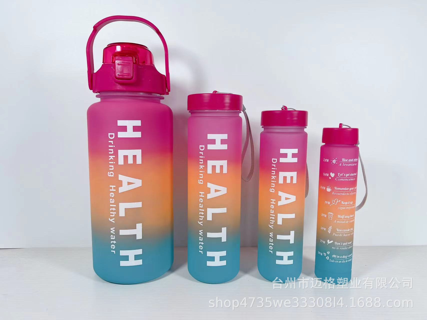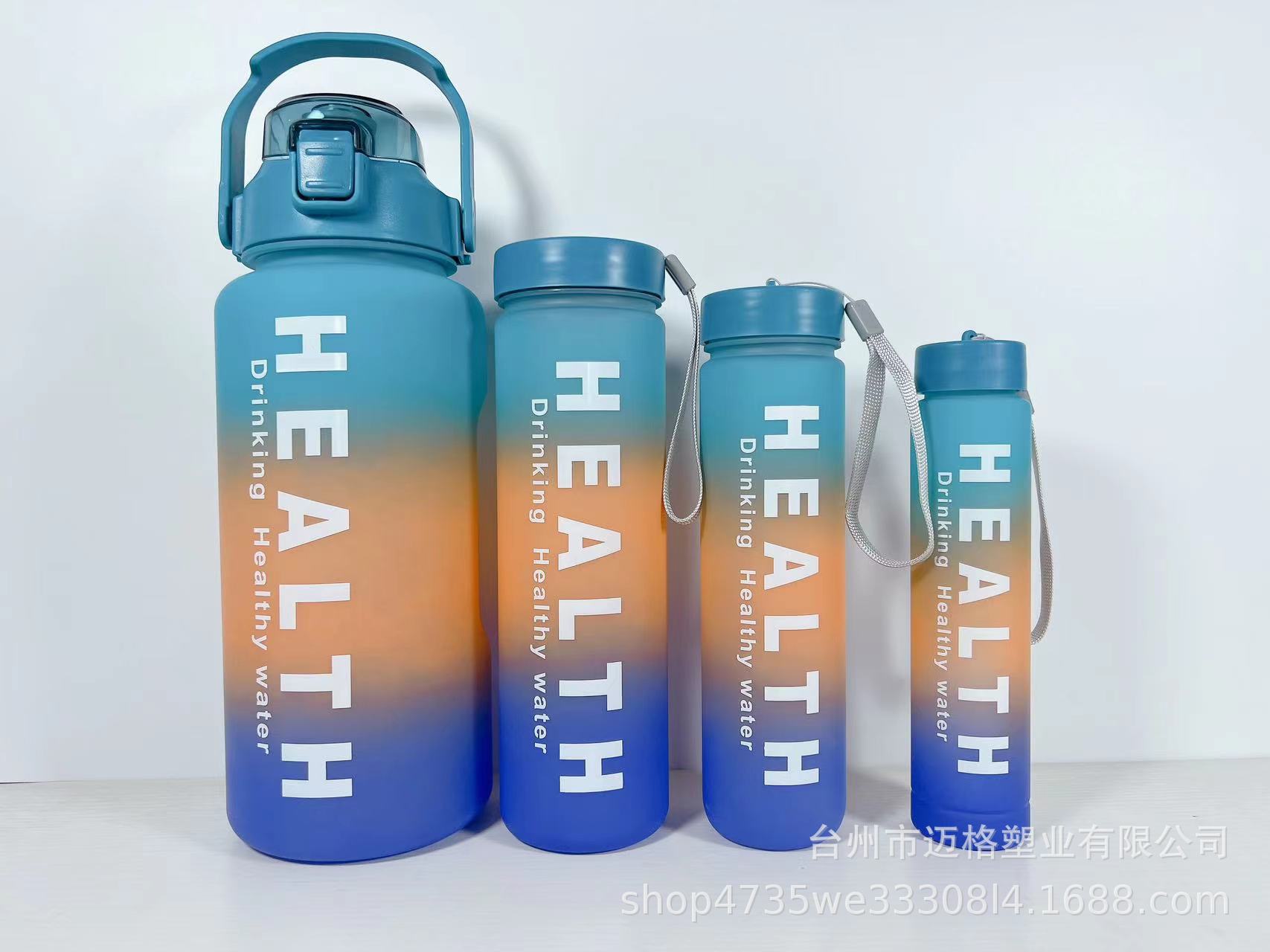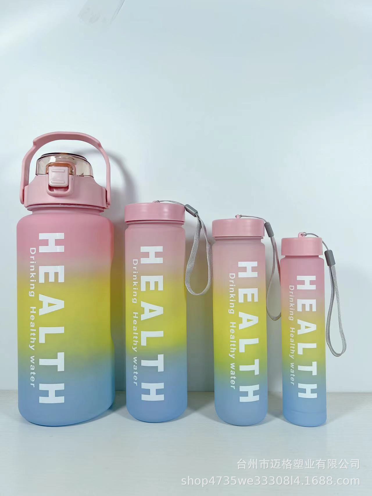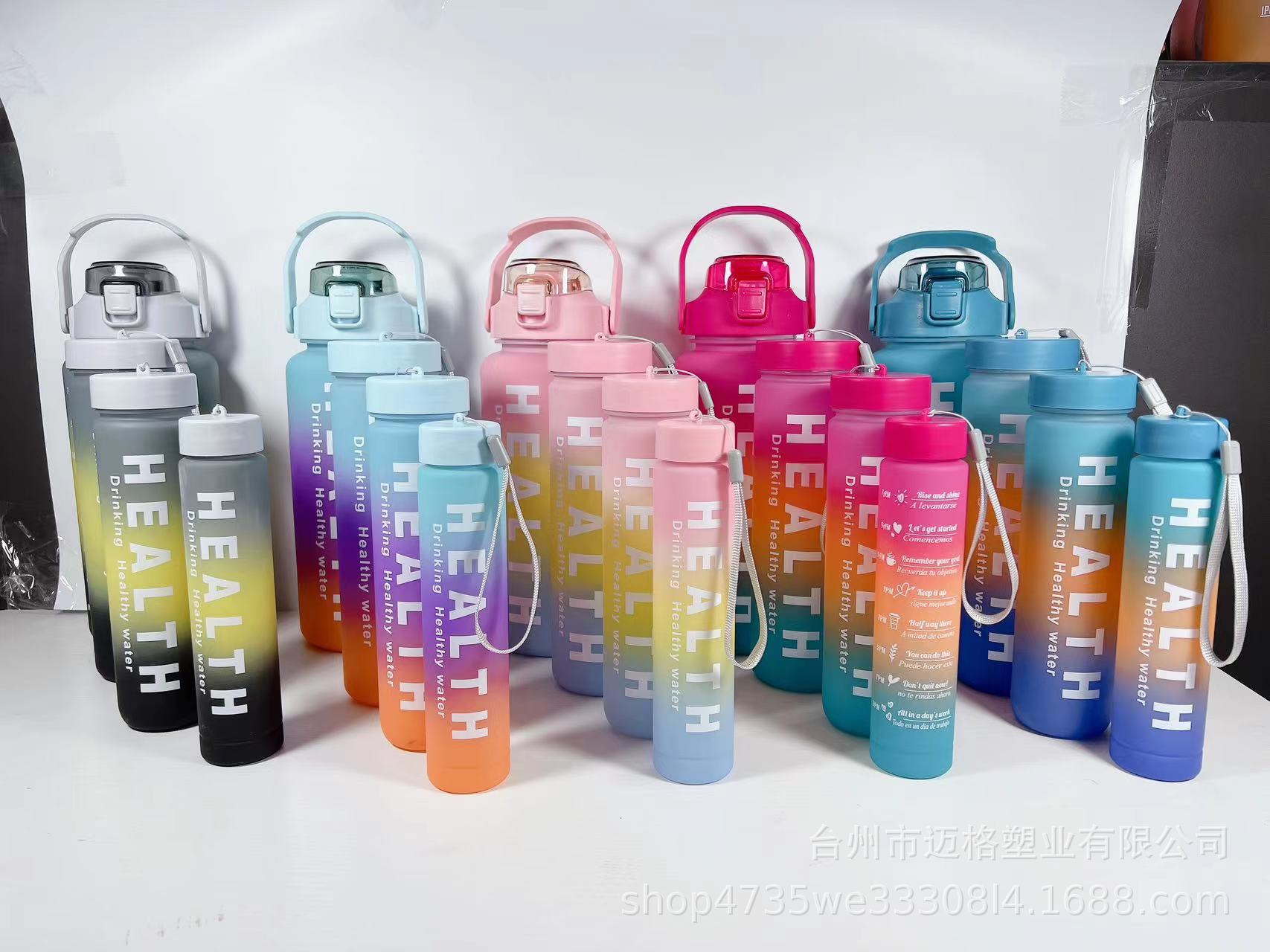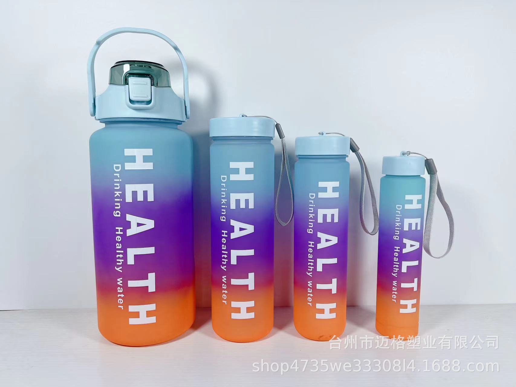 Nuevo Vaso de Plástico de Cuatro Piezas Degradado de Cuatro Colores Esmerilado Gran Capacidad Deportes al Aire Libre Portátil Vaso de Plástico con Pajita Vaso de Agua