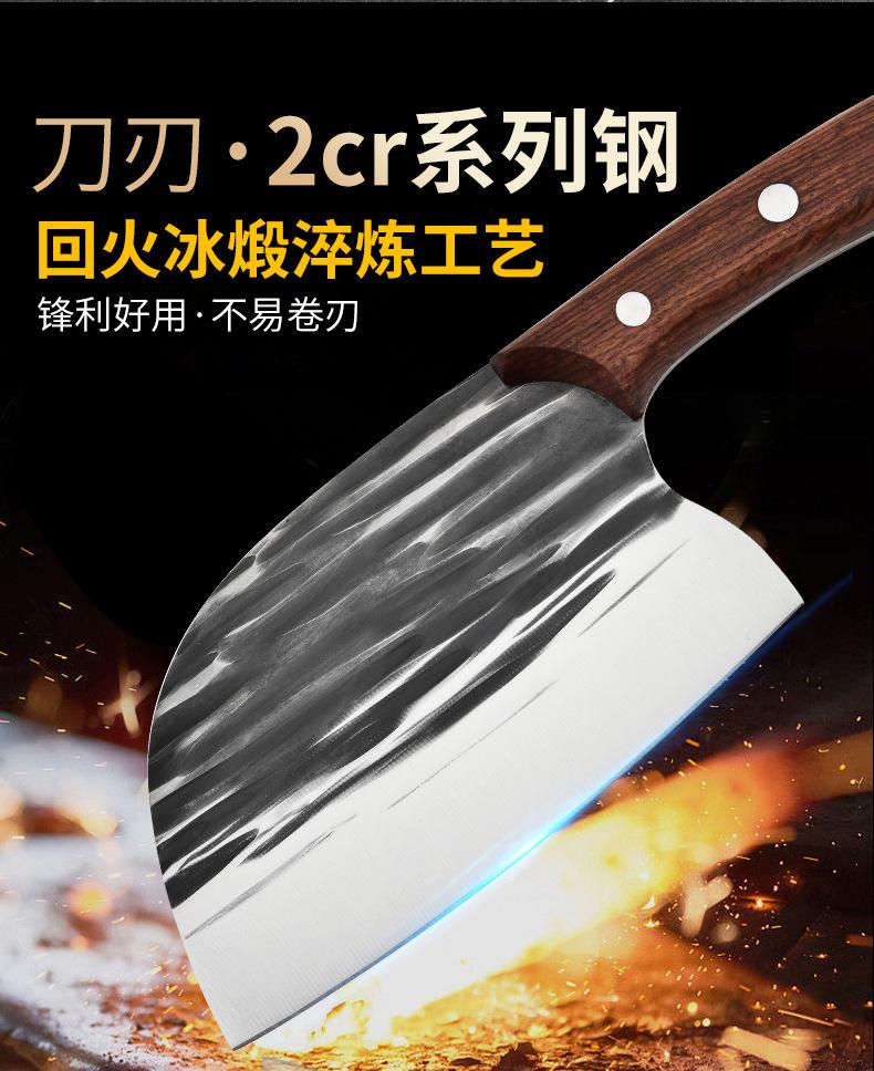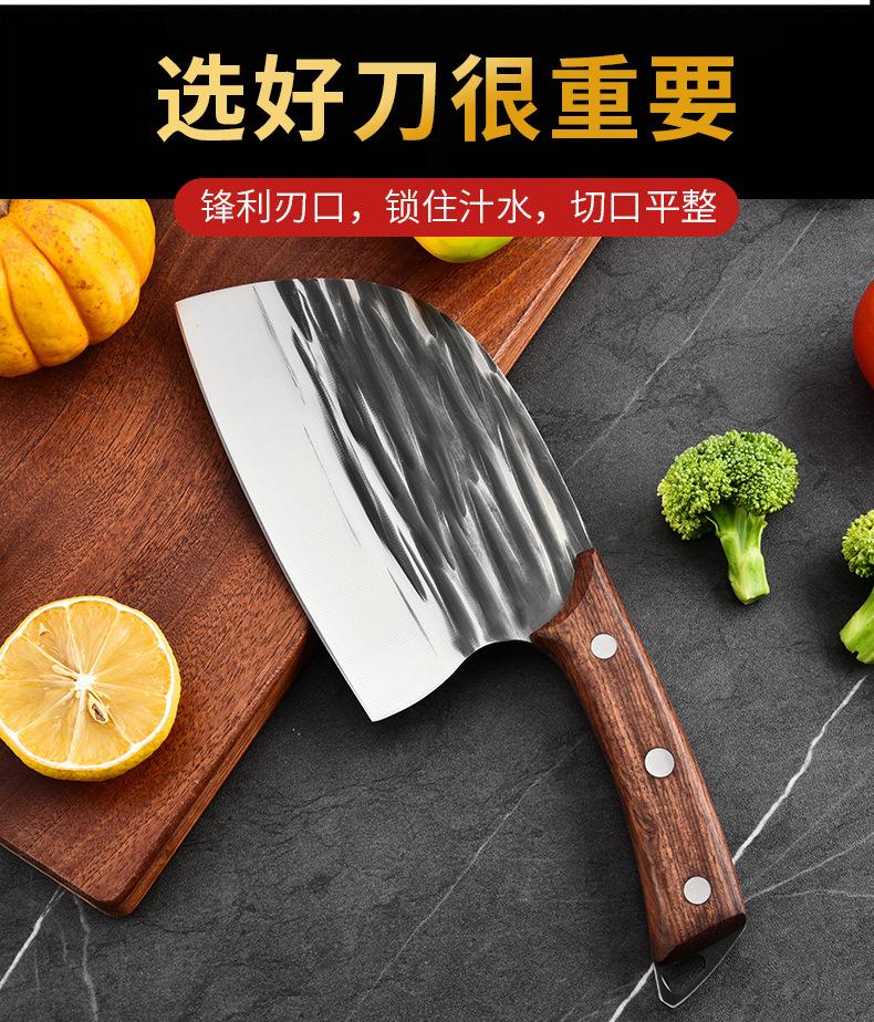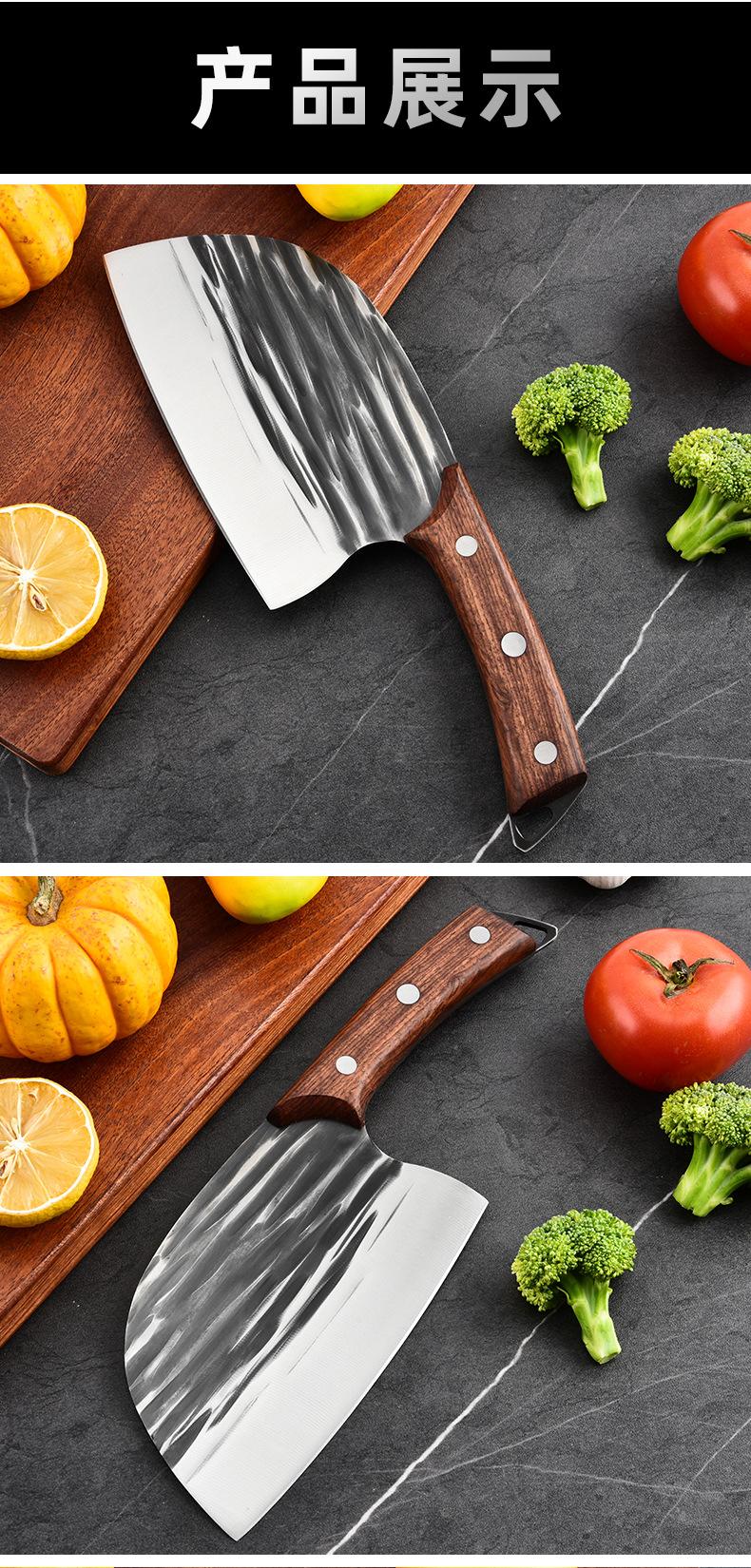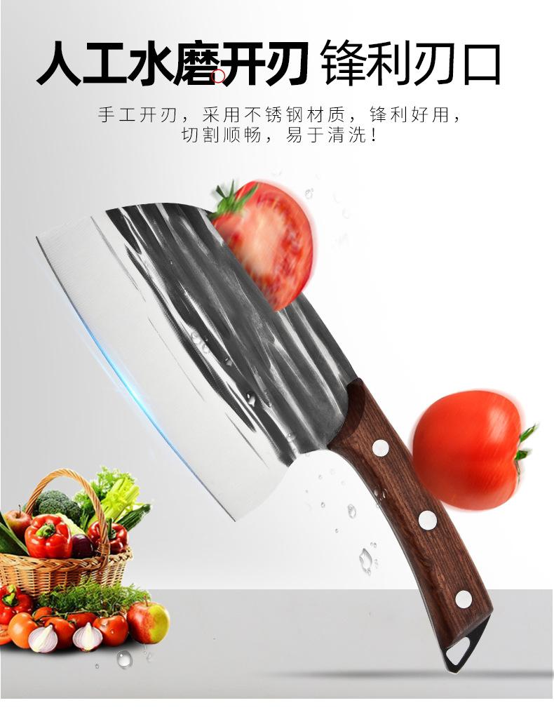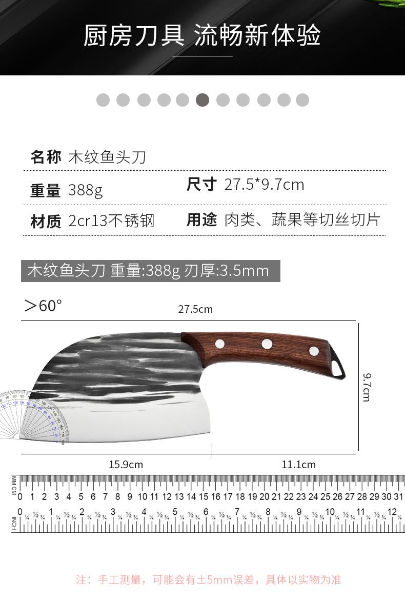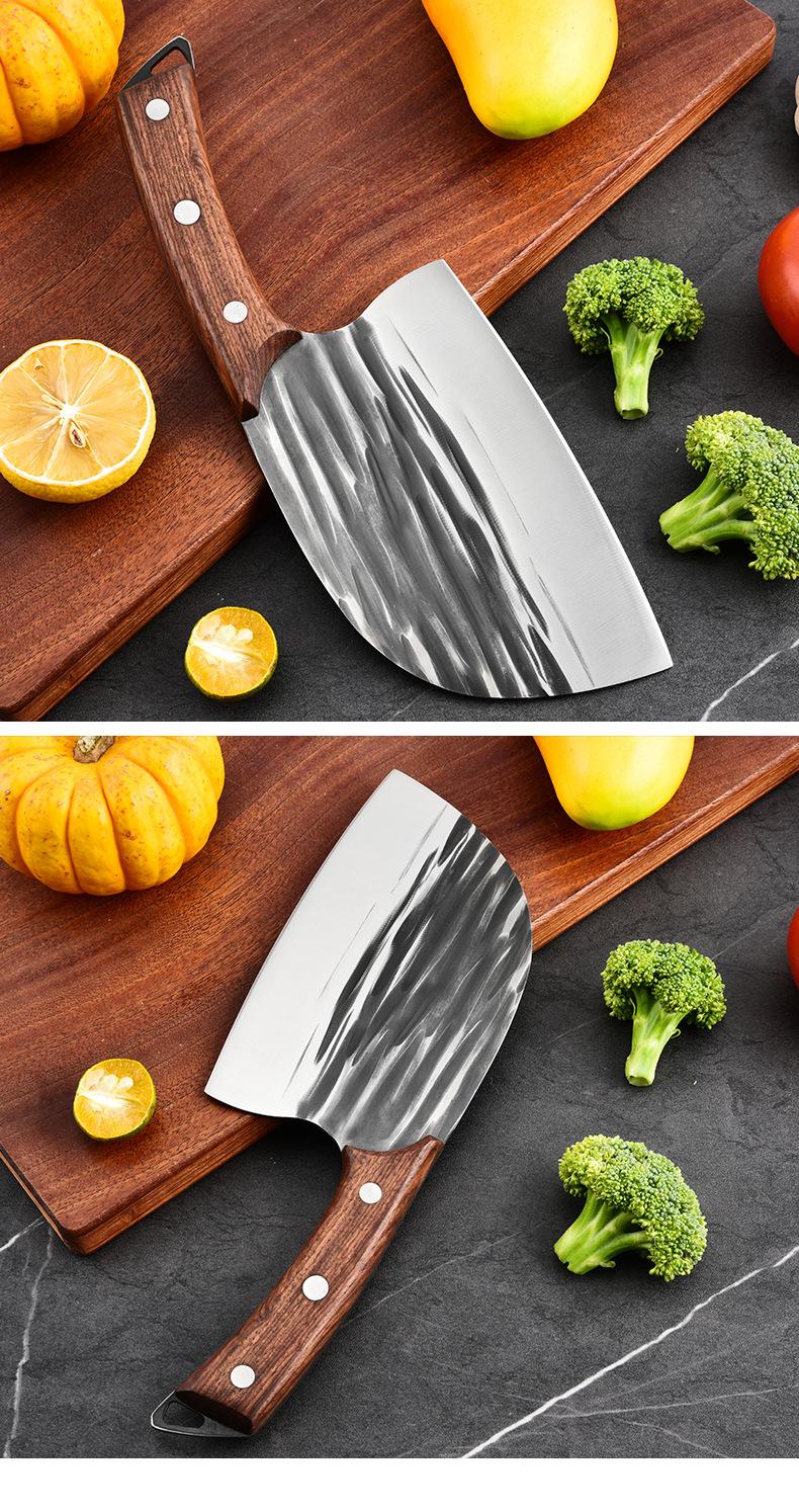 Cuchillo de cabeza de pescado de acero inoxidable, forjado a mano, cuchillo de cocina, cuchillo de chef para picar, cuchillo de cocina de doble uso con mango de madera para cortar carne.