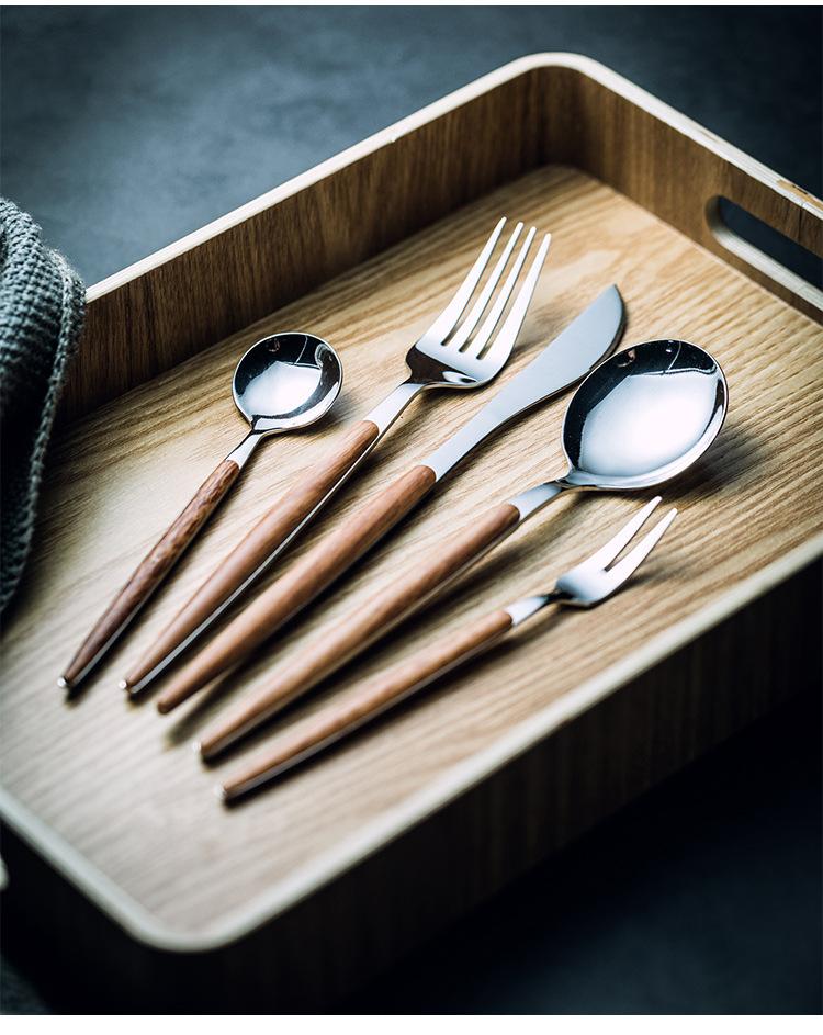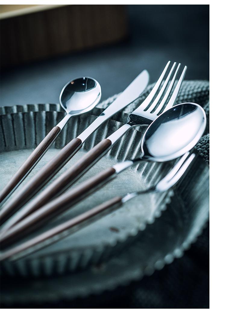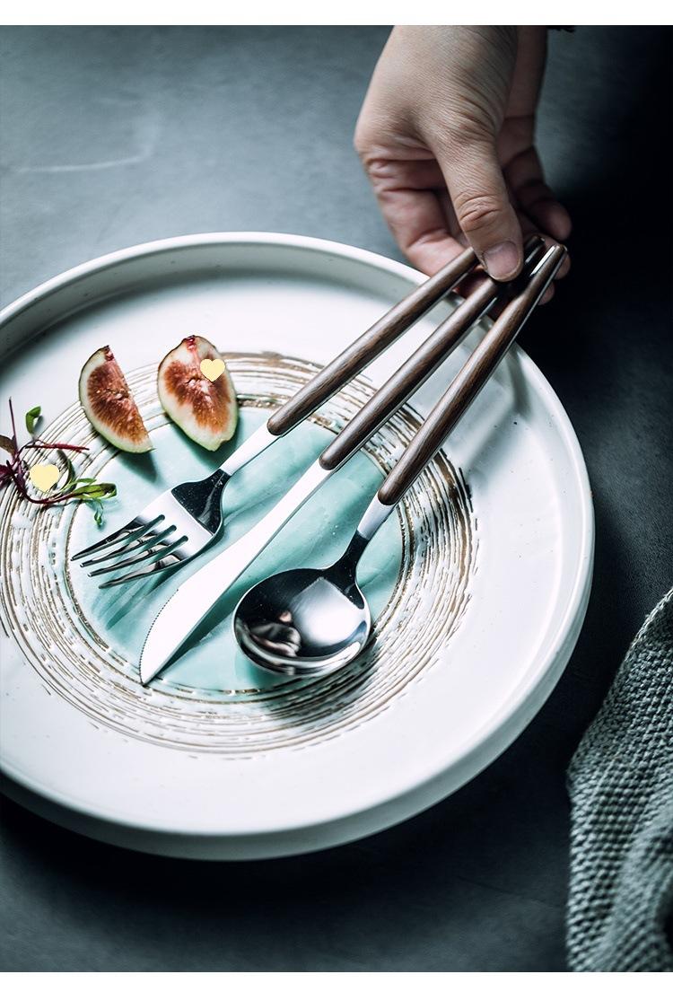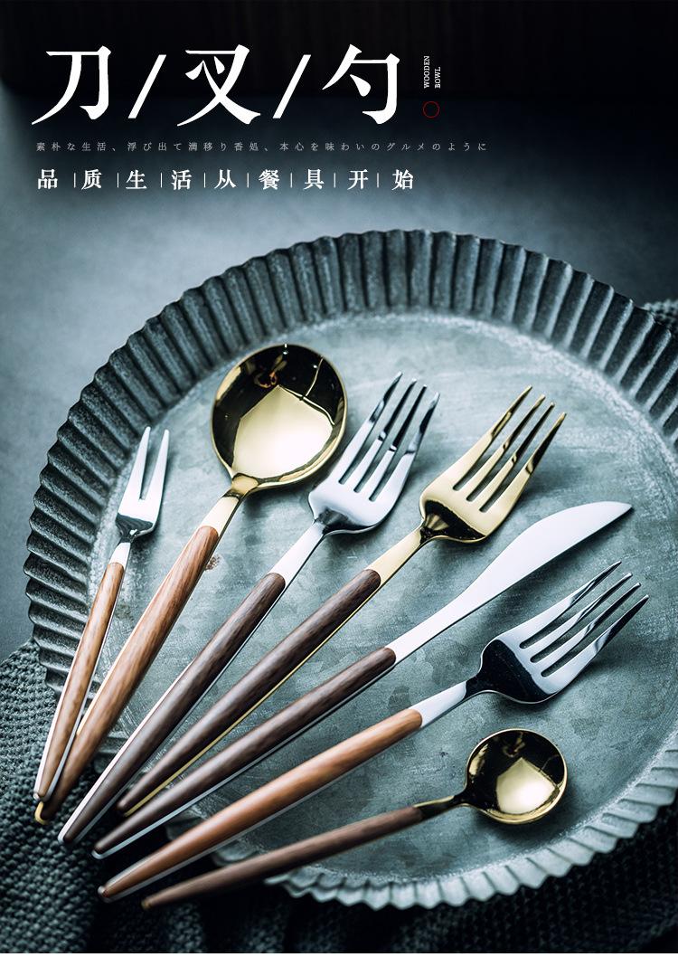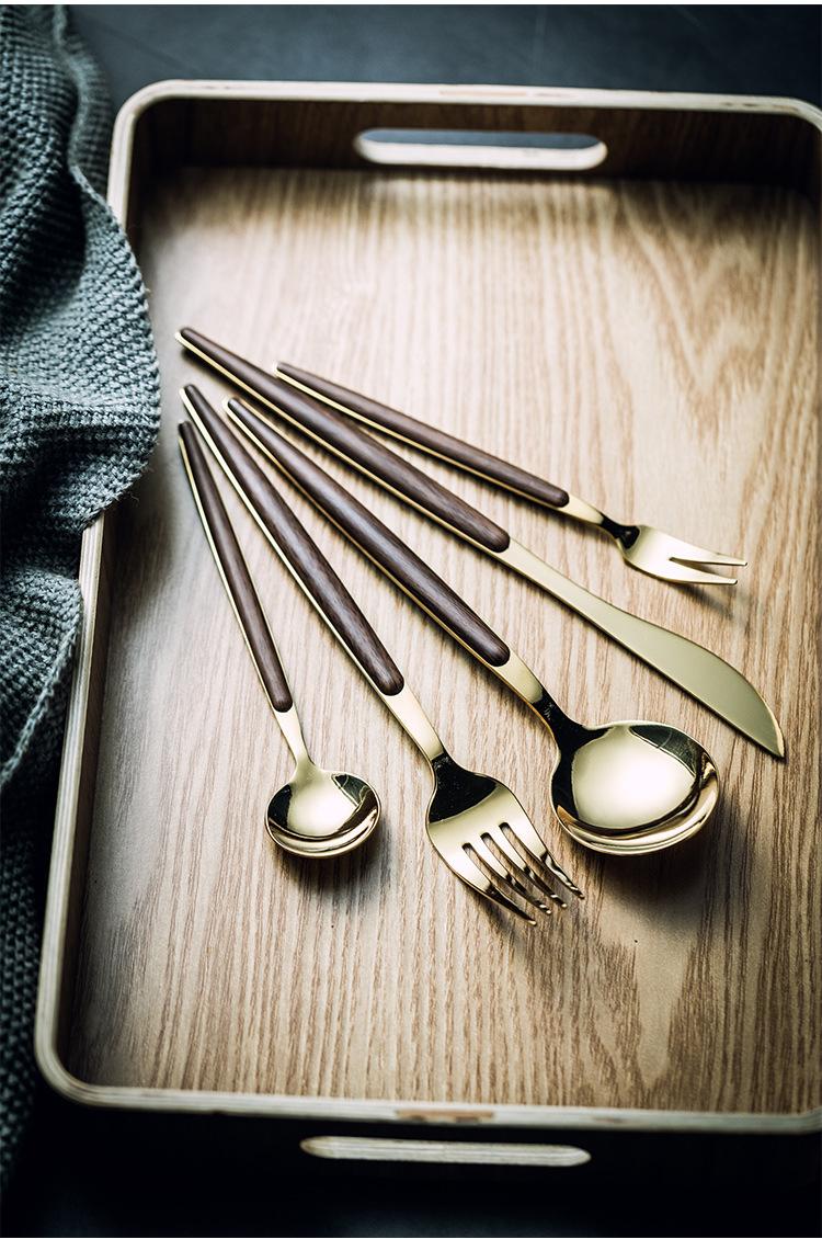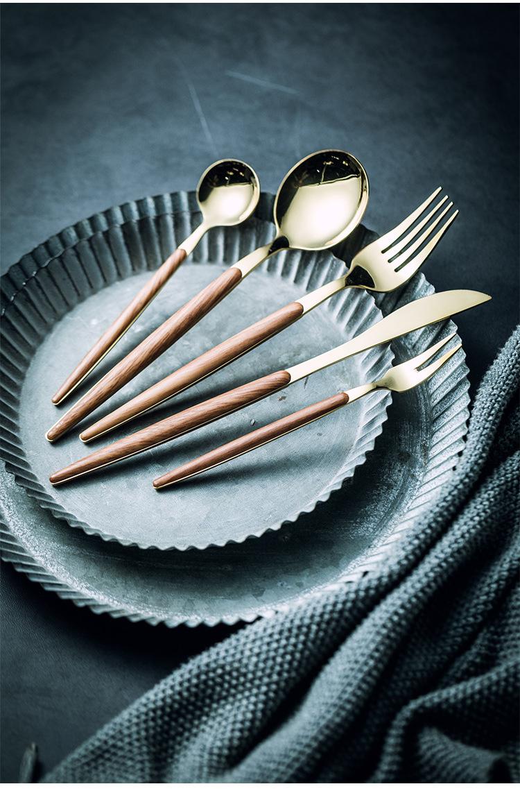Cuchillo y tenedor de acero inoxidable creativo clásico, juego de vajilla occidental, cuchara de postre, cuchara de arroz, cuchara de sopa, cuchillo de cena para carne doméstica