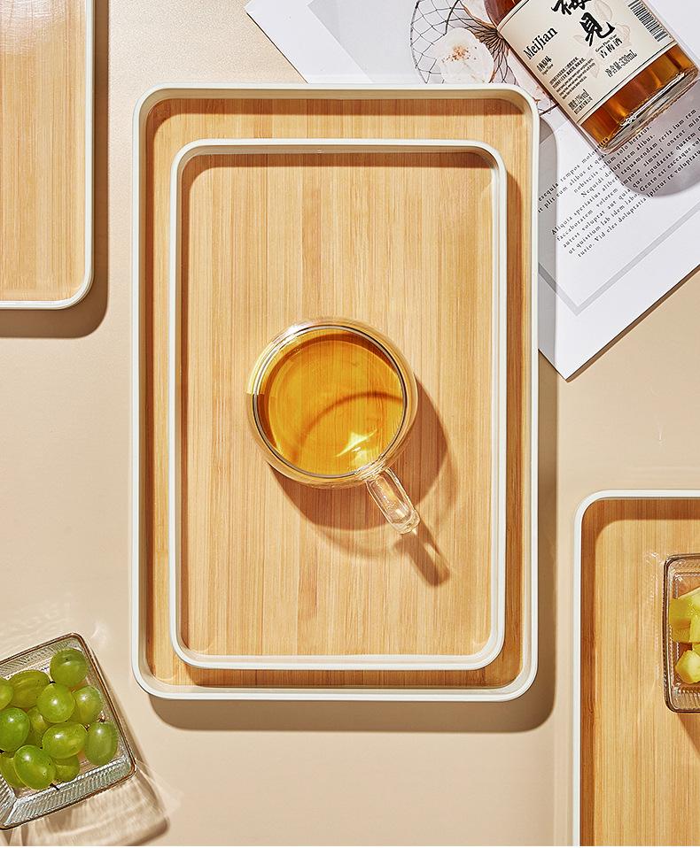 Bandeja rectangular para el hogar con imitación de madera, bandeja de té, bandeja de plástico para almacenar, plato de cena, plato de fruta comercial