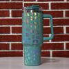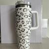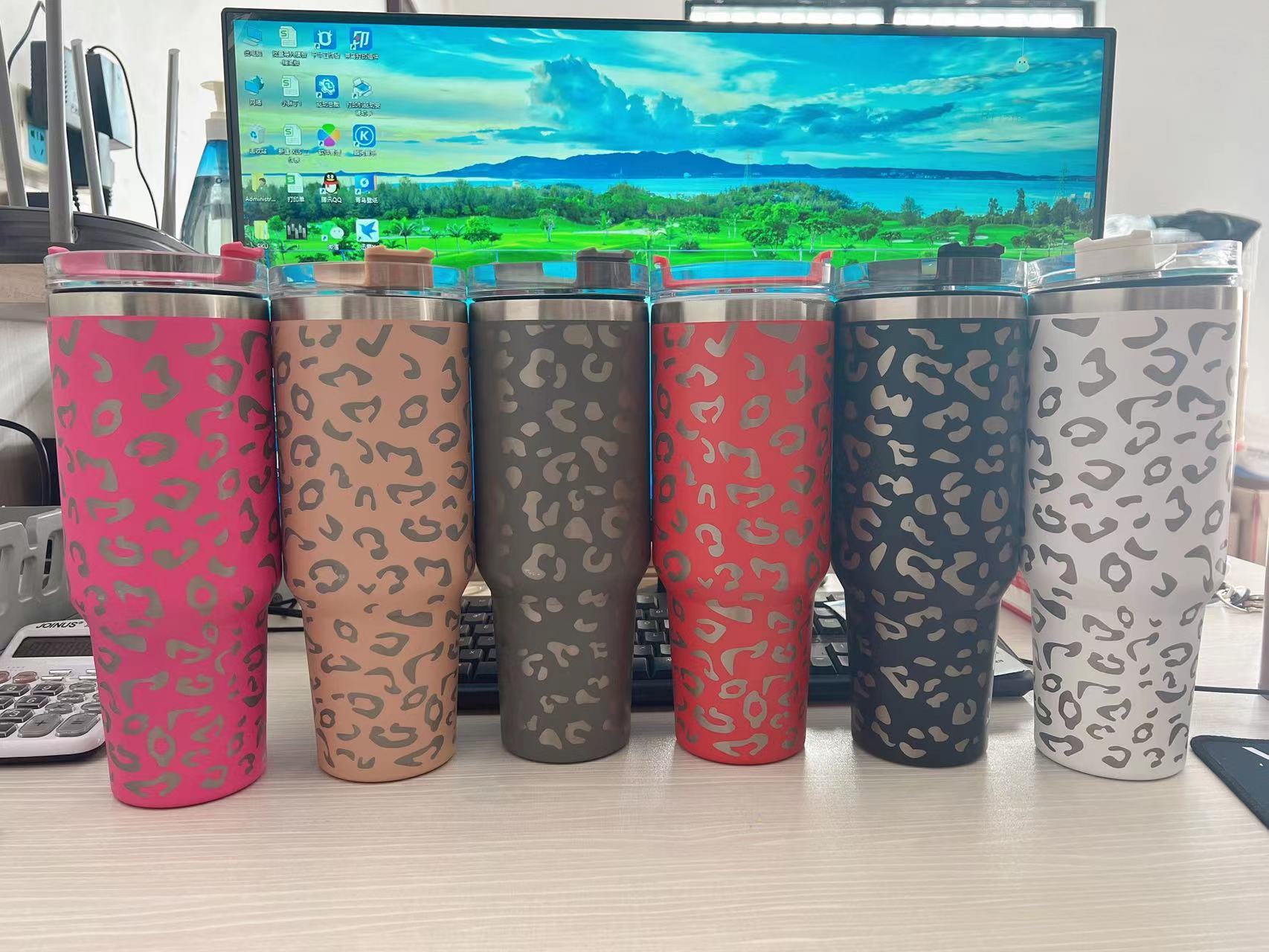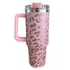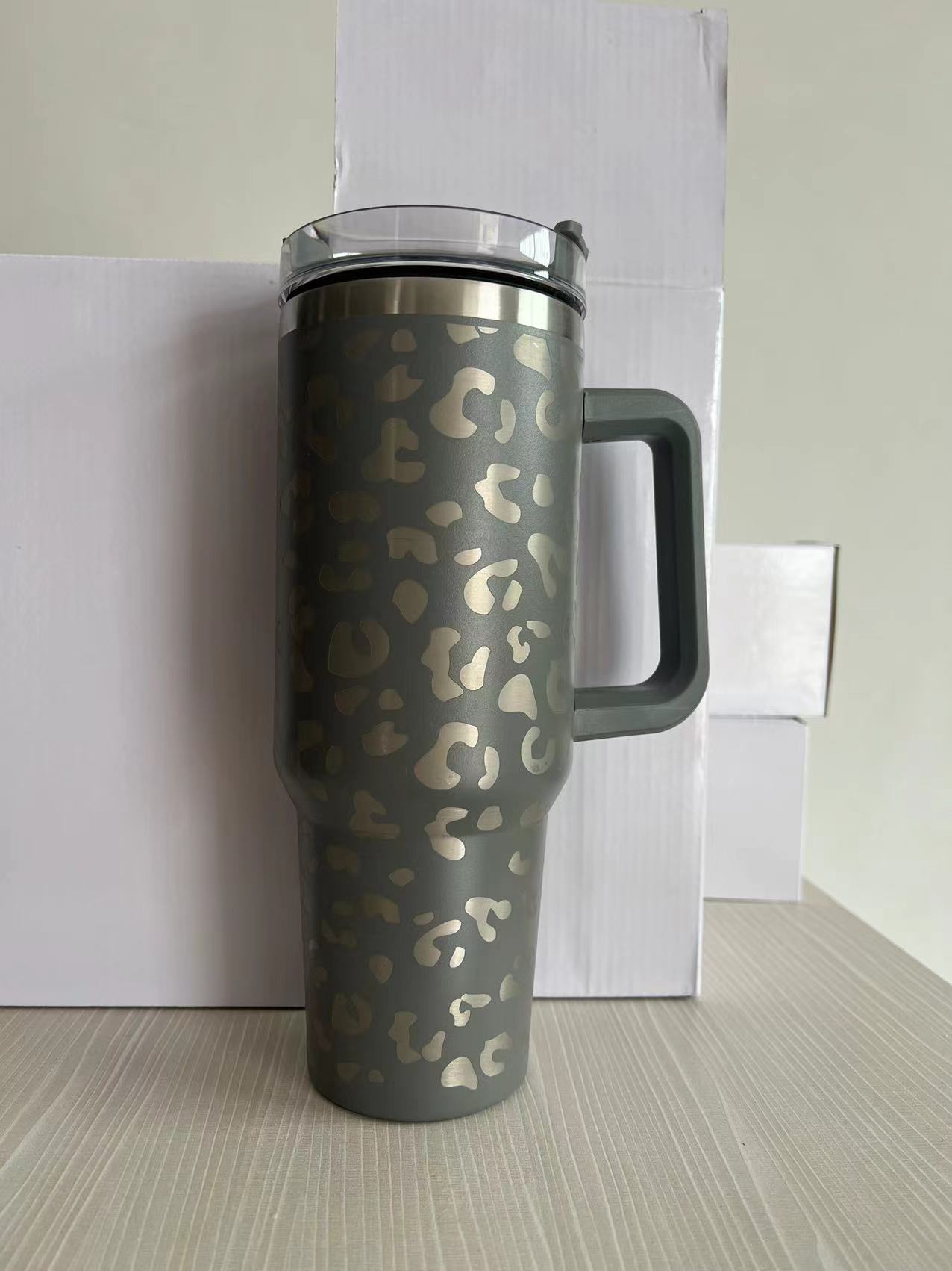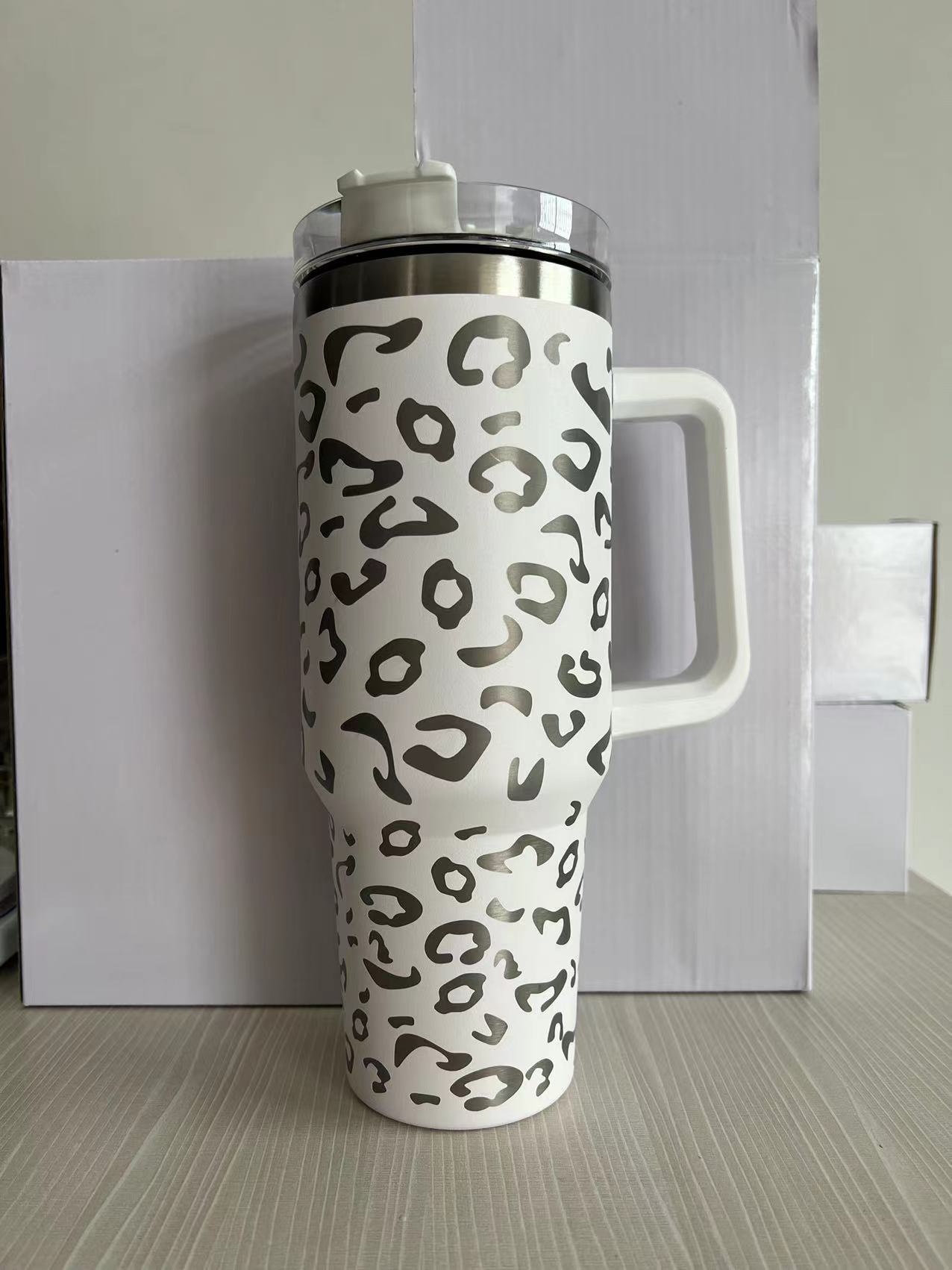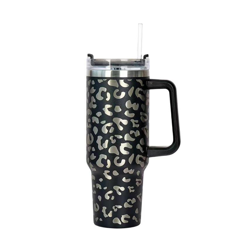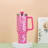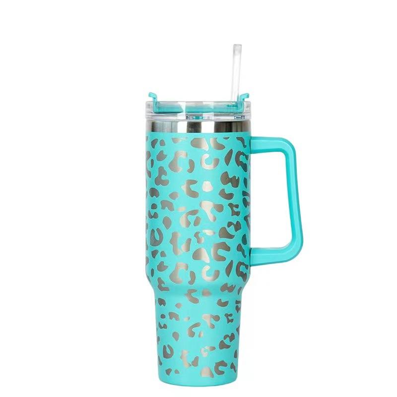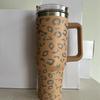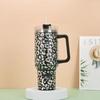 Termo portátil para coche de acero inoxidable 304 con asa de leopardo de 40 oz, para bebidas frías y calientes, venta al por mayor