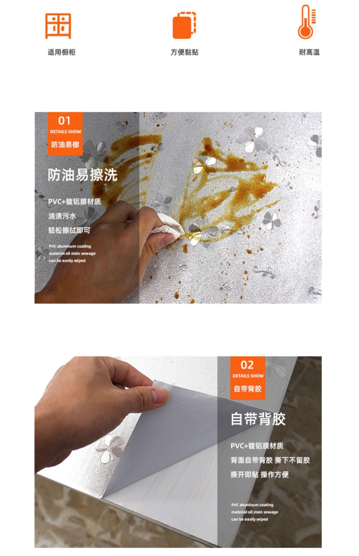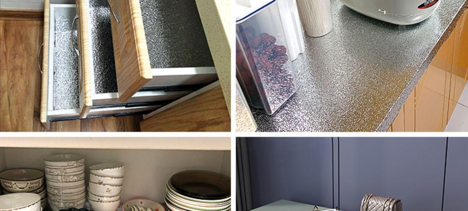 Compra Pegatinas de cocina a prueba de aceite, papel de aluminio, impermeable, a prueba de humedad, tapete para cajones, gabinetes, autoadhesivo, papel de encimera engrosado, renovación de armario al por mayor en Joom.pro