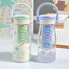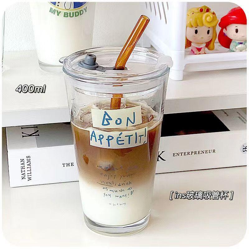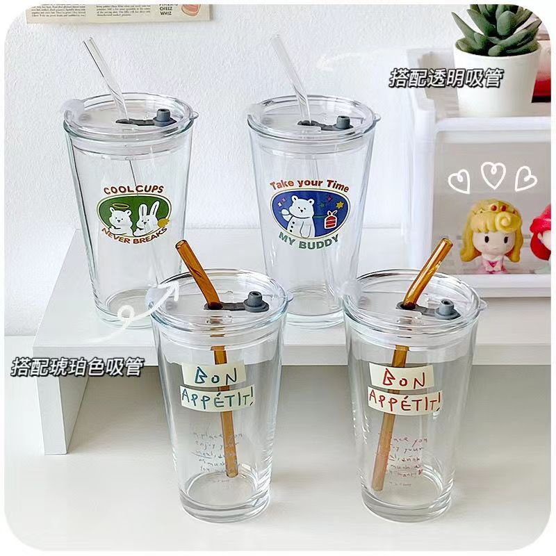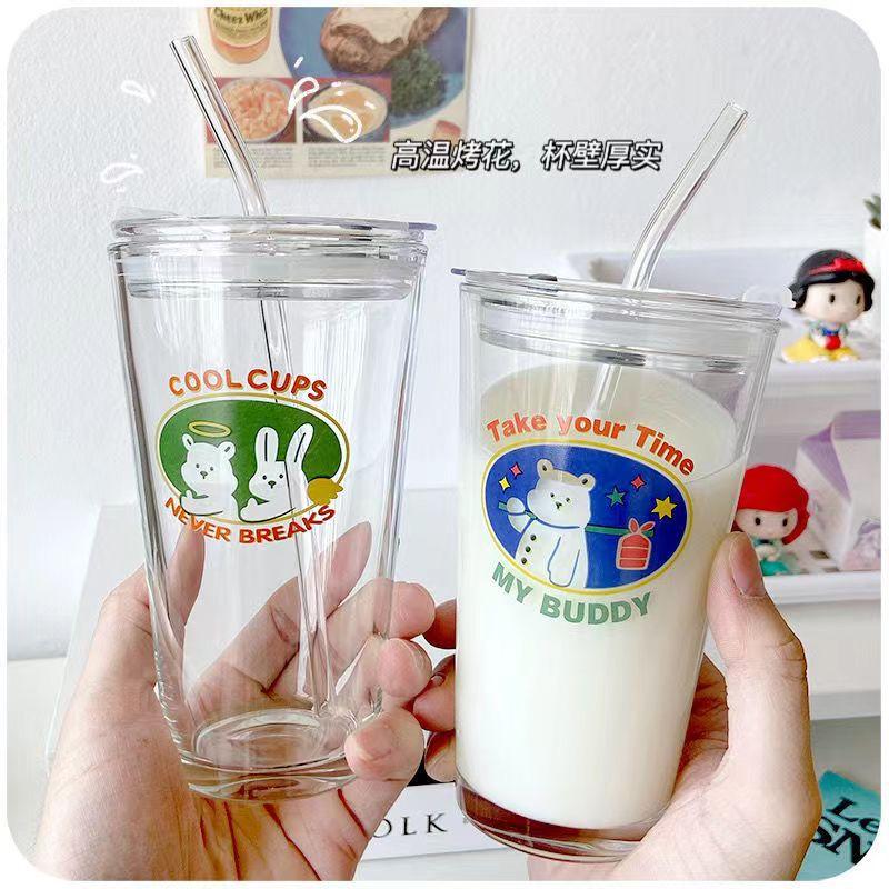 Taza de agua de verano para mujer de vidrio de paja de alto valor, gran capacidad, transparente con tapa, linda taza de café, nuevo estilo