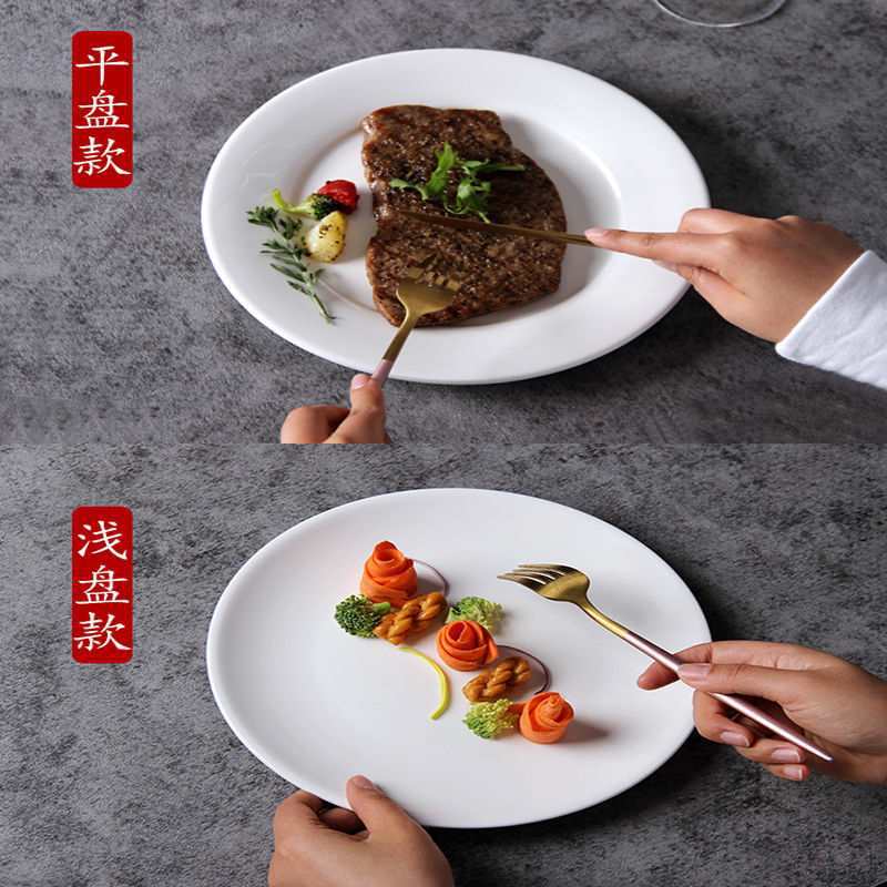 Plato para Bistec Cerámico Redondo Estilo Occidental Plato Blanco Plano Plato para Hogar Vajilla