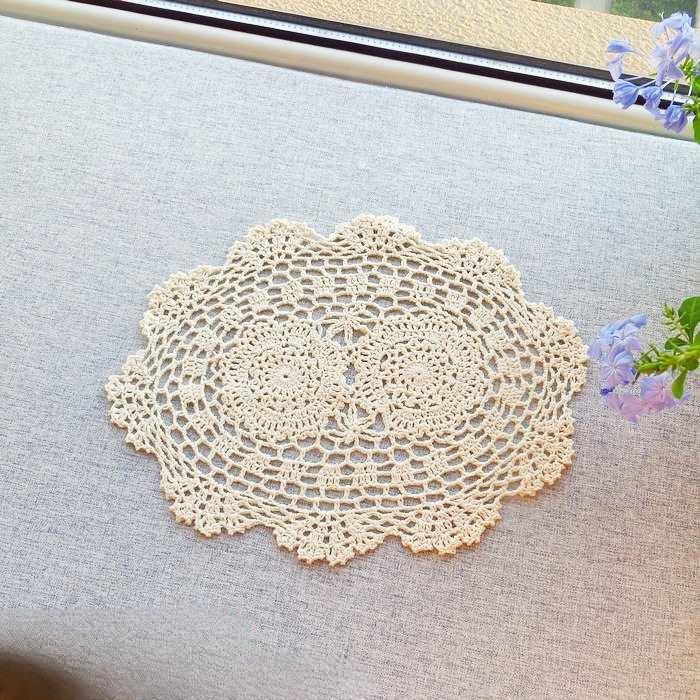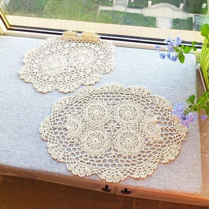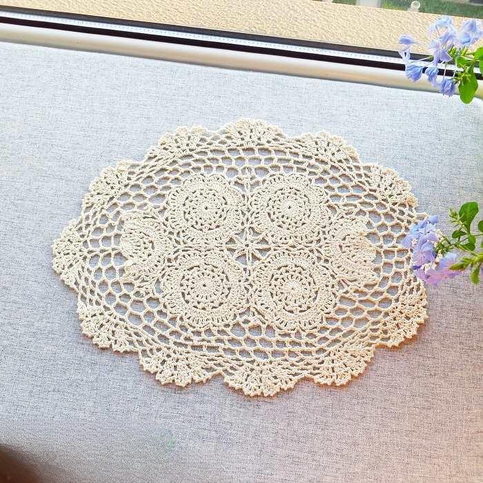 Mantel individual de flor de ganchillo hecho a mano al por mayor tejido nostálgico vintage pastoral accesorios para sesión de fotos tapete de mesa decorativo ovalado
