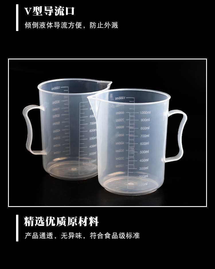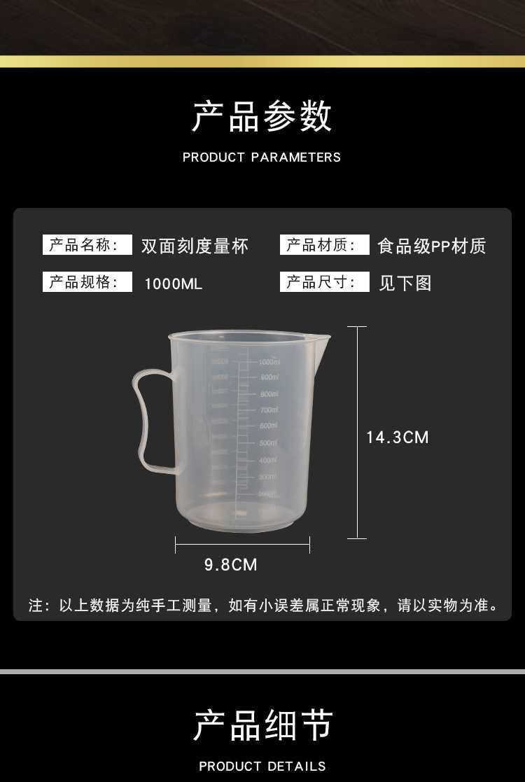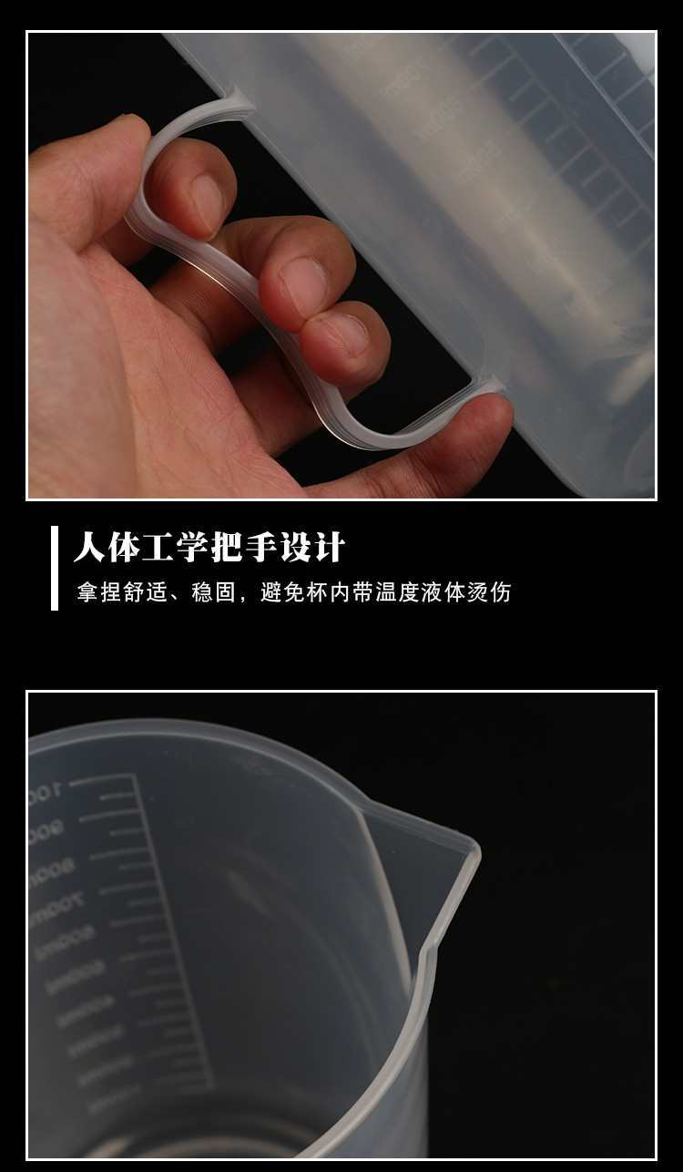 Vaso medidor de plástico de 1000 ml al por mayor, vaso medidor para hornear DIY, vaso con escala de PP, 1 L, cinturón grueso con escala, experimento