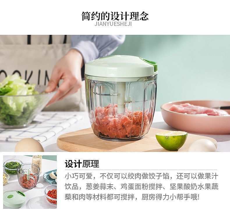 Picadora de carne manual para el hogar, picador pequeño de tracción, mezclador de chiles, relleno para dumplings, ajo prensado, cocina