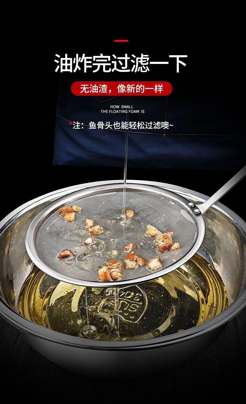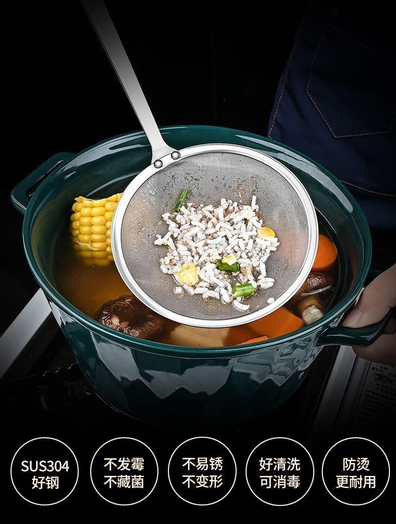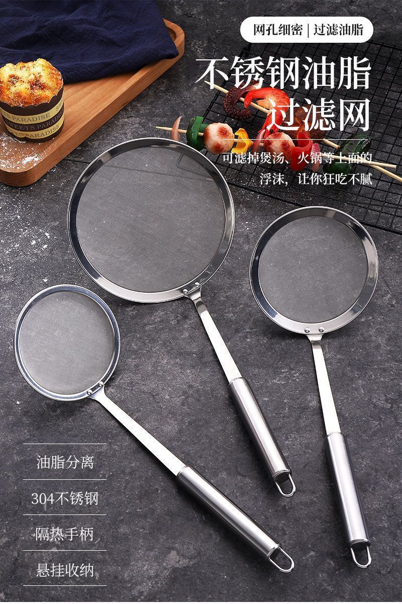Colador de cocina de acero inoxidable 304, colador, colador, colador, cuchara para aceite, cuchara para espuma, cuchara para espumar, colador de malla densa