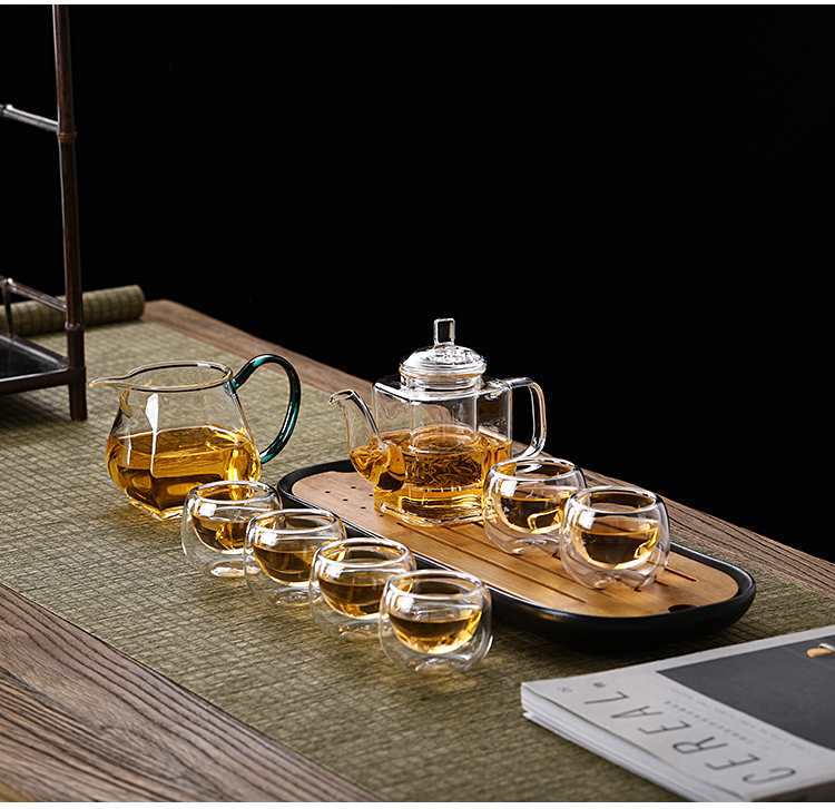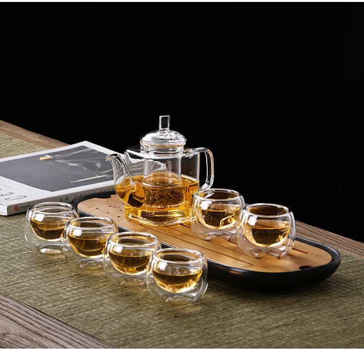 Compra Tetera al por mayor juego de té para el hogar con filtro vidrio resistente al calor filtro tetera pequeña tetera transparente tetera té negro al por mayor en Joom.pro