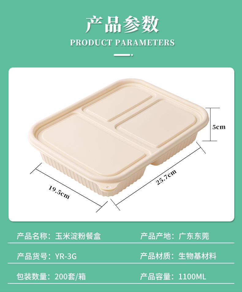 900ml three-compartment corn starch degradable lunch box 200 sets/box whole box postage