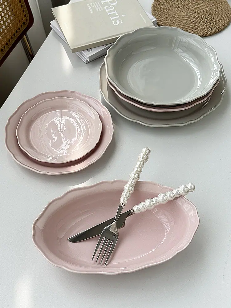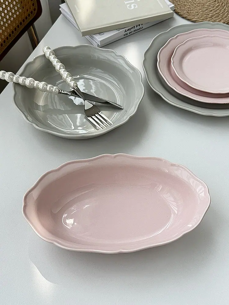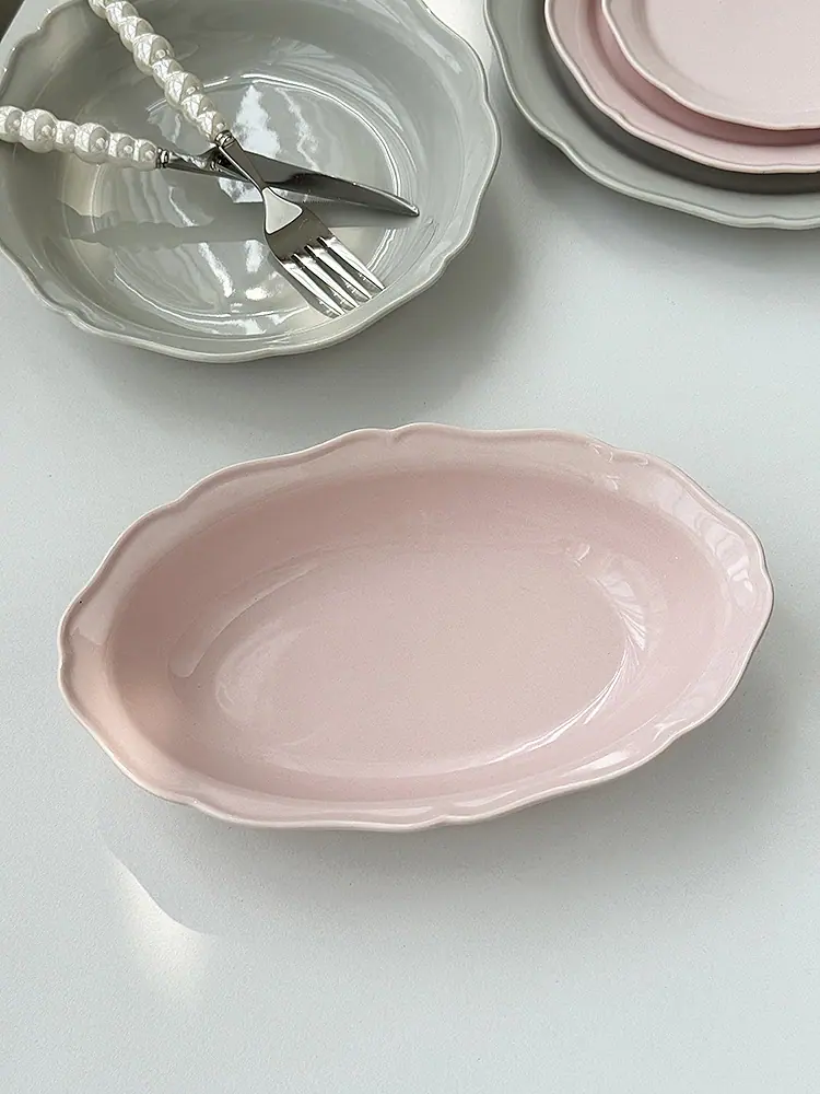 Compra Vajilla de Cerámica Estilo Coreano Estilo Ins Color Sólido Hogar Plato para Verduras Plato Hondo Plato Ovalado para Pescado Plato de Encaje Plato Diario al por mayor en Joom.pro
