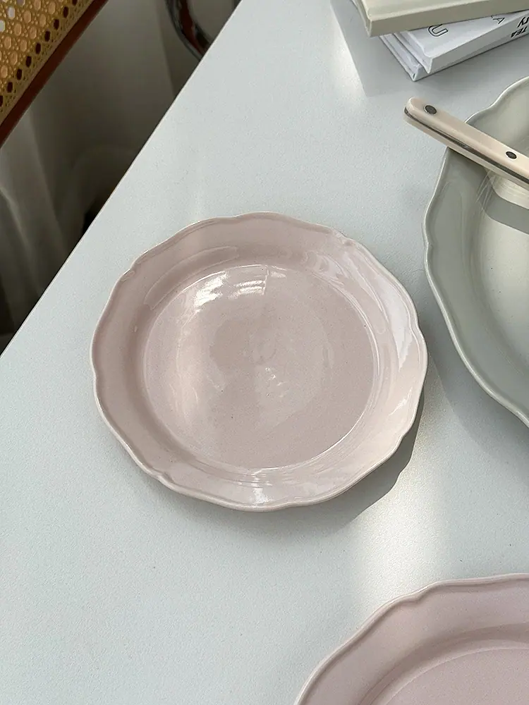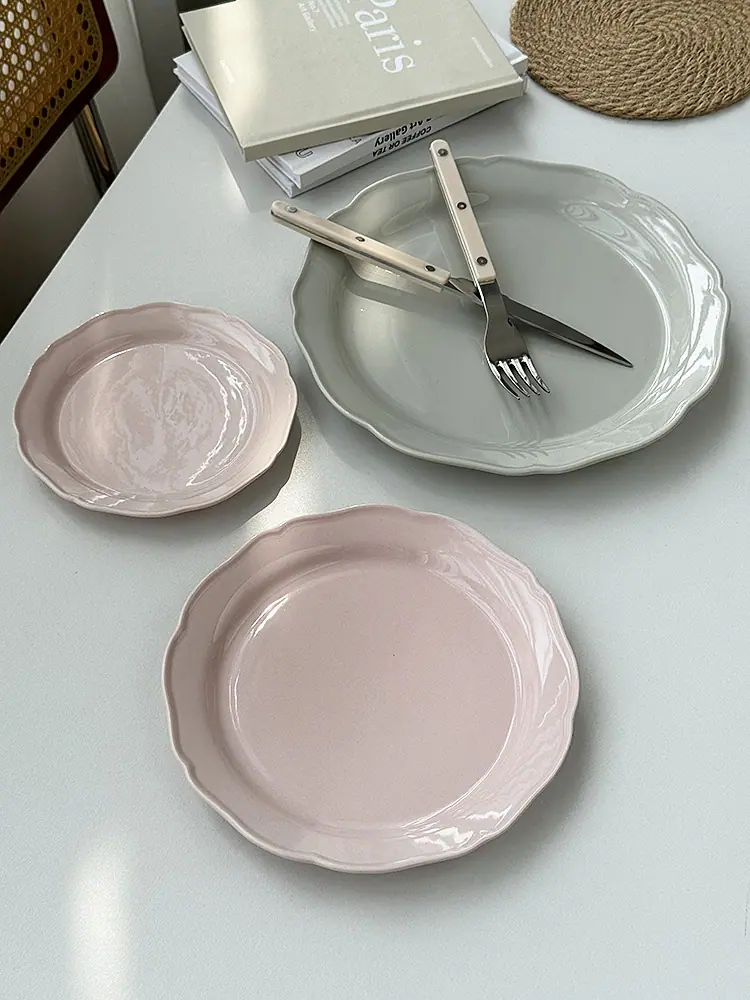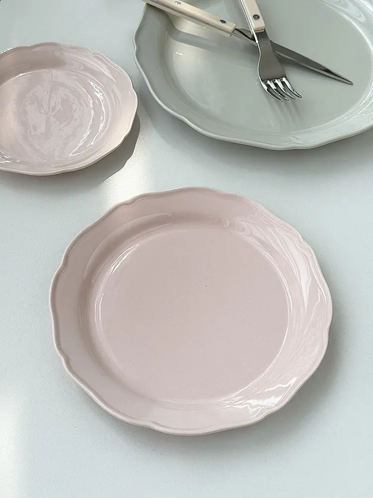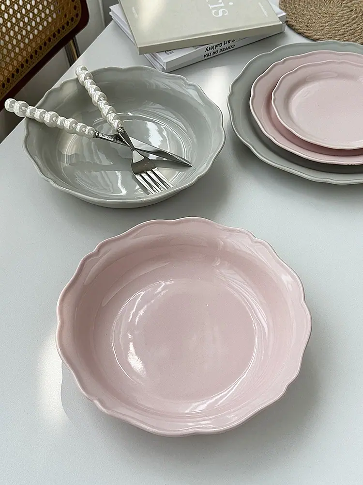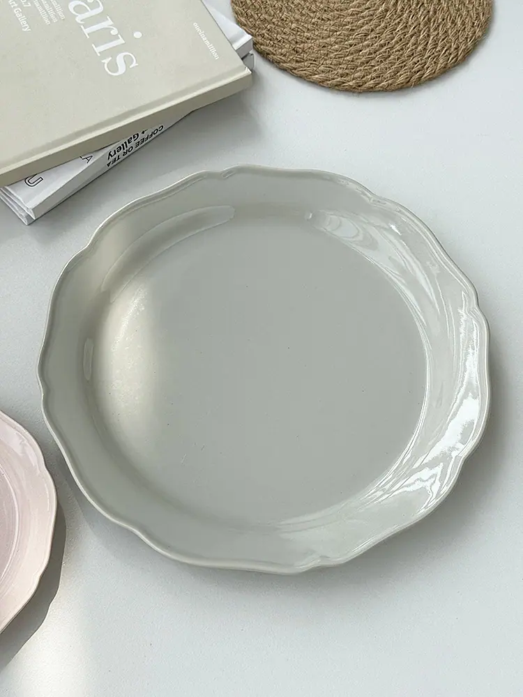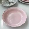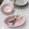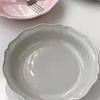 Vajilla de Cerámica Estilo Coreano Estilo Ins Color Sólido Hogar Plato para Verduras Plato Hondo Plato Ovalado para Pescado Plato de Encaje Plato Diario