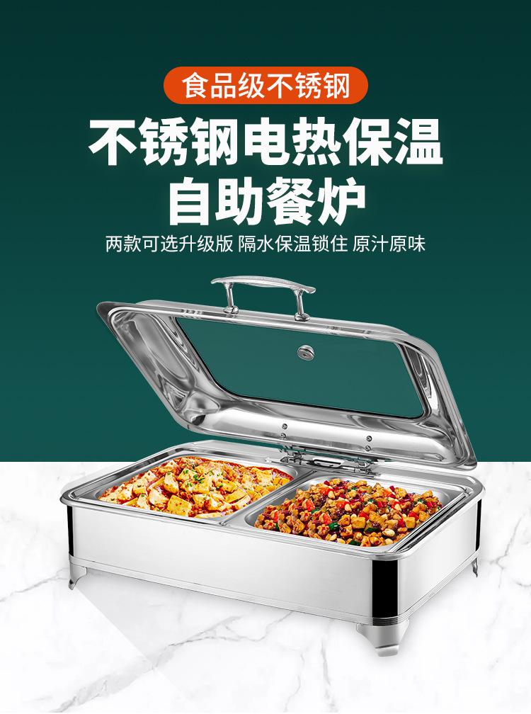 Horno de buffet eléctrico con calefacción y conservación del calor. Horno de restaurante con tapa visual. Horno de buffet para hotel. Horno de desayuno de acero inoxidable. Utensilios de cocina con conservación del calor.
