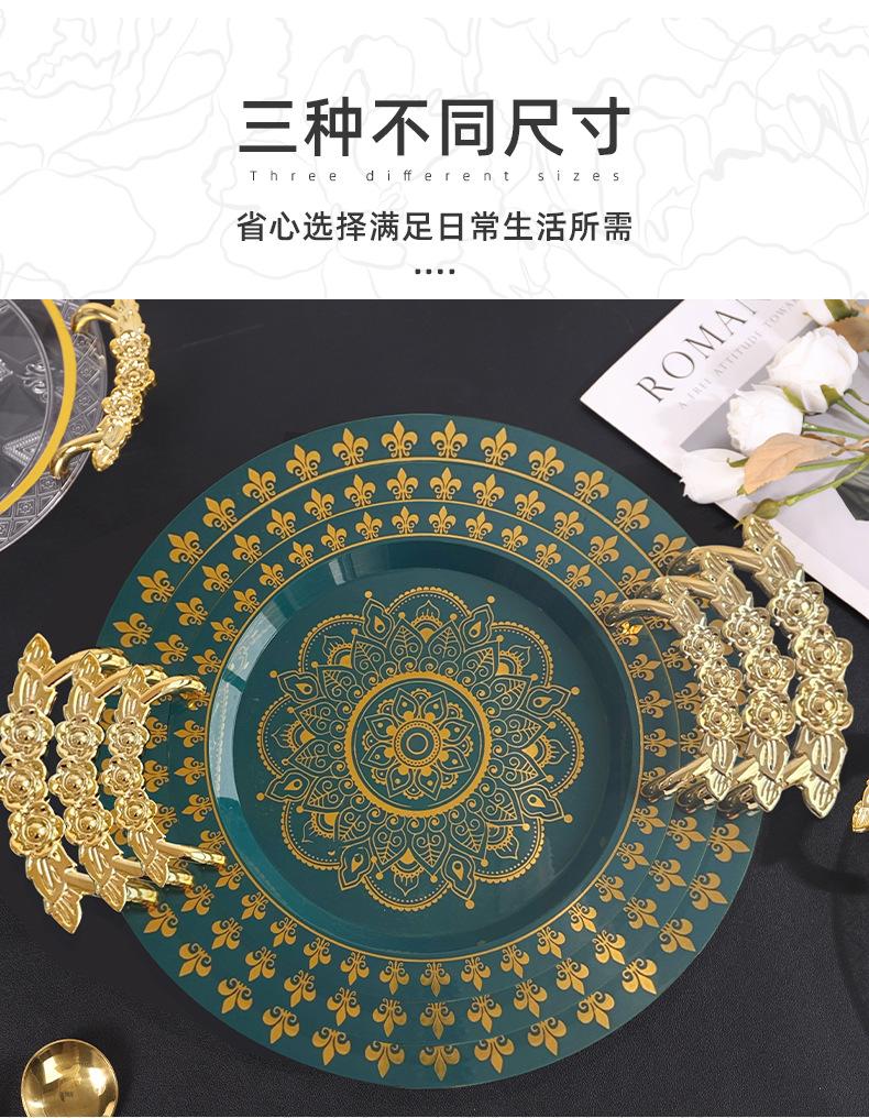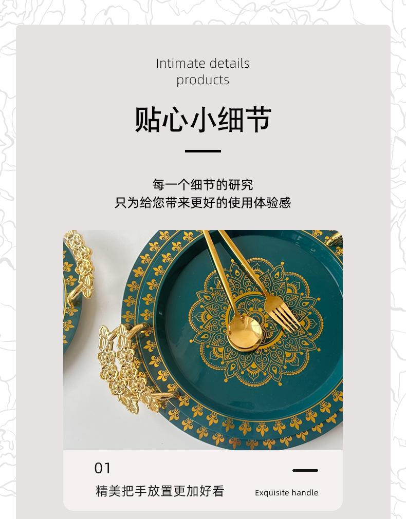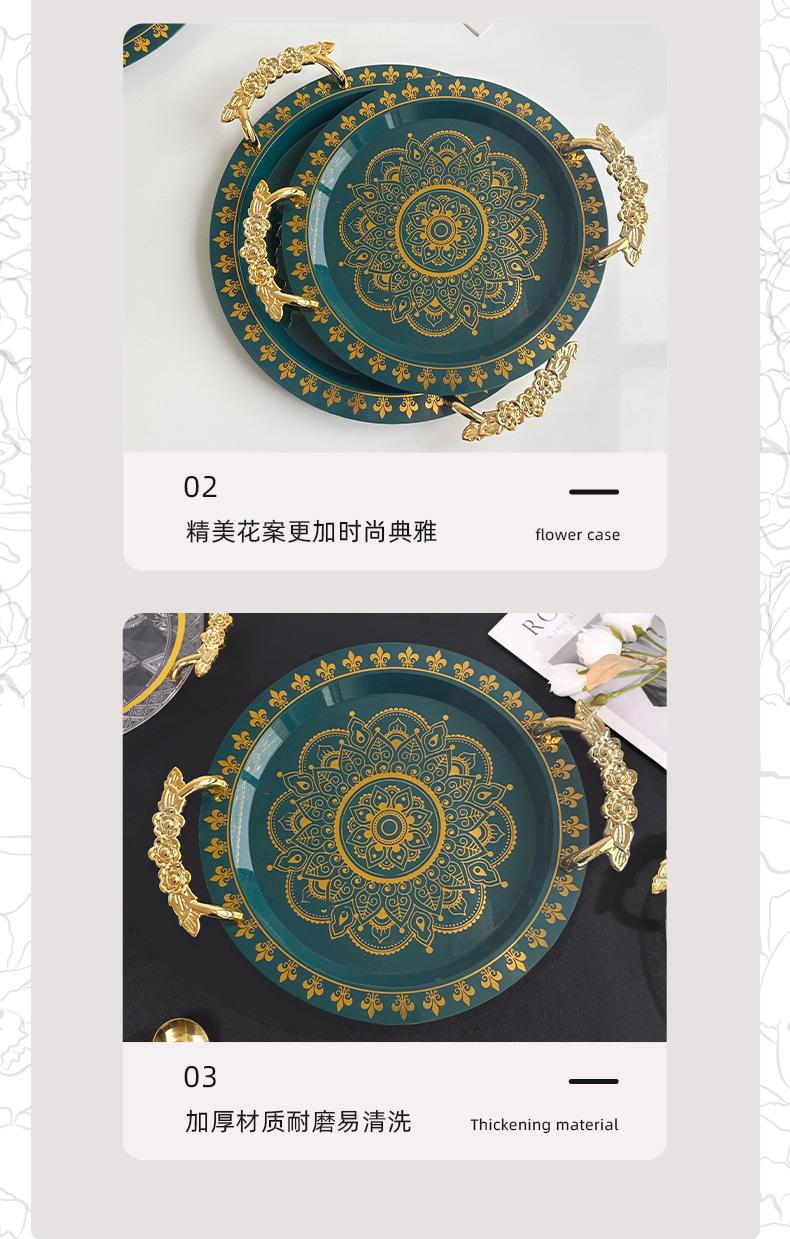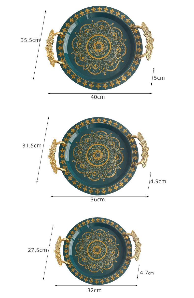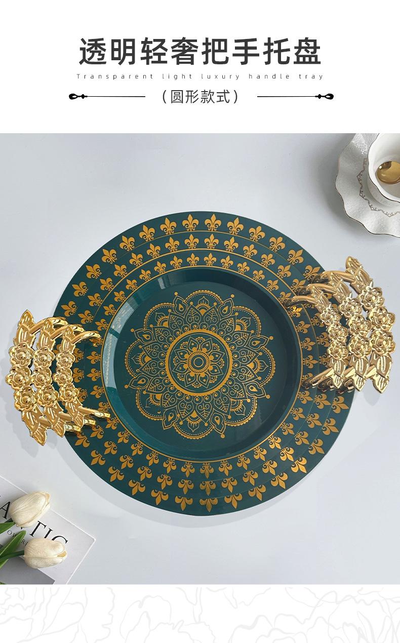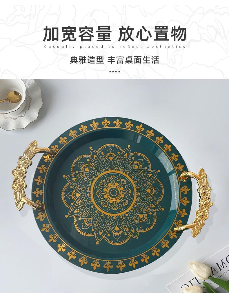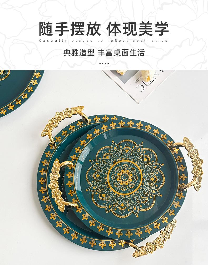 Compra Bandeja redonda bronceada verde fabricantes mayoreo bandeja de frutas de lujo ligero nórdico bandeja de té bandeja alta de hotel plato europeo al por mayor en Joom.pro