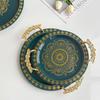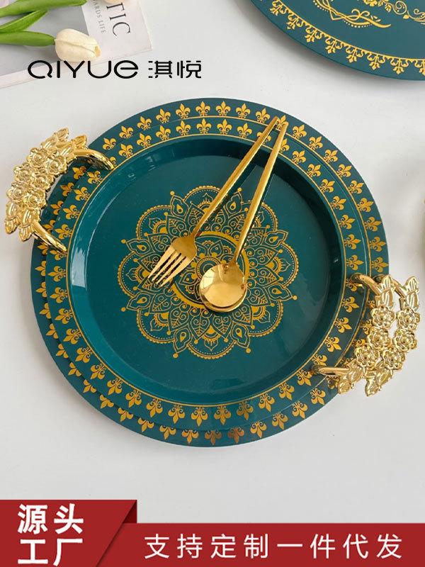 Bandeja redonda bronceada verde fabricantes mayoreo bandeja de frutas de lujo ligero nórdico bandeja de té bandeja alta de hotel plato europeo
