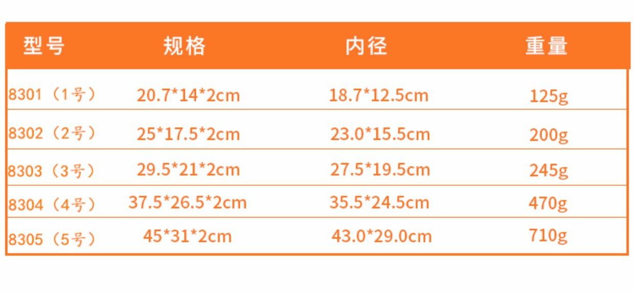 8301 white (no. 1) 20.7*14.5, 8302 white (no. 2) 25*17.5, 8303 white (no. 3) 29.5*21, 8304 white (no. 4) 37.5*...