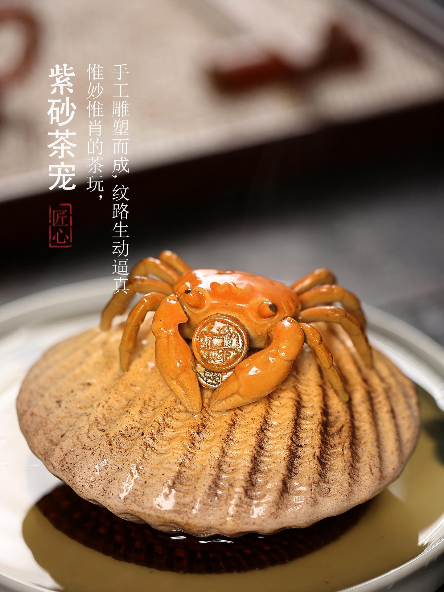 Yixing Mineral Crudo Adornos para Mascota de Té Juego de Té que Cambia de Color para Hacer Fortuna Cangrejos de todas direcciones para hacer dinero y arena púrpura rica creativo sólido