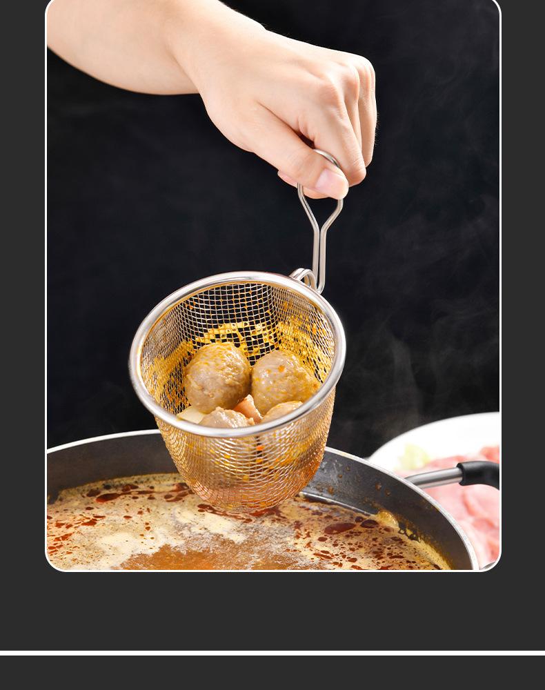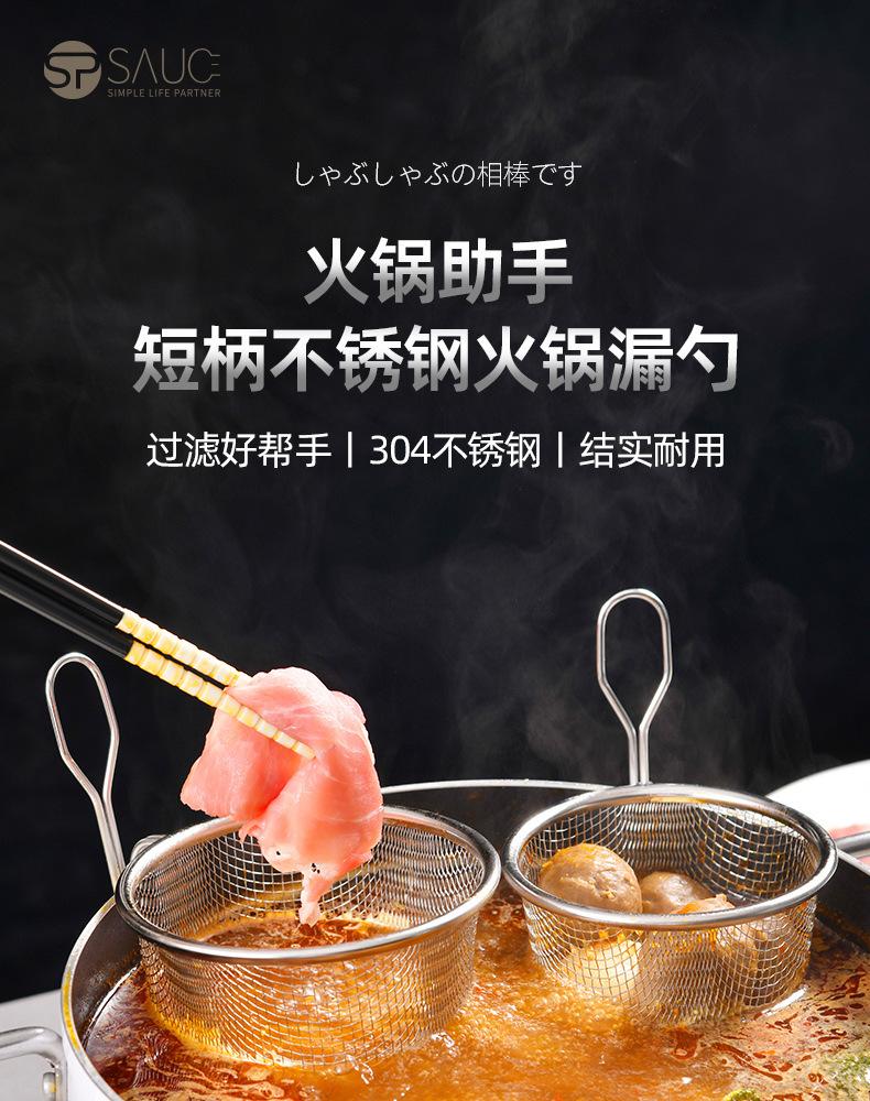 Colador para olla caliente de mango corto estilo japonés para el hogar, colgante, especial para fideos picantes de pescado, acero inoxidable 304, colador de malla fina