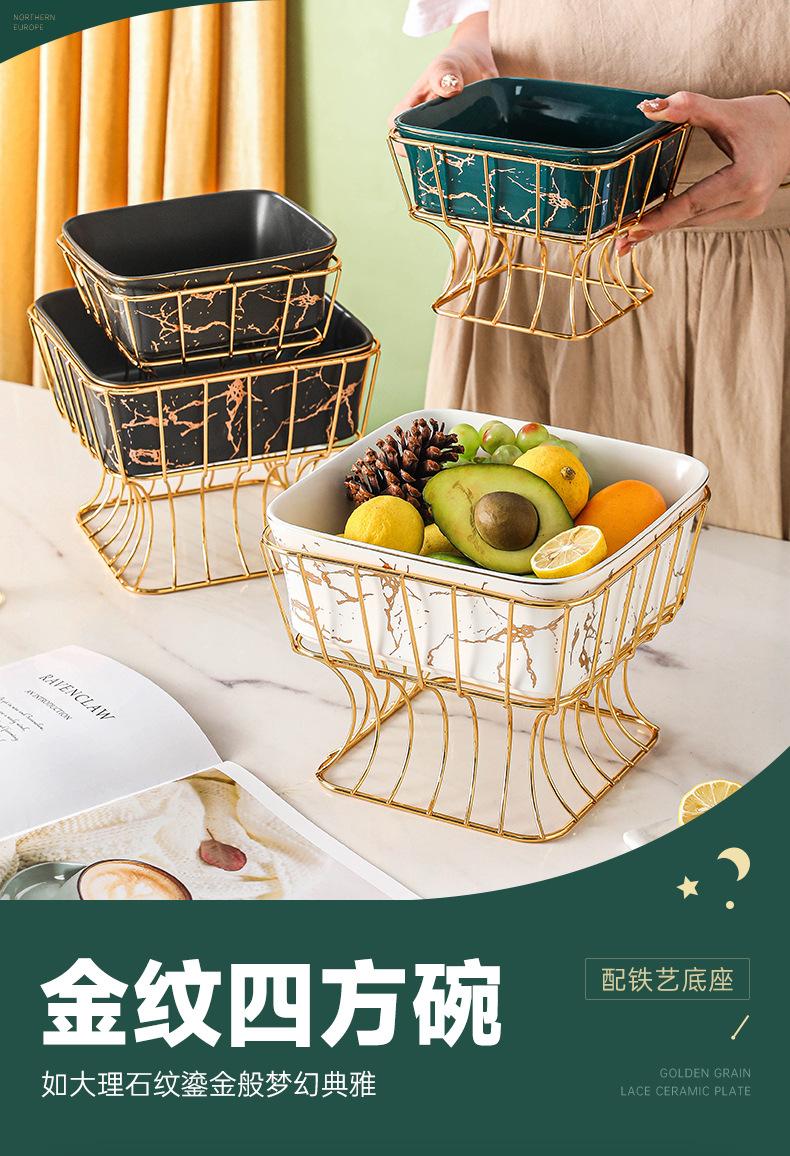 Compra Tazón de cerámica de mármol dorado de lujo ligero estilo nórdico tazón cuadrado para ensalada sentido del diseño tazón de fruta para el hogar venta al por mayor de fábrica al por mayor en Joom.pro