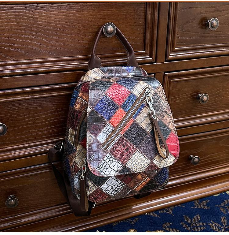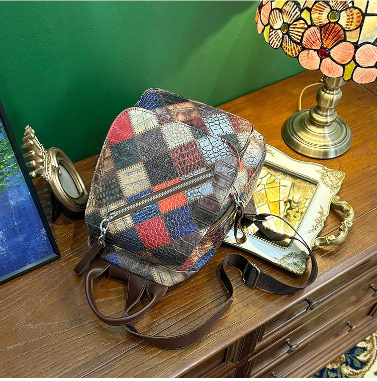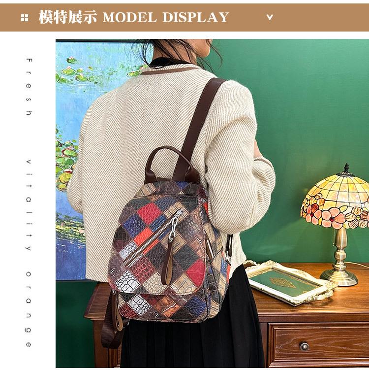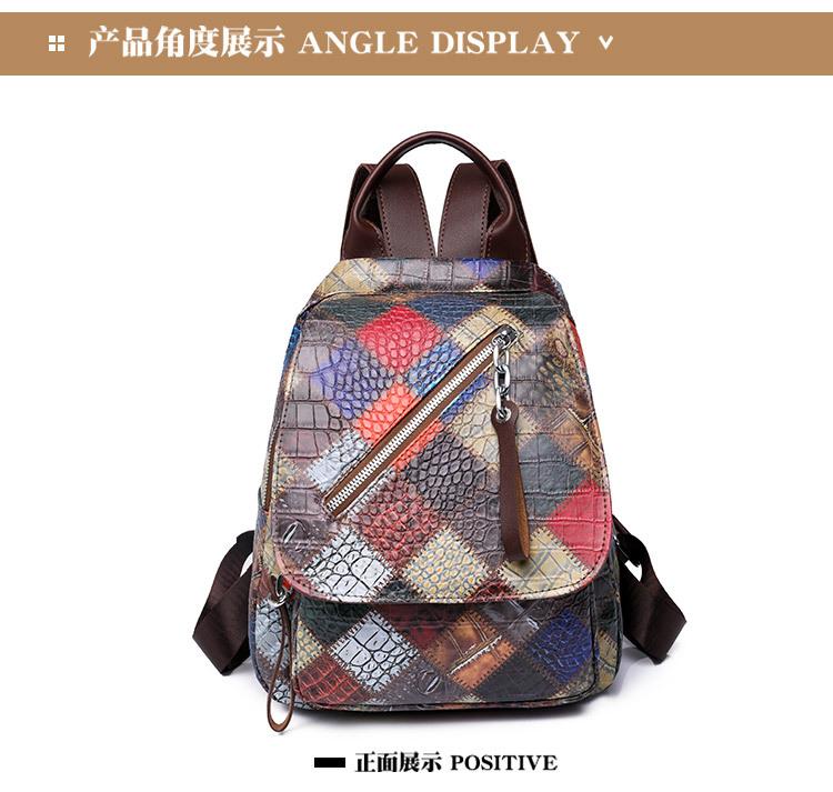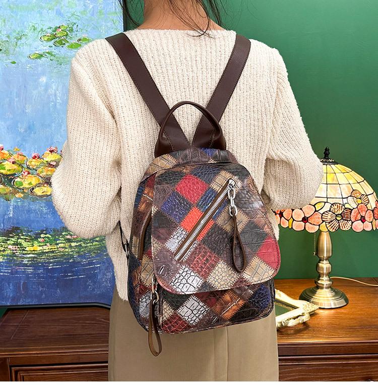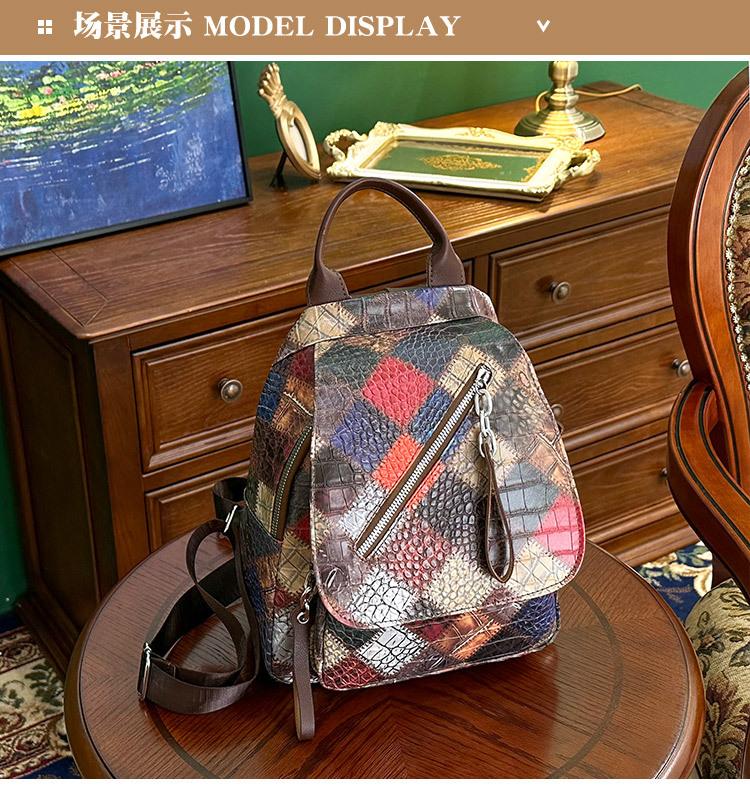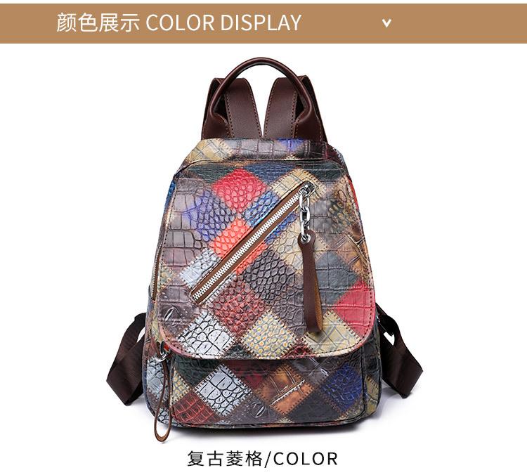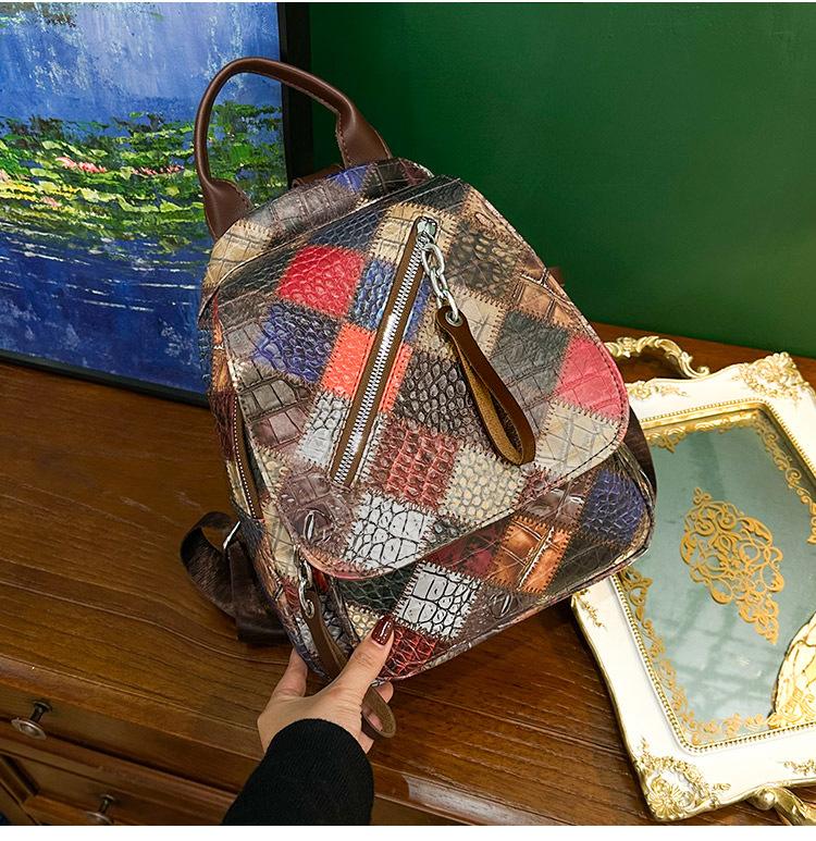 Mochila Transfronteriza para Mujer 2023 Nueva Moda Trendy Color Contrastante Mochila Escolar Pequeña Bolsa de Viaje para Exterior Mochila de Cuero Suave Europea y Americana