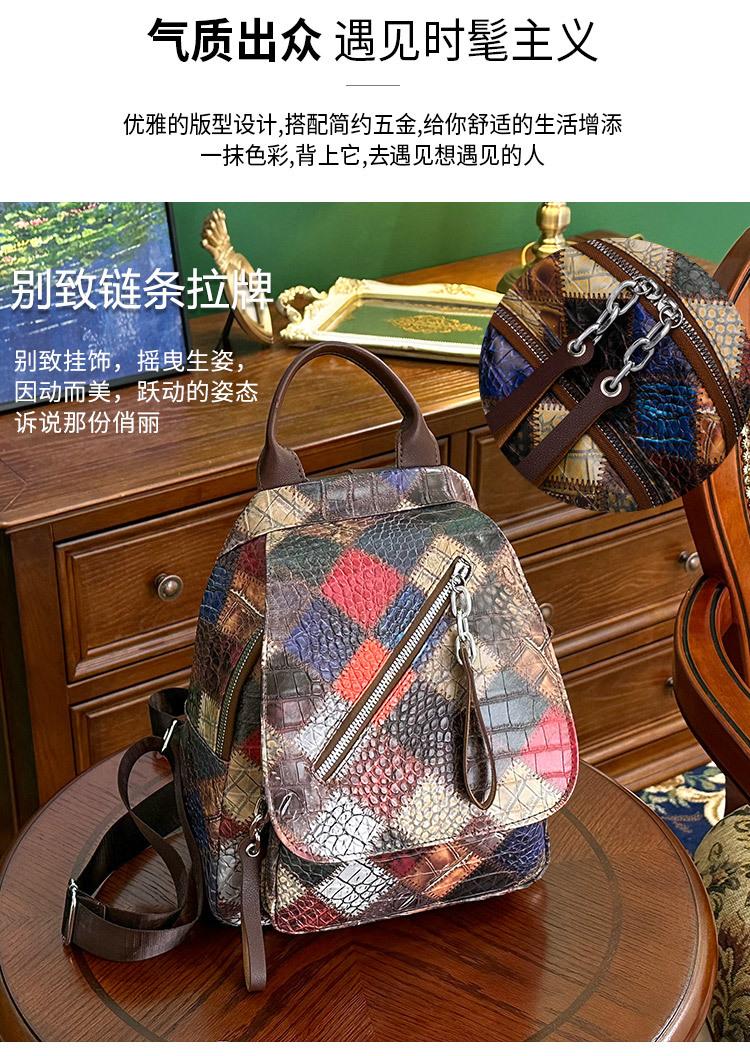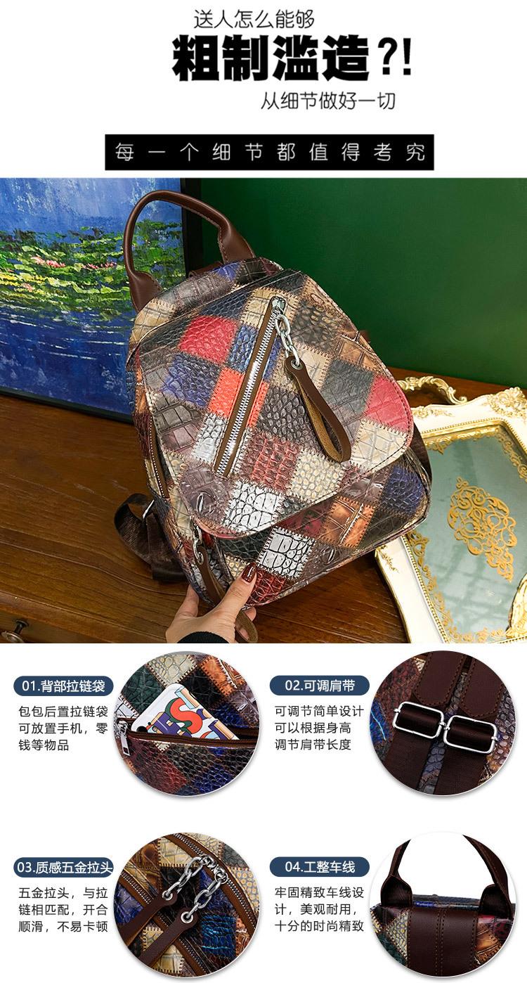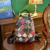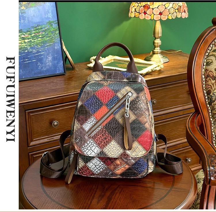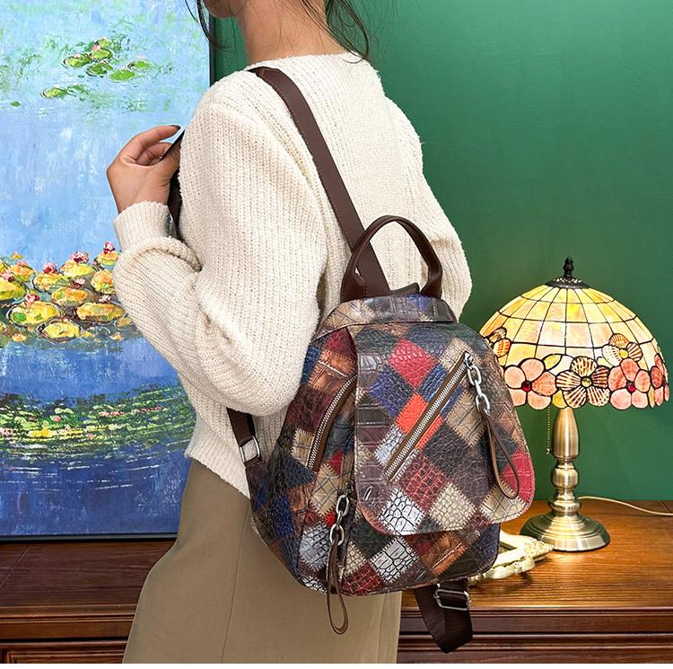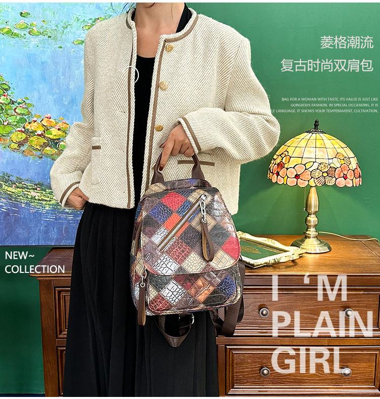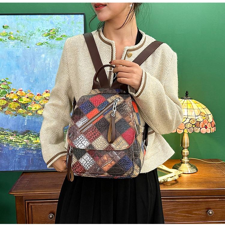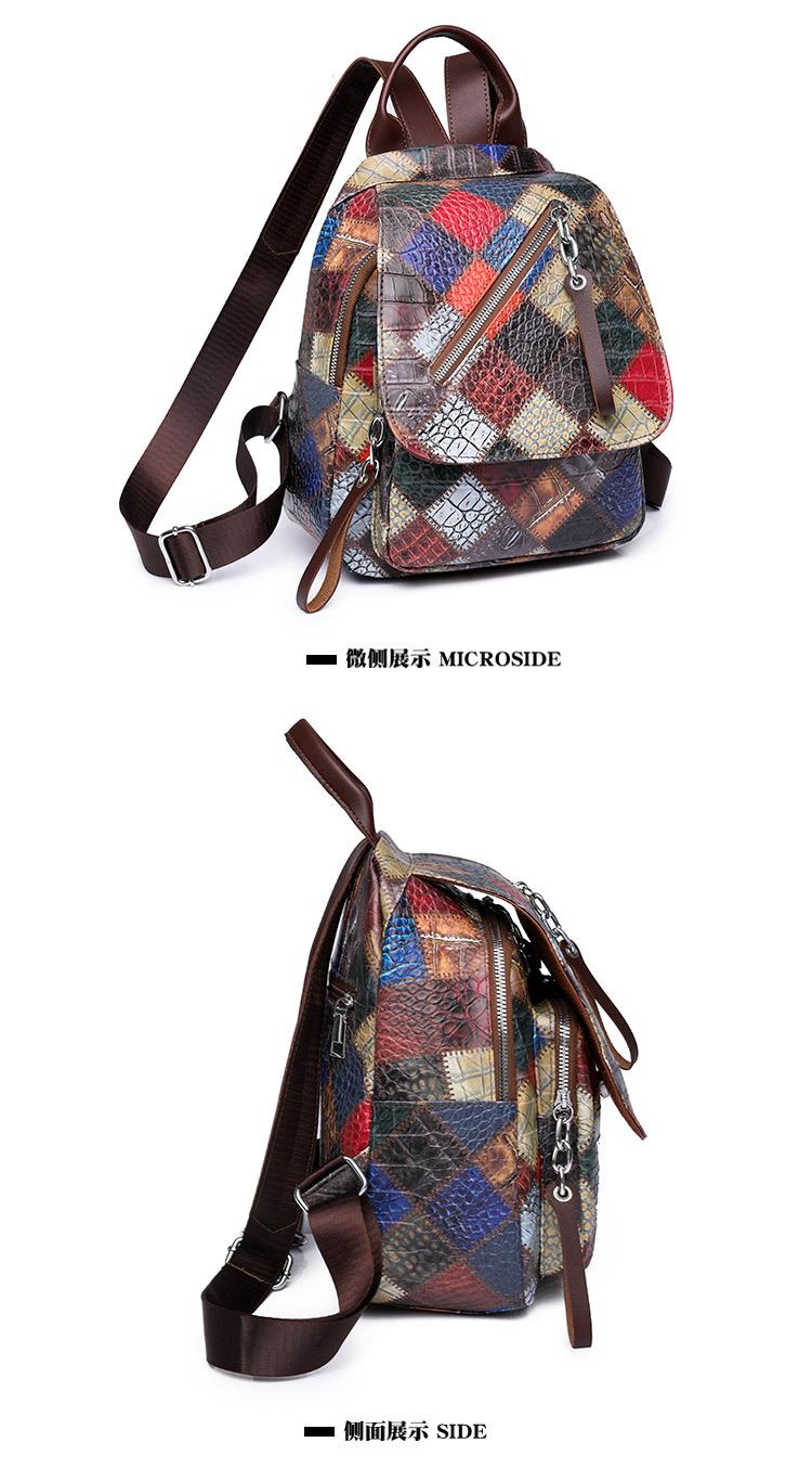 Mochila Transfronteriza para Mujer 2023 Nueva Moda Trendy Color Contrastante Mochila Escolar Pequeña Bolsa de Viaje para Exterior Mochila de Cuero Suave Europea y Americana