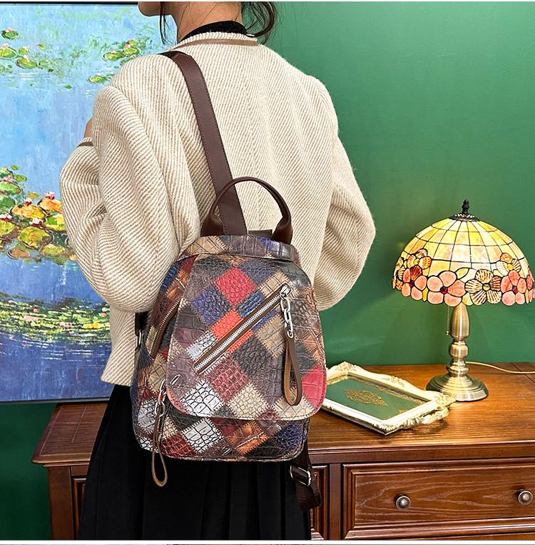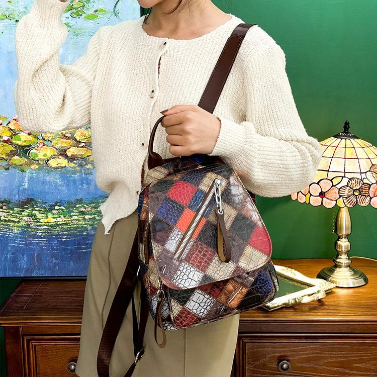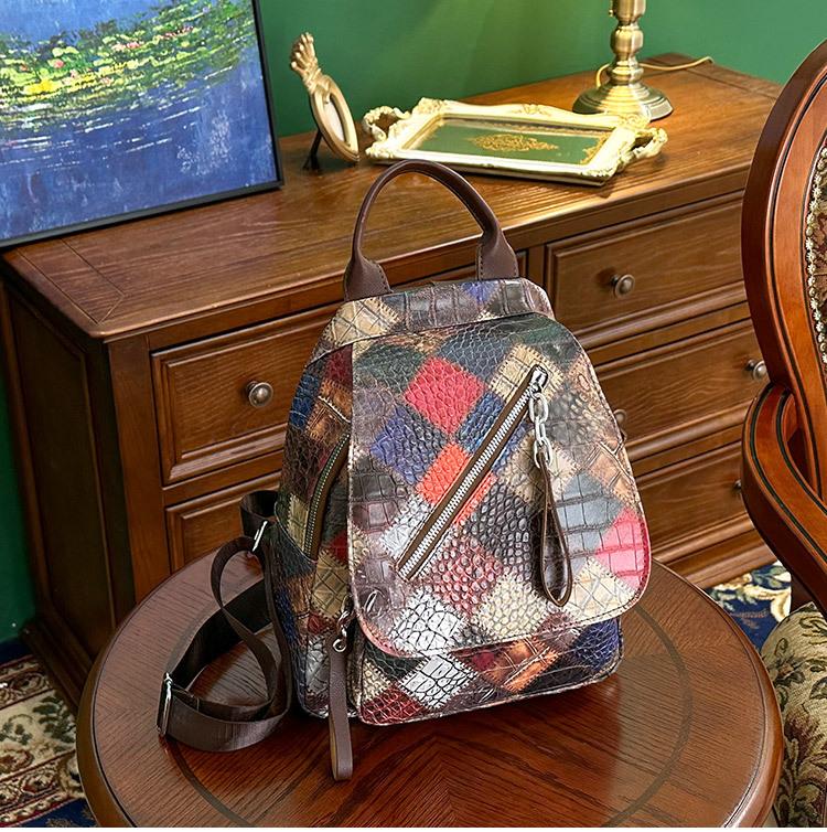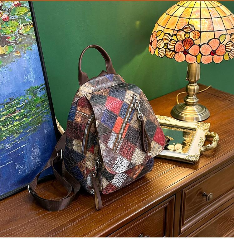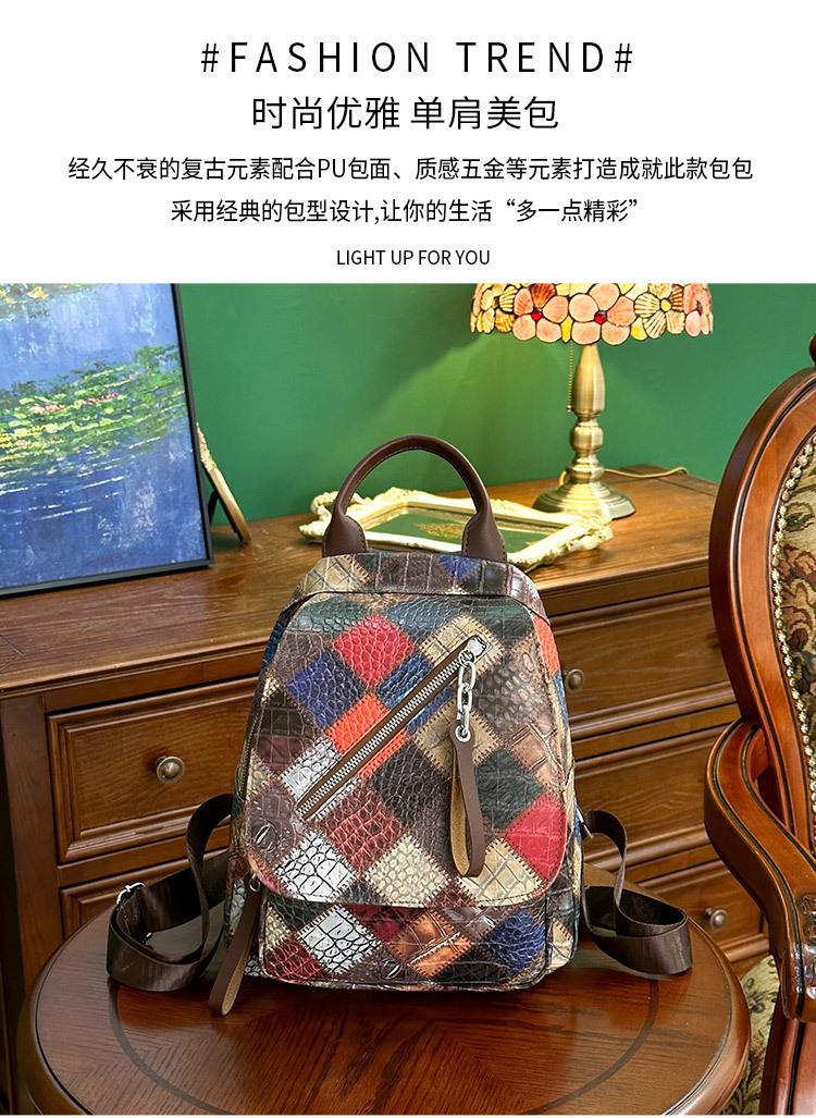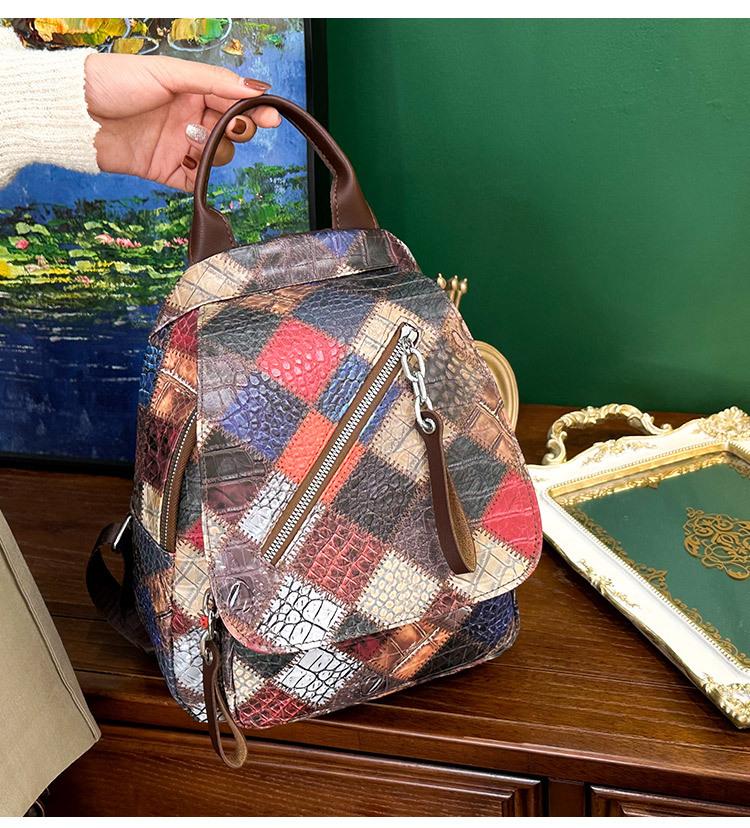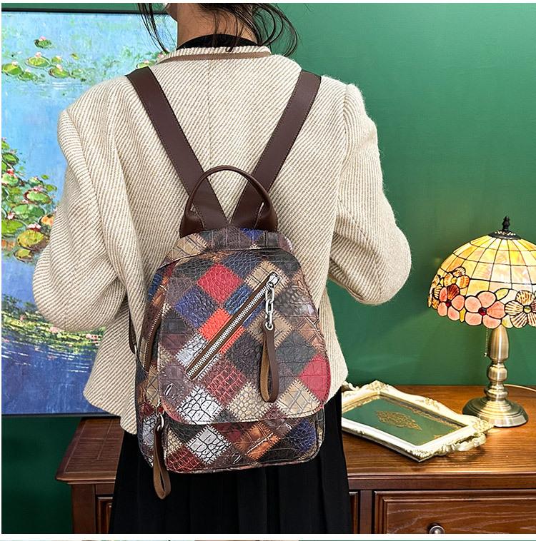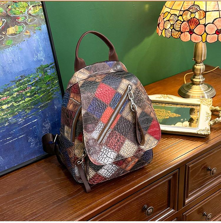 Mochila Transfronteriza para Mujer 2023 Nueva Moda Trendy Color Contrastante Mochila Escolar Pequeña Bolsa de Viaje para Exterior Mochila de Cuero Suave Europea y Americana