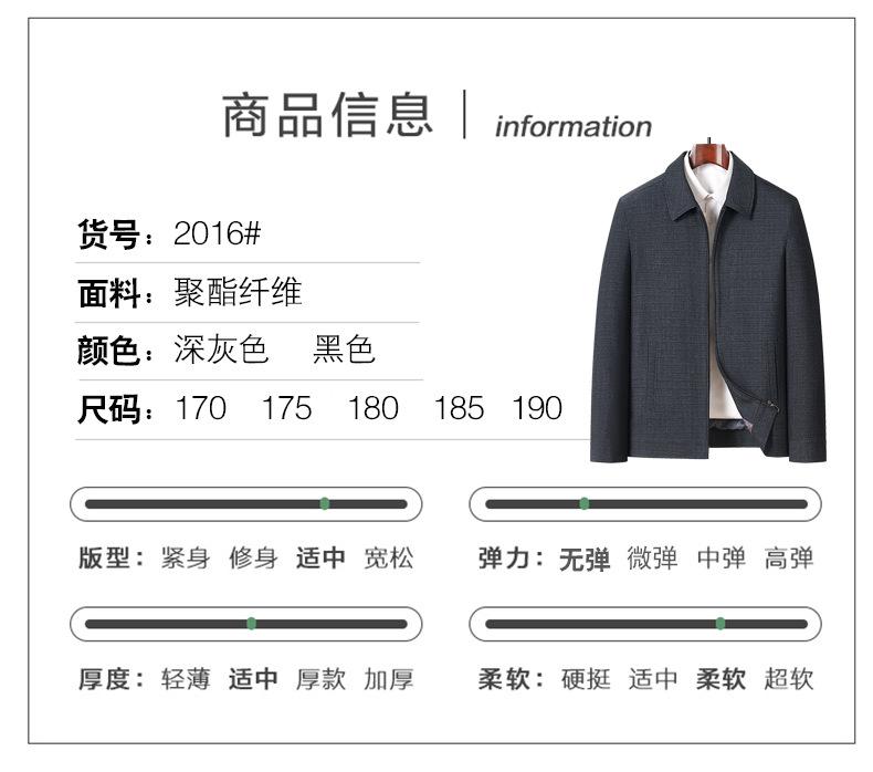 Chaqueta de primavera y otoño para hombre de mediana edad, informal, de negocios, con solapa y cremallera, abrigo superior