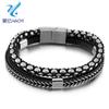 Pulsera de cuero magnético de acero de titanio europeo y americano para hombre, pulsera de acero inoxidable de cuero tejido de tres capas, correa de mano vintage