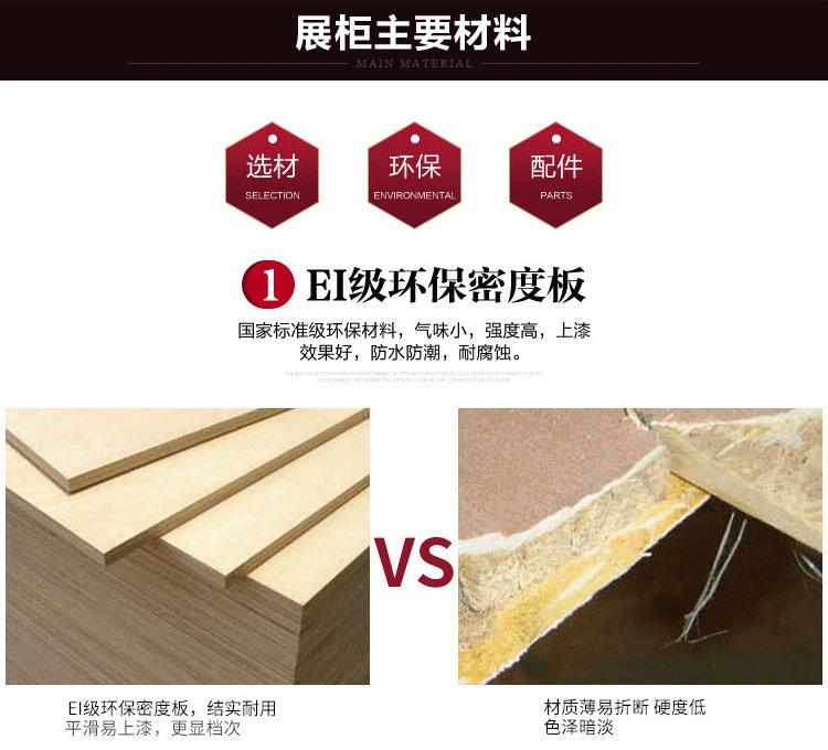 Los accesorios de hardware se combinan con madera, y el cableado del circuito interno de la vitrina se basará en los requisitos de aceptación del centro comercial.