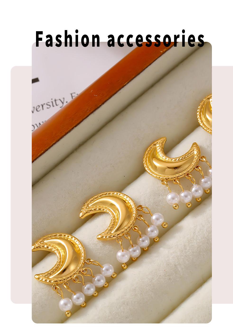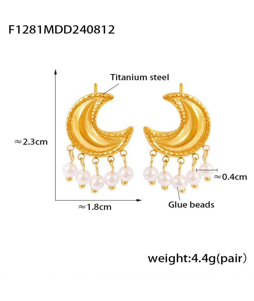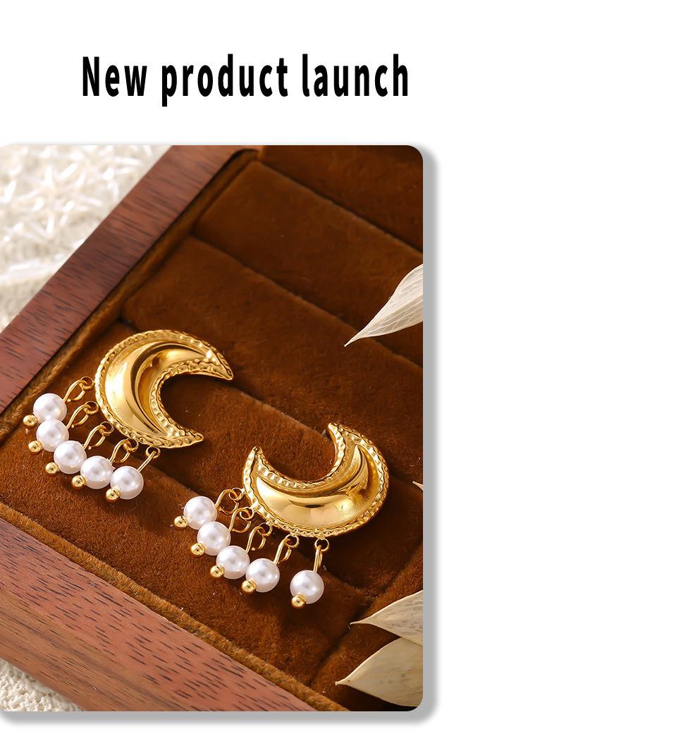 Compra Pendientes de acero de titanio con borlas de luna, estilo europeo y americano, con perlas de imitación, geométricos irregulares y de nicho. al por mayor en Joom.pro