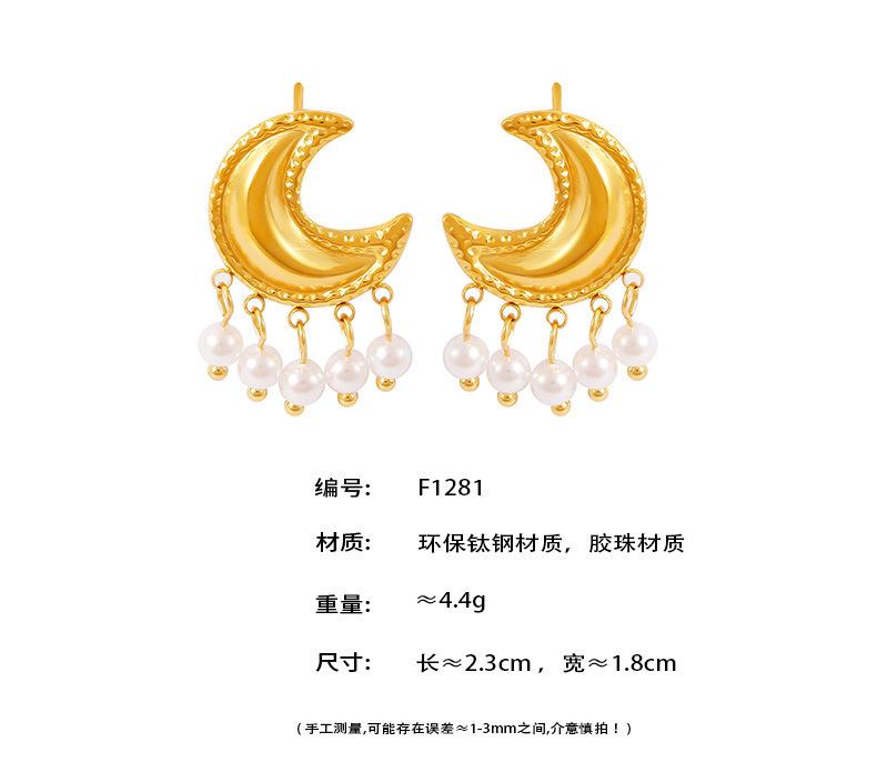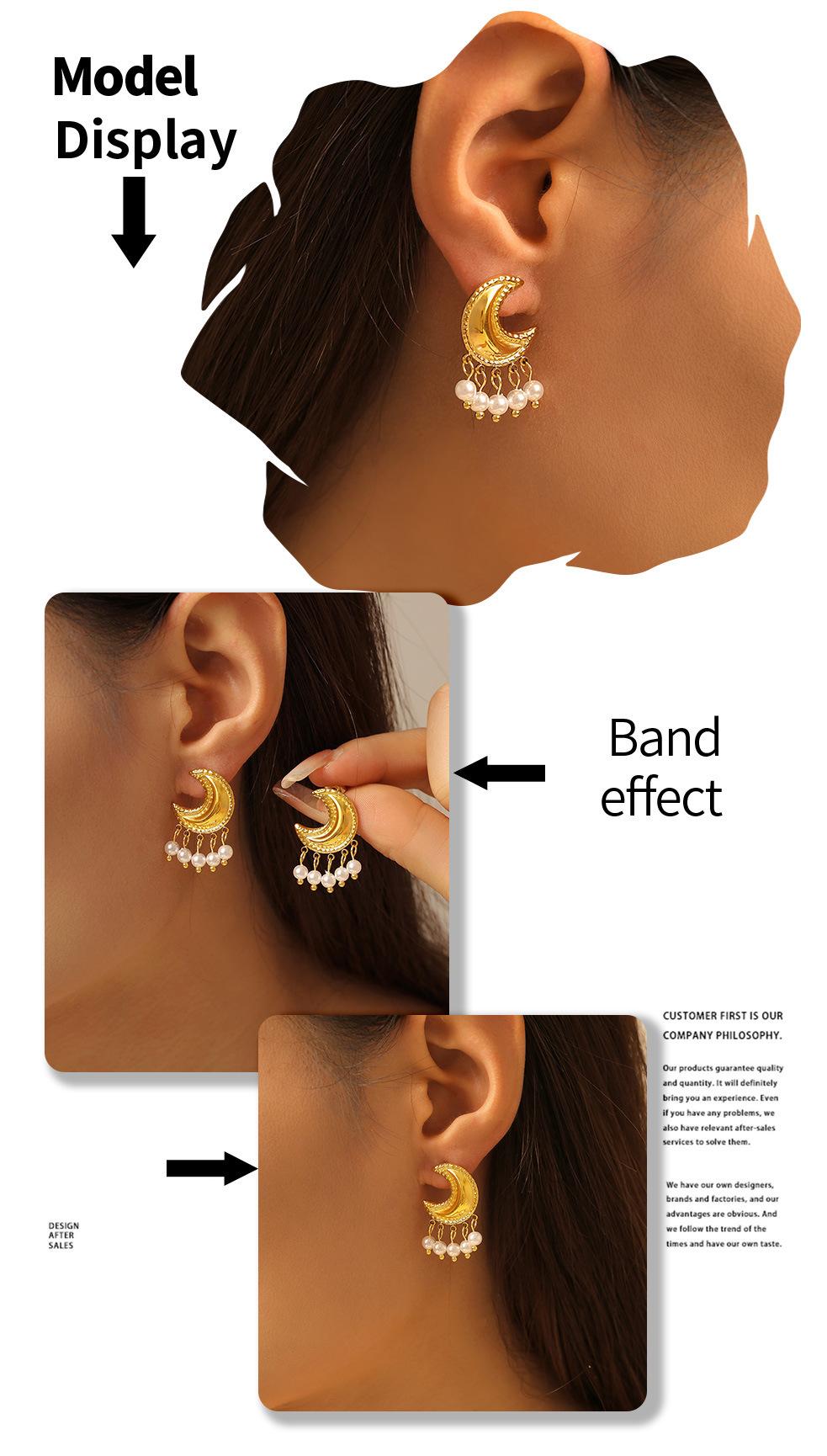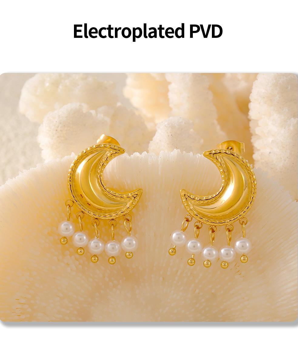 Compra Pendientes de acero de titanio con borlas de luna, estilo europeo y americano, con perlas de imitación, geométricos irregulares y de nicho. al por mayor en Joom.pro