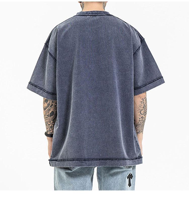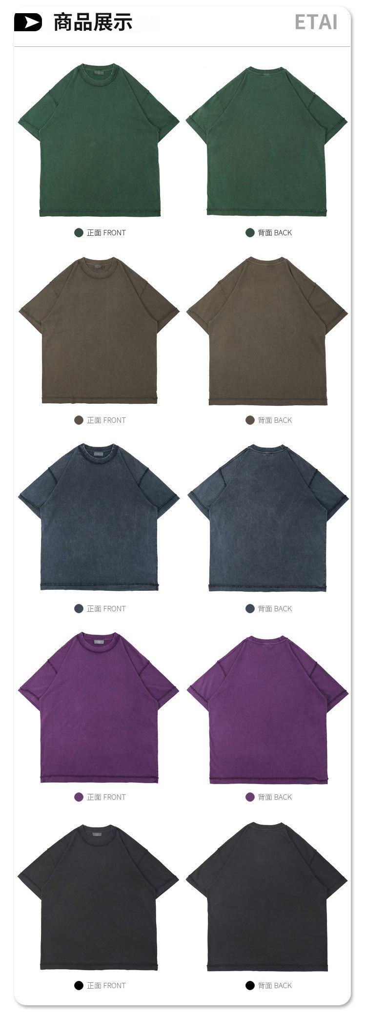 Etai Camiseta de Manga Corta para Hombre, Marca Juvenil de Moda, Color Puro Lavado Pesado, Tecnología de Coche Inversa, Versión Holgada, Hip-Hop, Versión Americana
