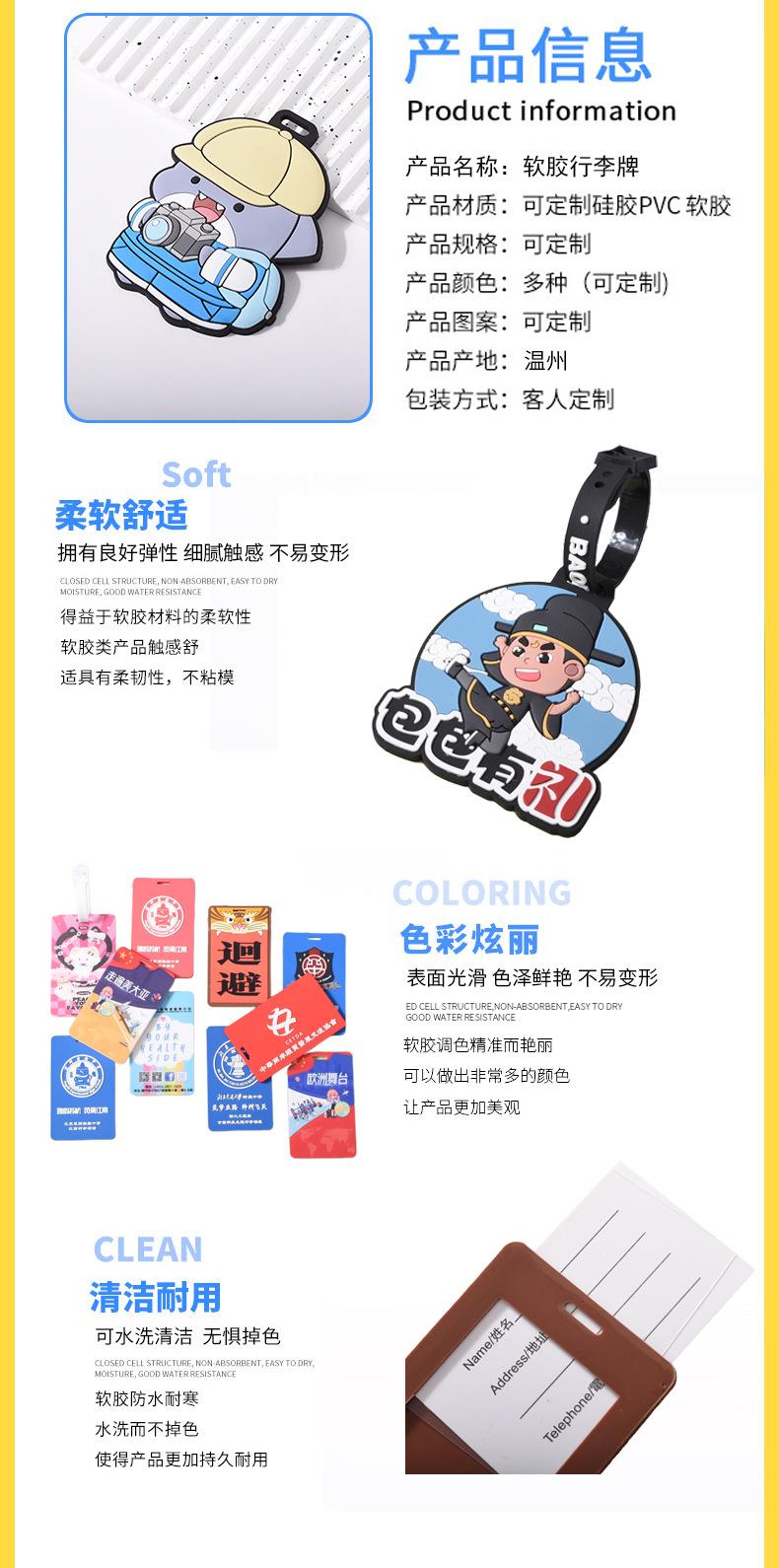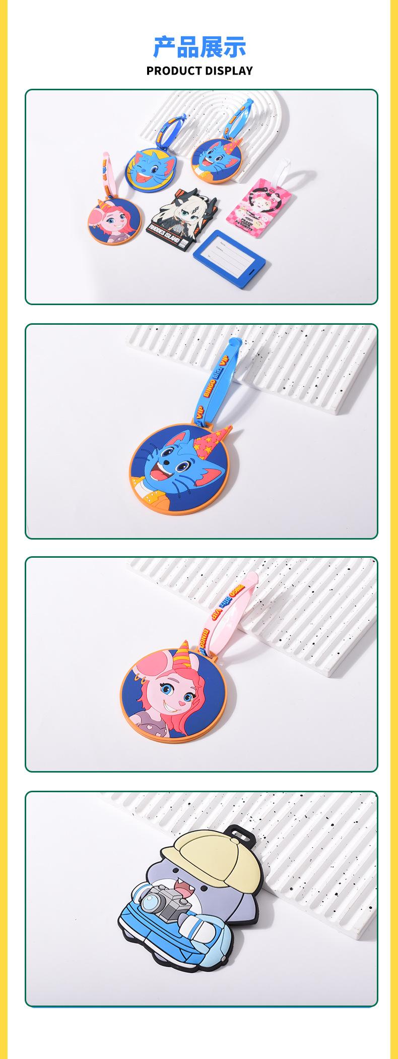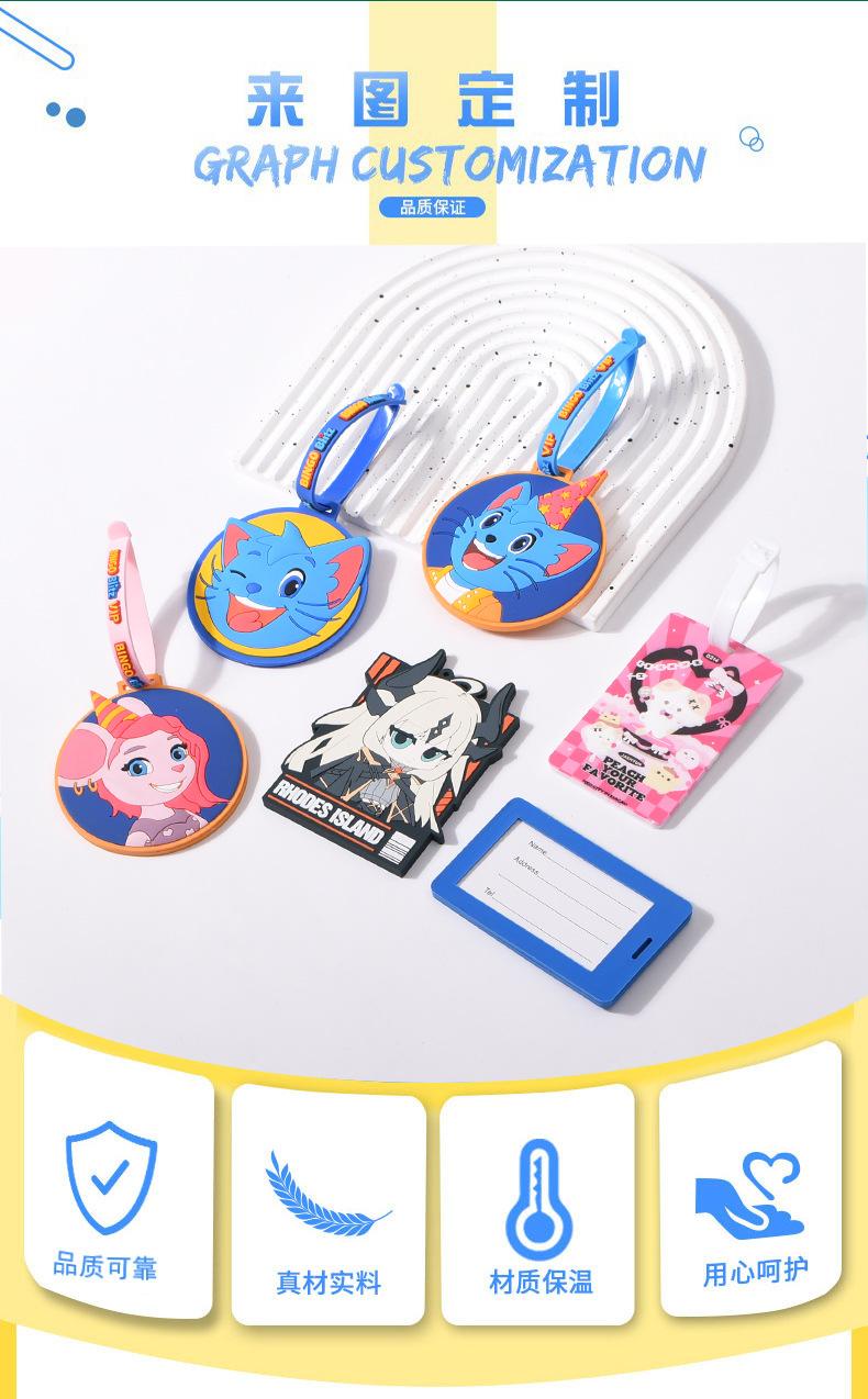 Etiqueta de equipaje de goma suave con dibujos animados, etiqueta de equipaje moldeada de una sola pieza personalizada, tarjeta de embarque, etiqueta de goma suave de PVC