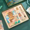 National style bamboo wood grain [sandalwood pen bookmark three-piece set] blue girdle gift box