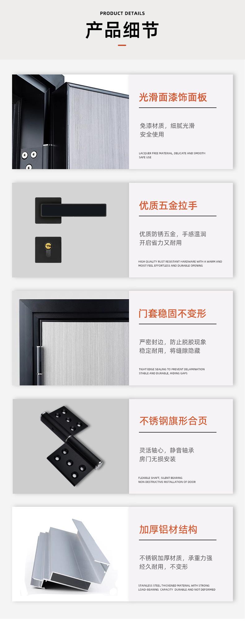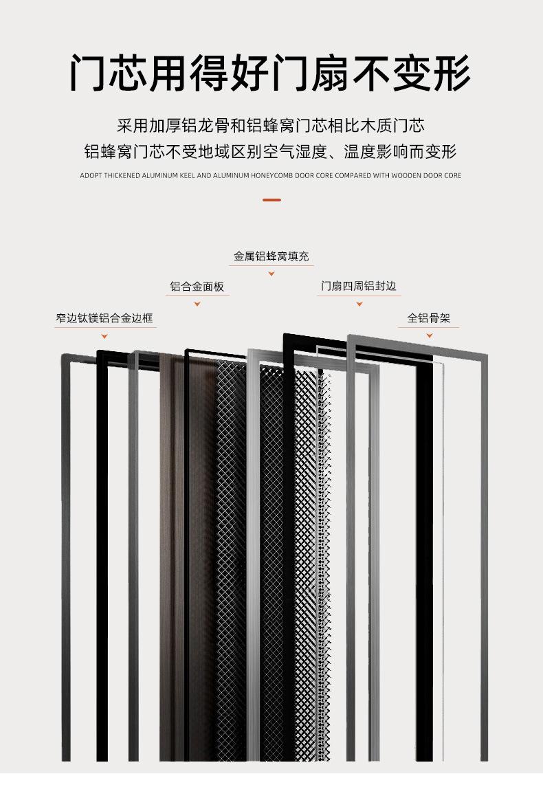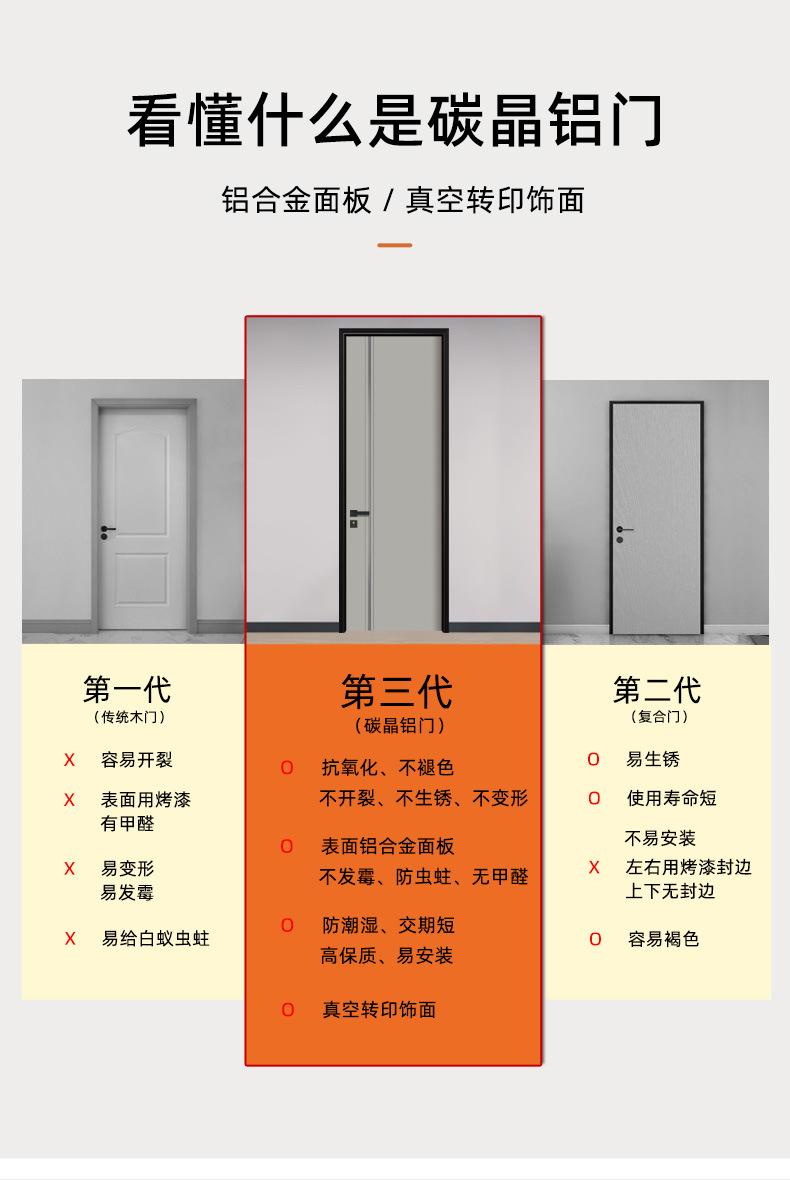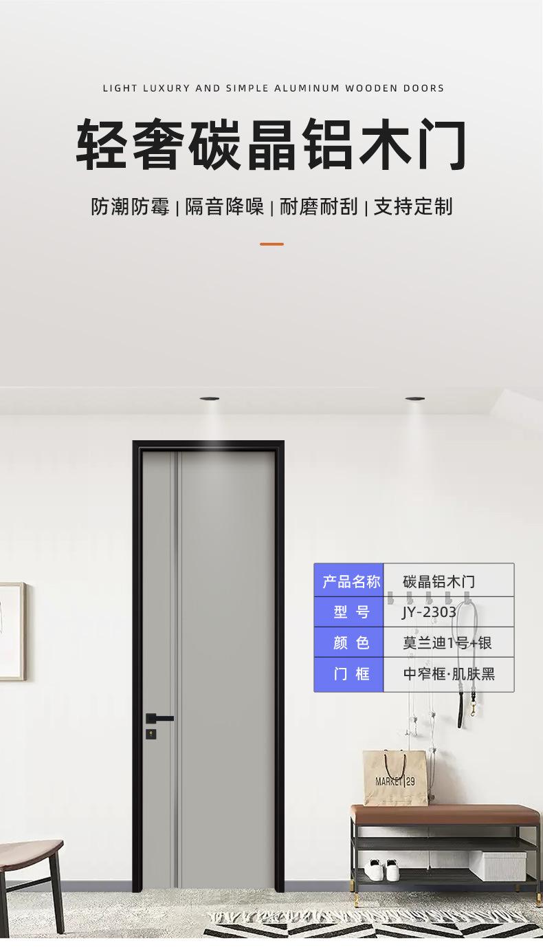 Puerta de madera de aluminio simple personalizada de fábrica, puerta de aluminio con nido de abeja relleno de cristal de carbono sin pintura, puerta insonorizada, puerta elegante y personalizada
